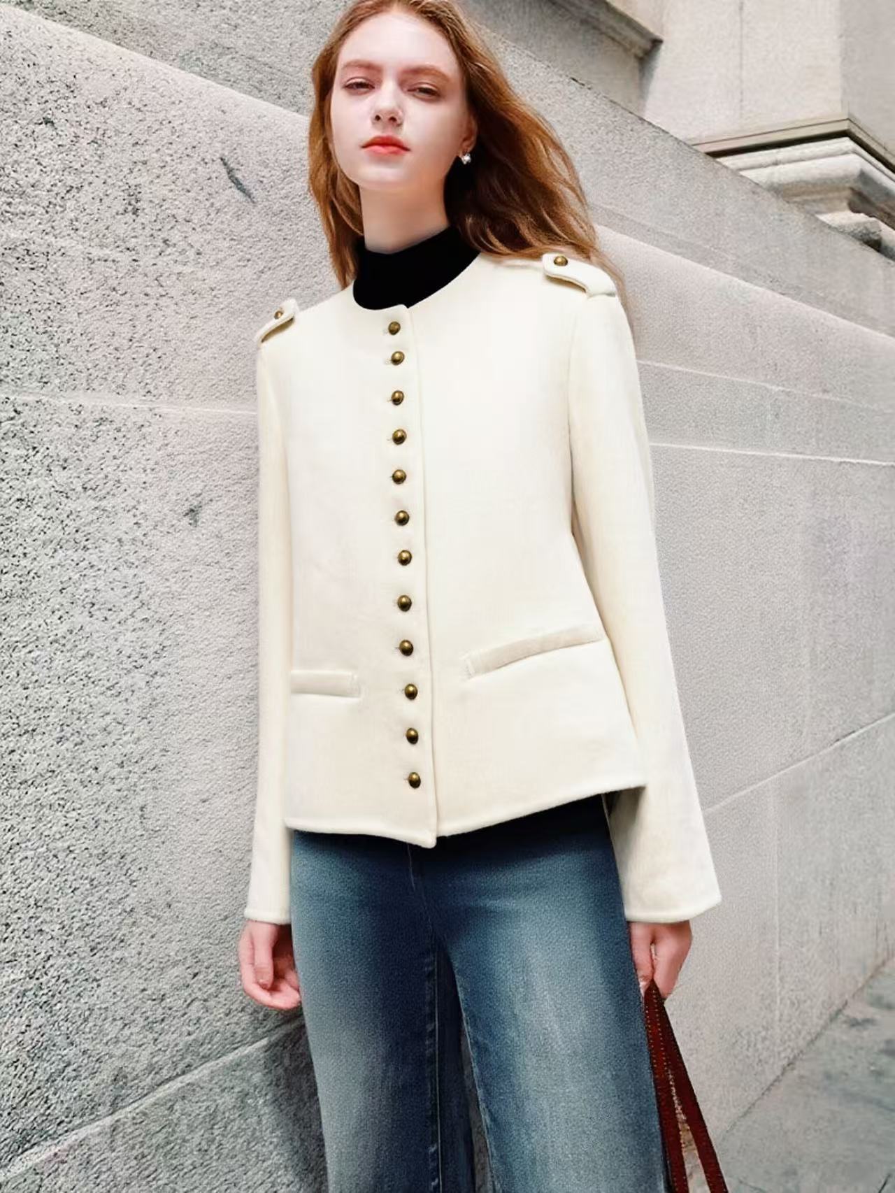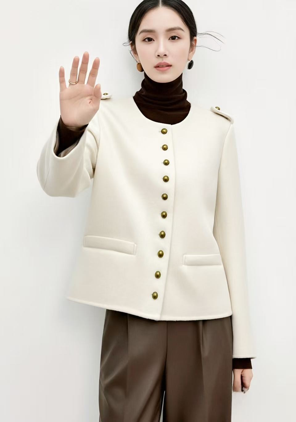 12.12错过没有!清货不退清仓价(样衣微脏)【轻奢双面尼】2510(100%高支绵羊毛)精致小香风金扣利落干练短款双面尼-喜出