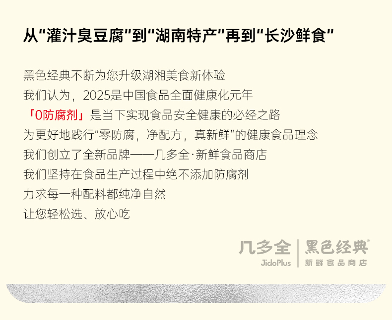 黑色经典湖南特产商城是长沙著名特色小吃“黑色经典长沙臭豆腐”旗下的线上官方商城。黑色经典面向全国,以长沙臭豆腐为核心,辐射覆盖湖南本土特色美食全系列产品,并对所有产品的生产工艺及包装进行了独特的改良。