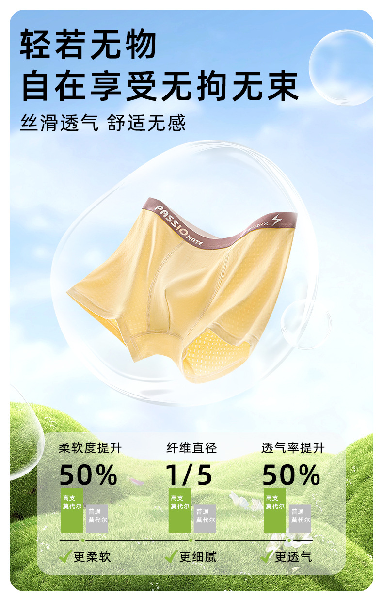 【4条装】璐童梦青少年莫代尔内裤透气网孔平内裤10A级抵裆发育期初高中生加大加肥男孩底裤适合55-155斤