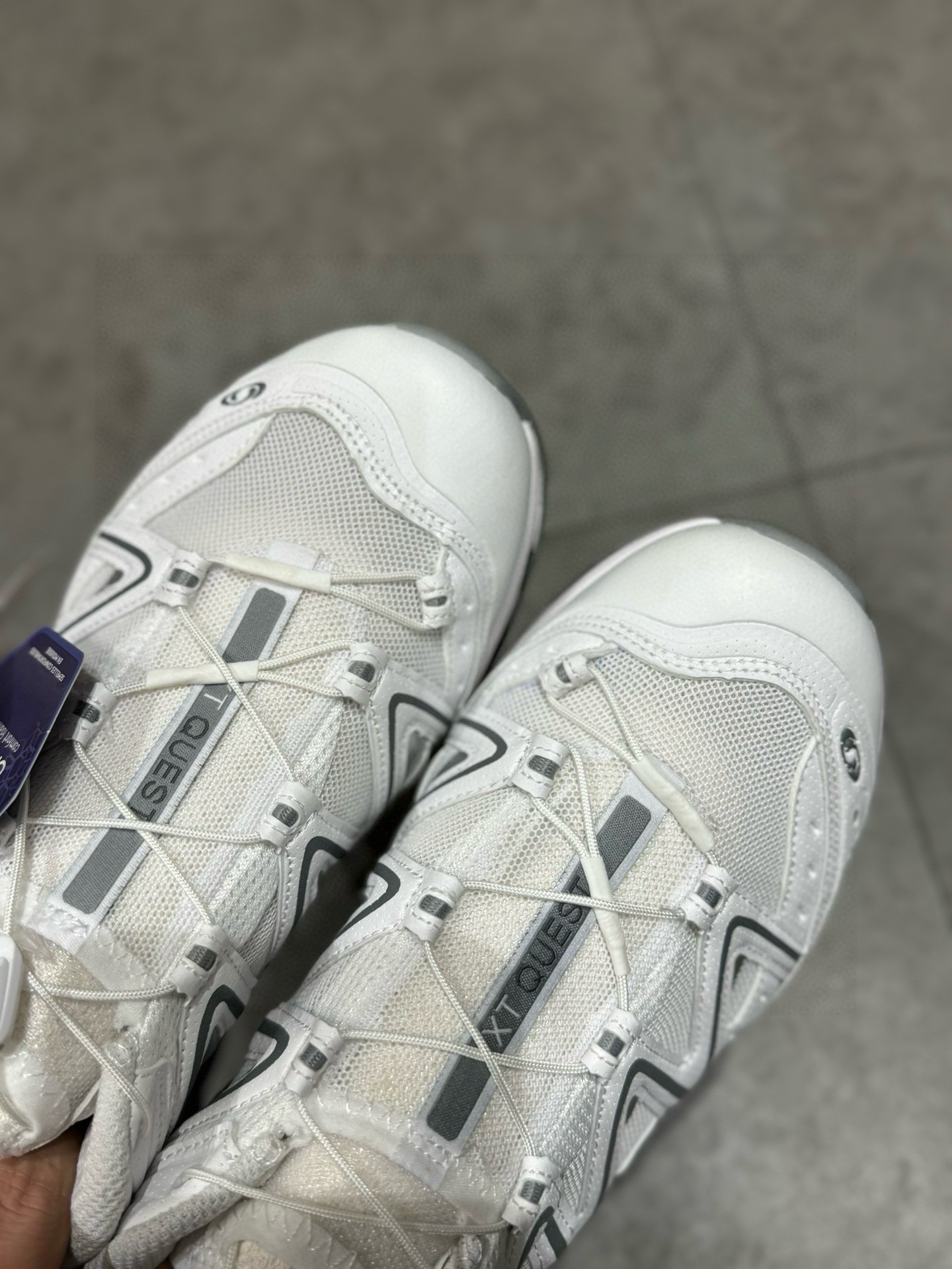 420 货号380799420 dx 纯原单SALOMON萨洛蒙 XT-QuestAdvanced 潮流越野机能低帮户外功能鞋 男女同款户外跑步鞋!这个热度 🔥自己去小红薯上搜一下好吗~高科技的的缓冲技术,户外最舒服的一双鞋子。颜值性能并存的机能风户外鞋,来自法国阿尔卑斯中心地带的一个全球户外运动品牌,专注于户外性能产品的设计和开发,在国内一直属于小众品牌,最近靠这款真是火出圈了~全网都是缺货状态!一鞋难求!!舒适耐磨,低帮跑步鞋,男女同款,这款鞋子很适合秋季,整双鞋承袭 Salomon的标志性设计,大面积致密织物材质打造鞋面,鞋头辅以热熔压胶处理。脚感舒适且百搭!这双配色采用了以纯色为主的配色方案,看着也是很有清爽感的。这个配色对于我来说还是比较百搭的配色,鞋面上采用了粉色的透气网眼布材质,在鞋头处也加入了热熔胶的设计,能够给脚趾提供适当的保护。快速穿脱的系鞋,带系统也是非常方便的设计,搭配越野橡胶大底也能适应各种不同的户外场景。无论是通勤还是运动,其实这双鞋才调教好了之后都还很不错,还没有尝试过的朋友,可以找一个合适的机会来尝试!!