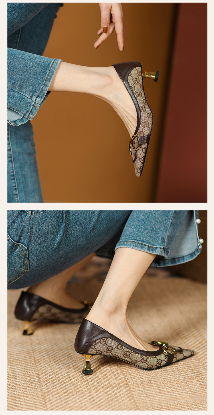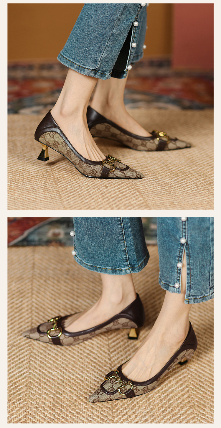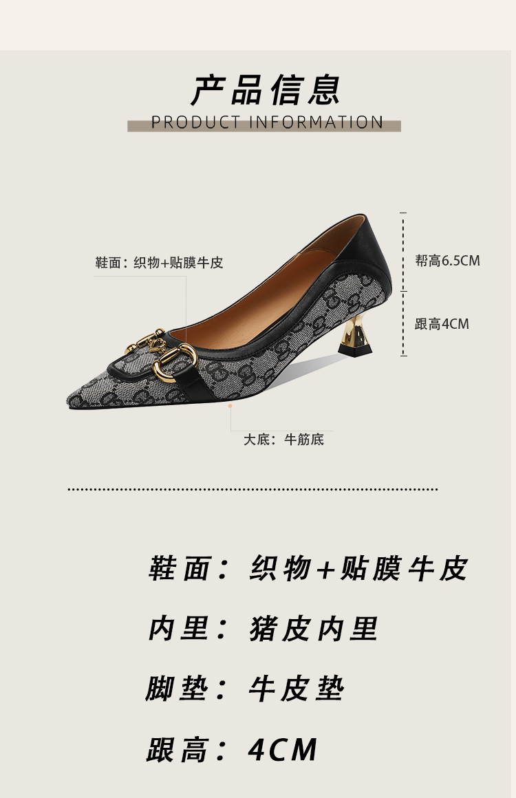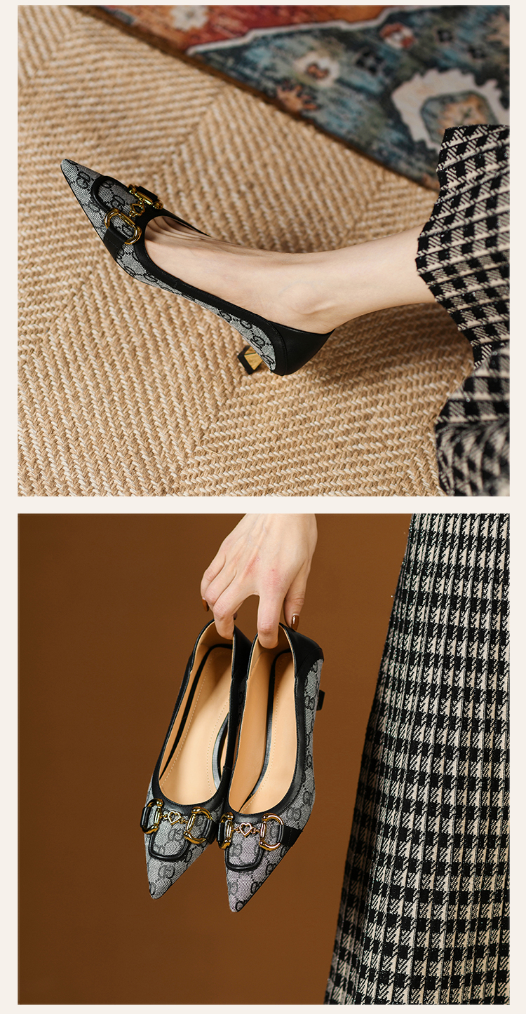 浅口平跟尖头英伦温柔大方,职业赫本风型高跟鞋 HBP-3139