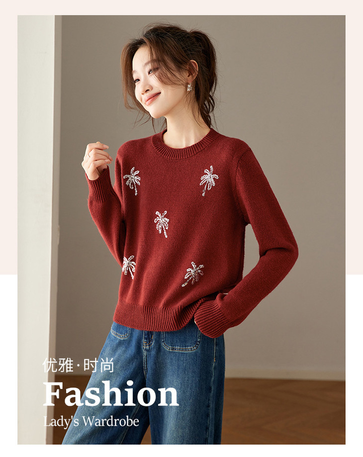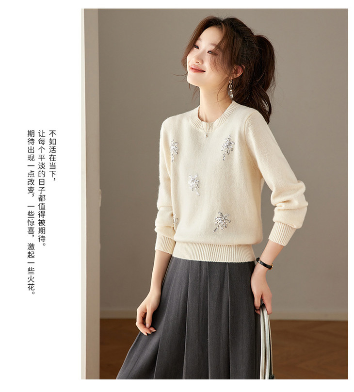 亮片上衣高级感短款女装毛衣,厚款打底衫显瘦洋气CC-27-25269