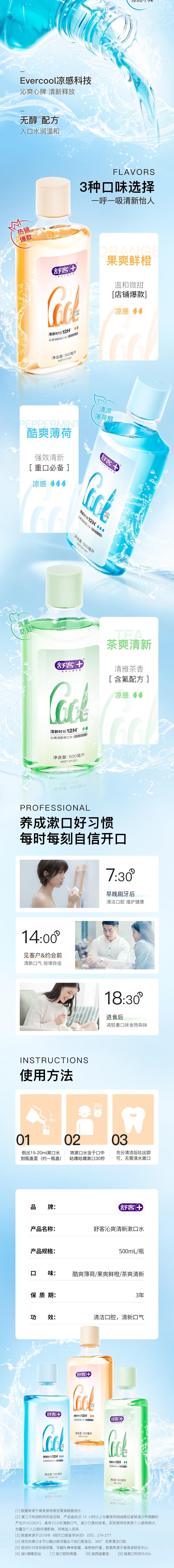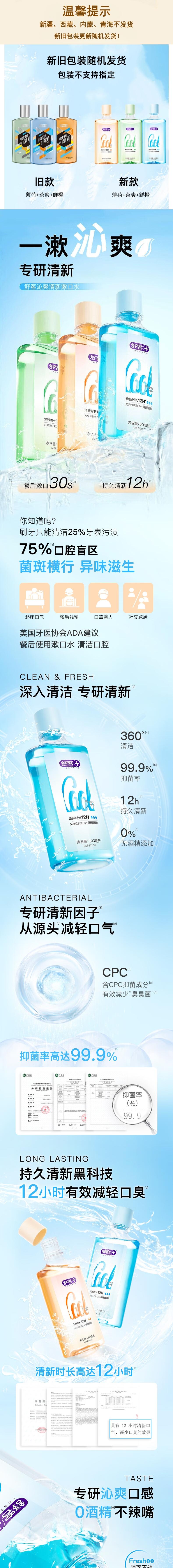 舒客 沁爽漱口水500ml*3瓶(新旧款式随机) s9k500-3tm