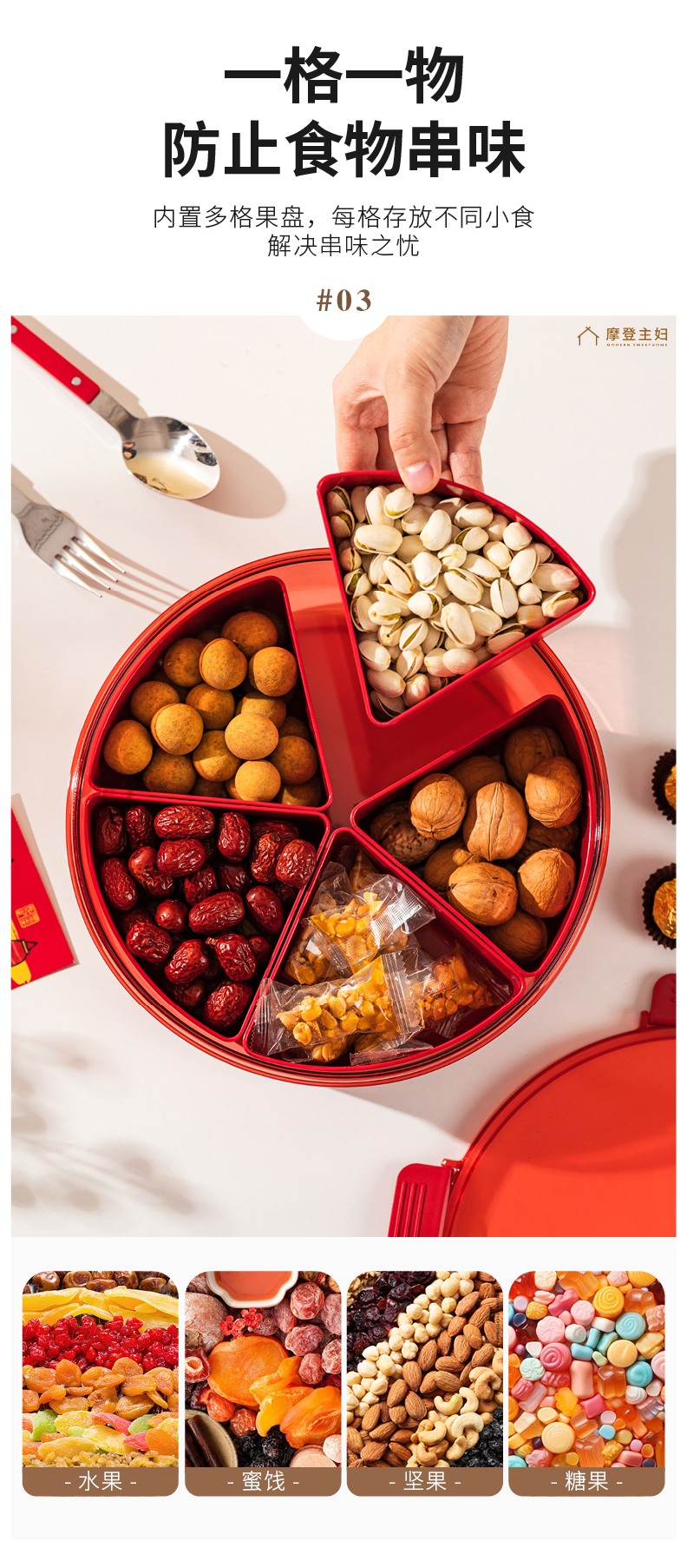 摩登主妇九宫格果盘客厅家用2024新款水果干果糖果盘零食点心盒