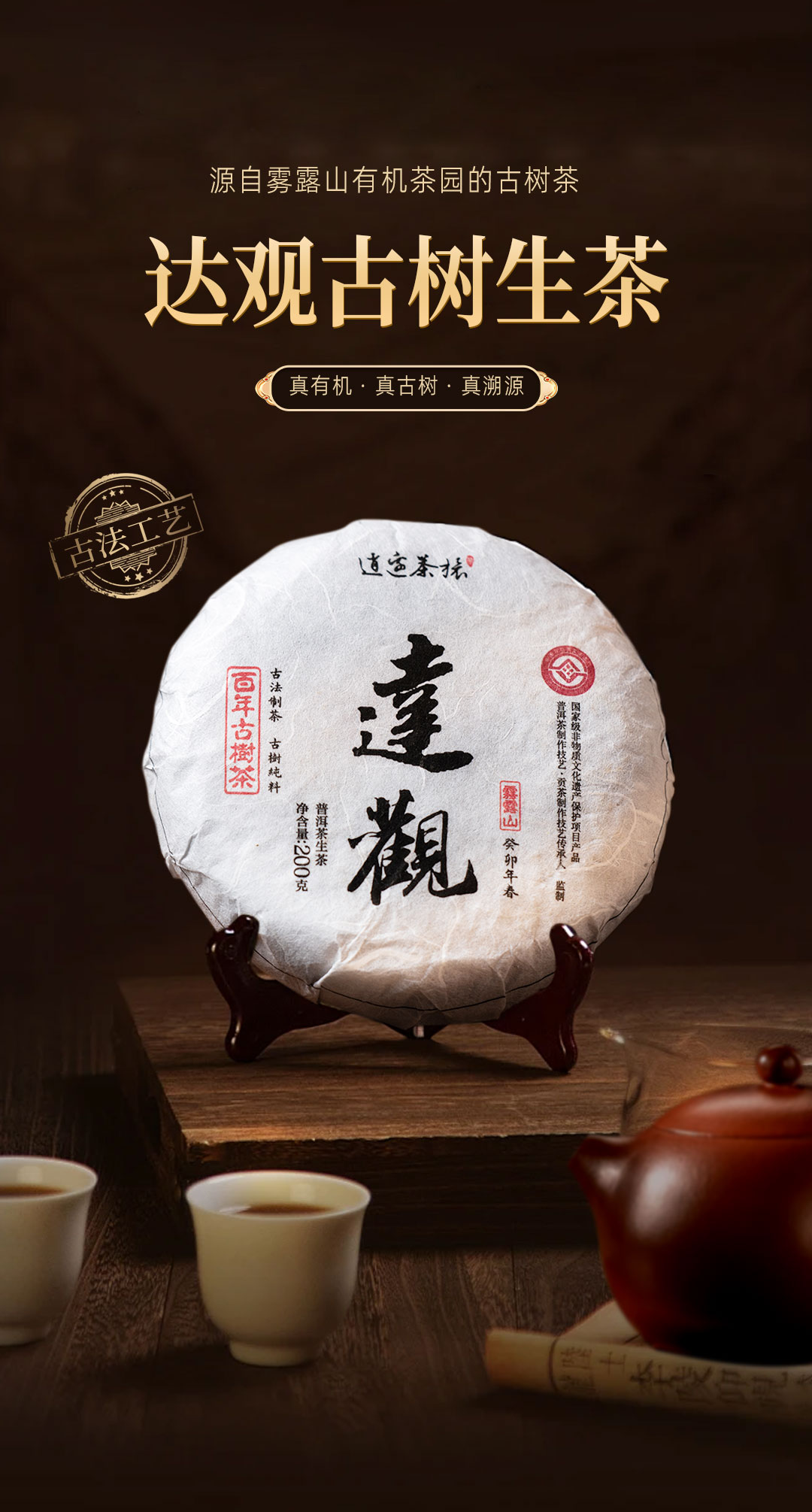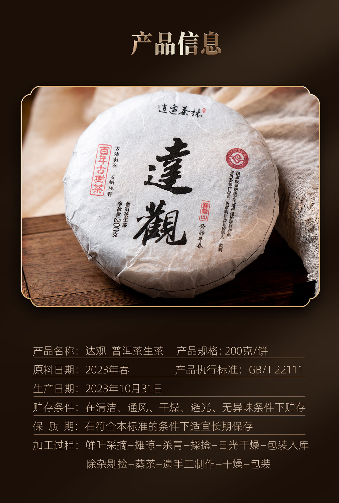 好物甄选 逍遥古树茶 达观 2023年古树纯料生茶 百年古树 普洱茶 饼茶 200克/饼
