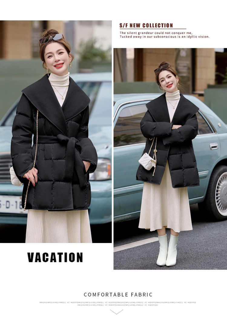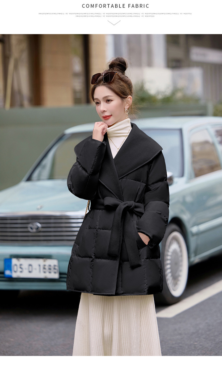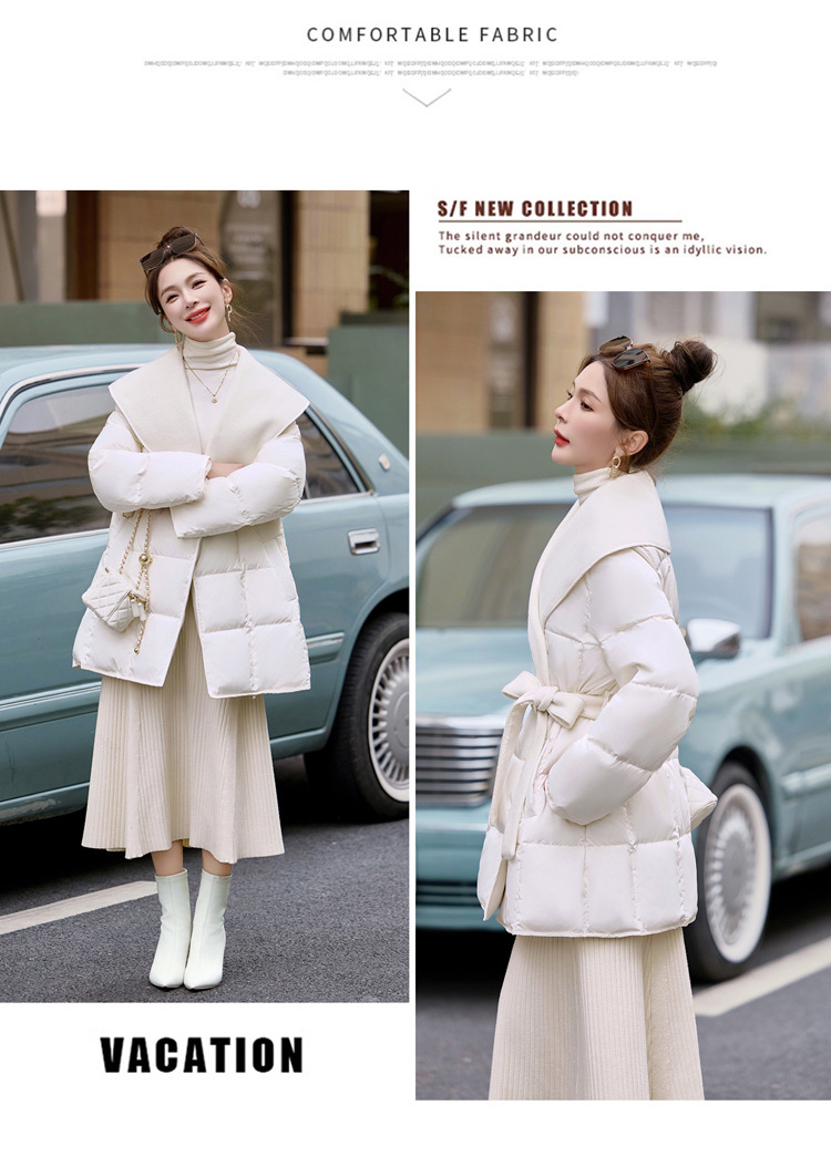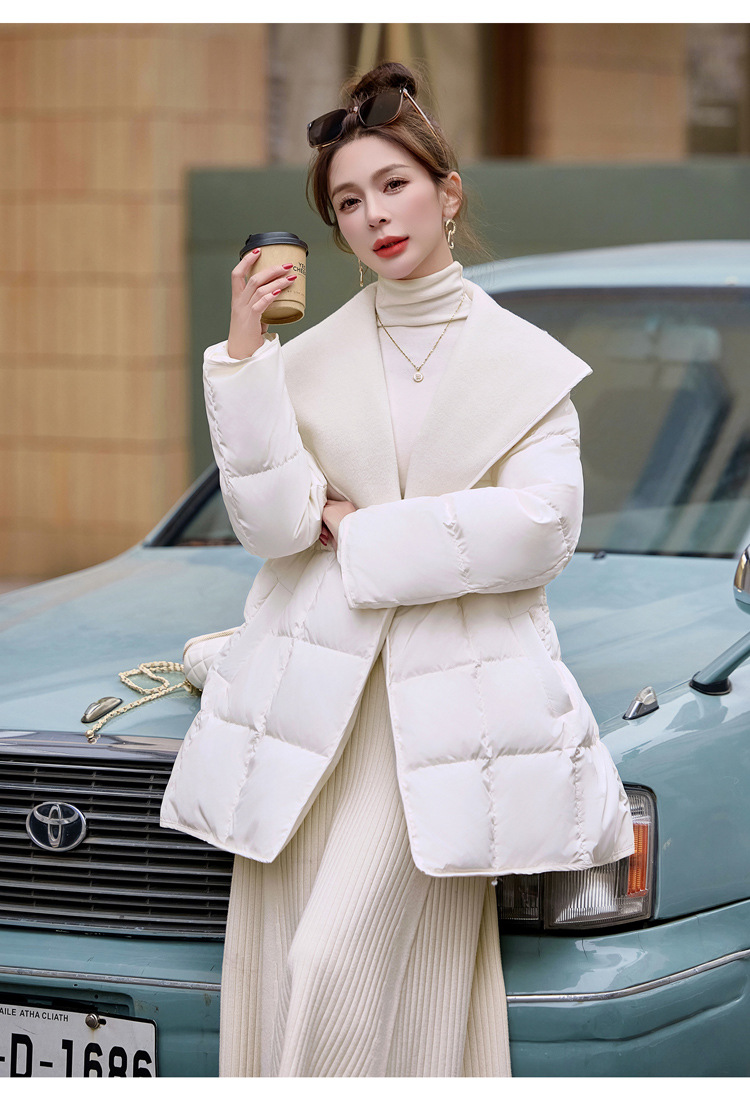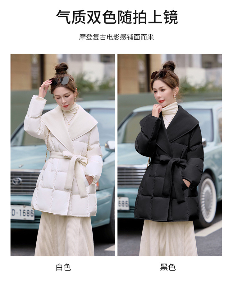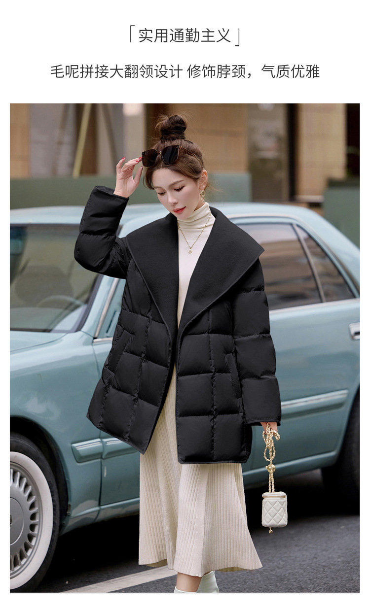 V领气质羽绒服拼接,双面呢外套90白鸭绒HR-YJLY6899