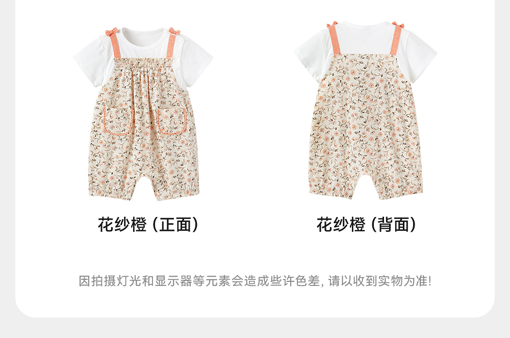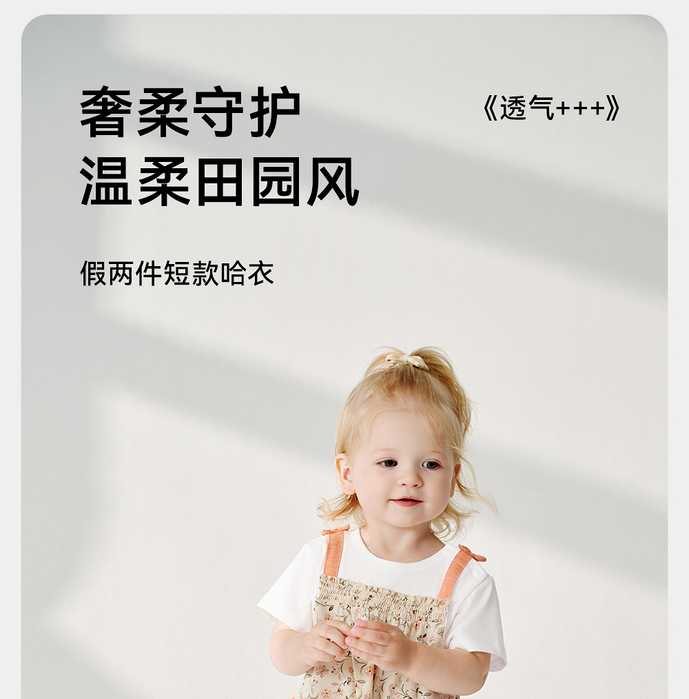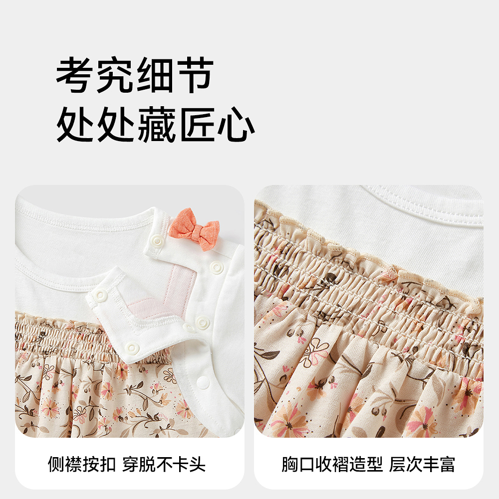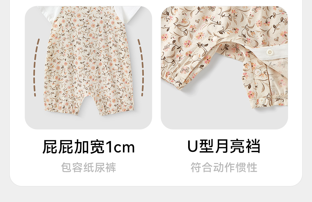 英氏婴儿衣服夏季轻薄透气假两件纯棉连体衣女宝碎花爬服2025新款