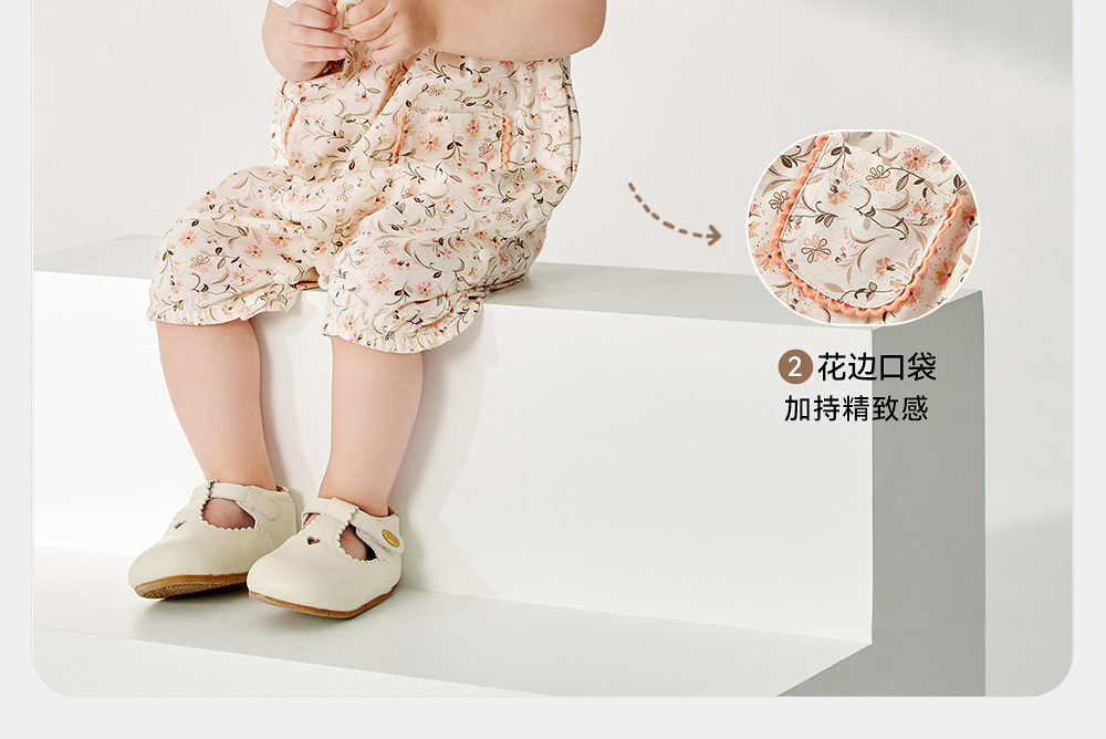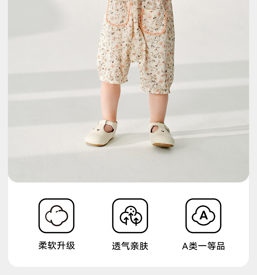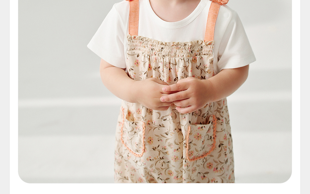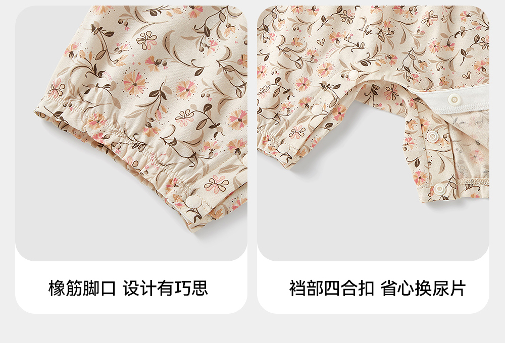 英氏婴儿衣服夏季轻薄透气假两件纯棉连体衣女宝碎花爬服2025新款