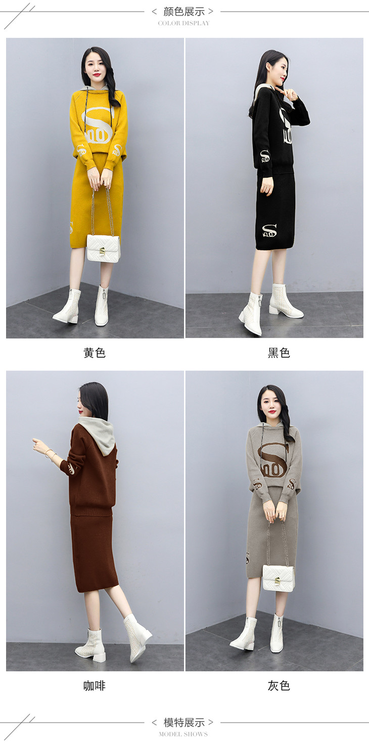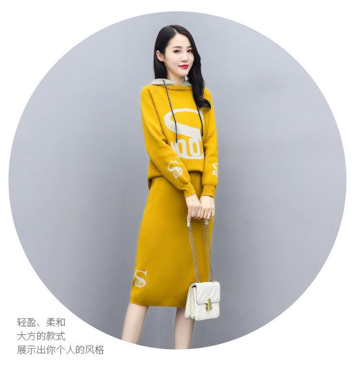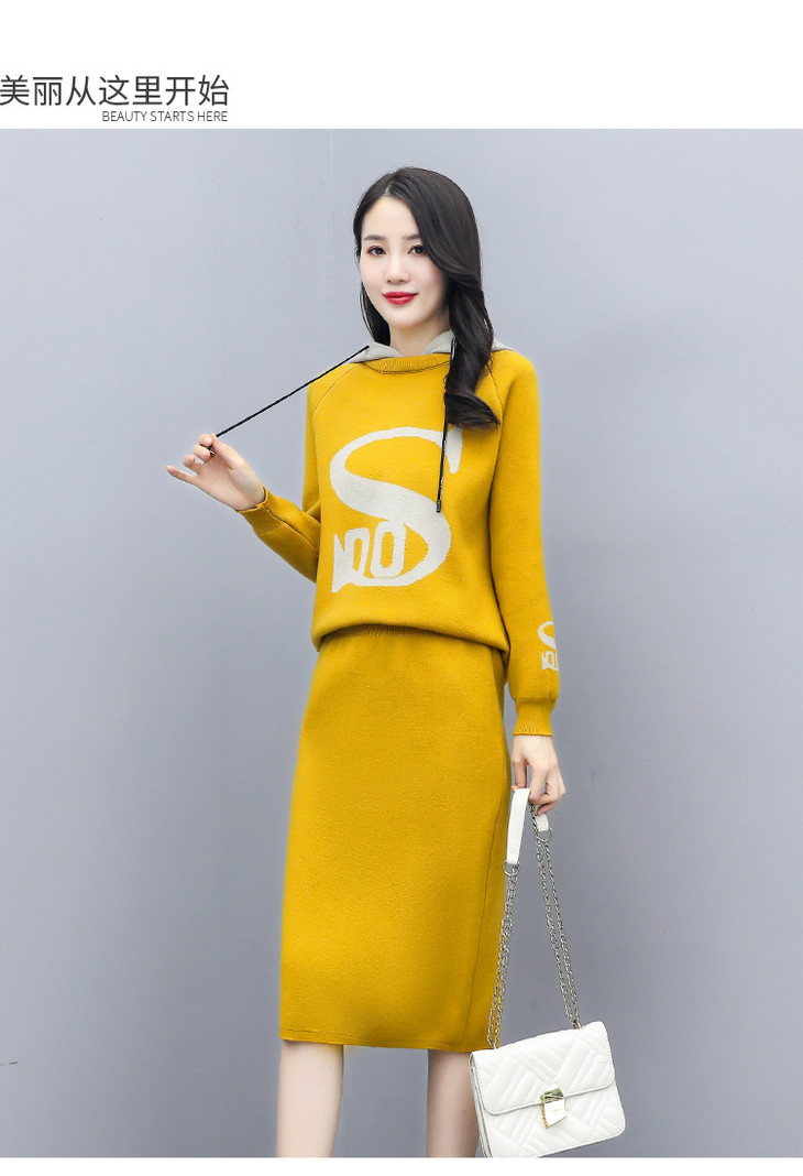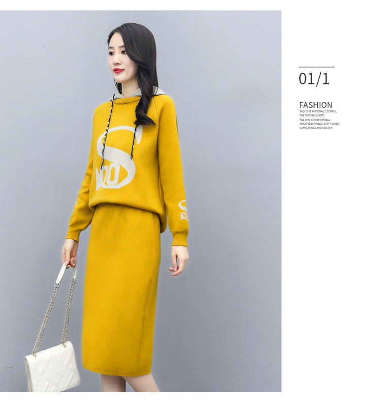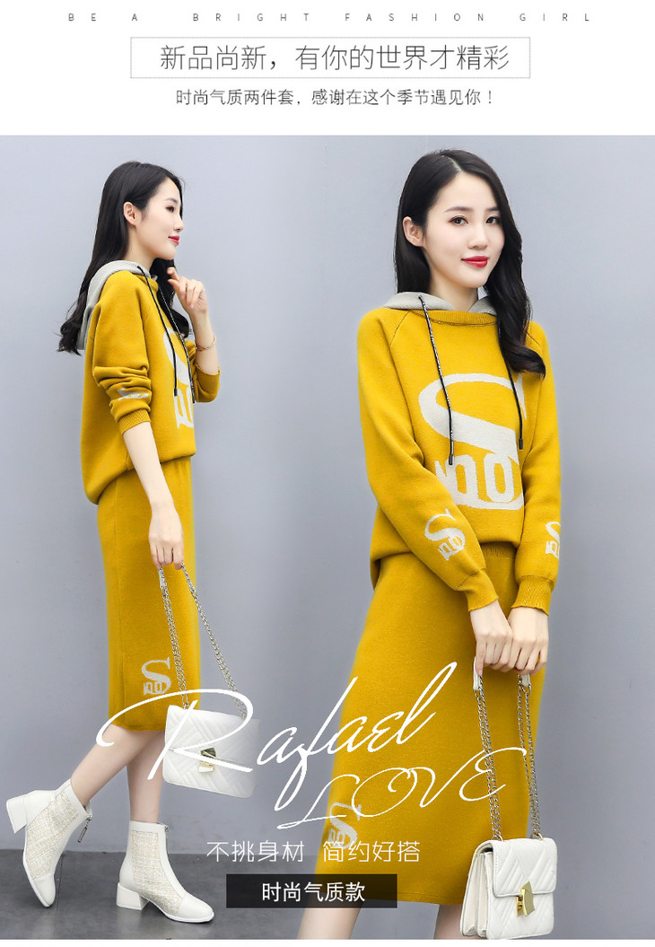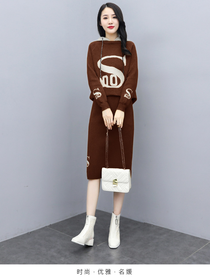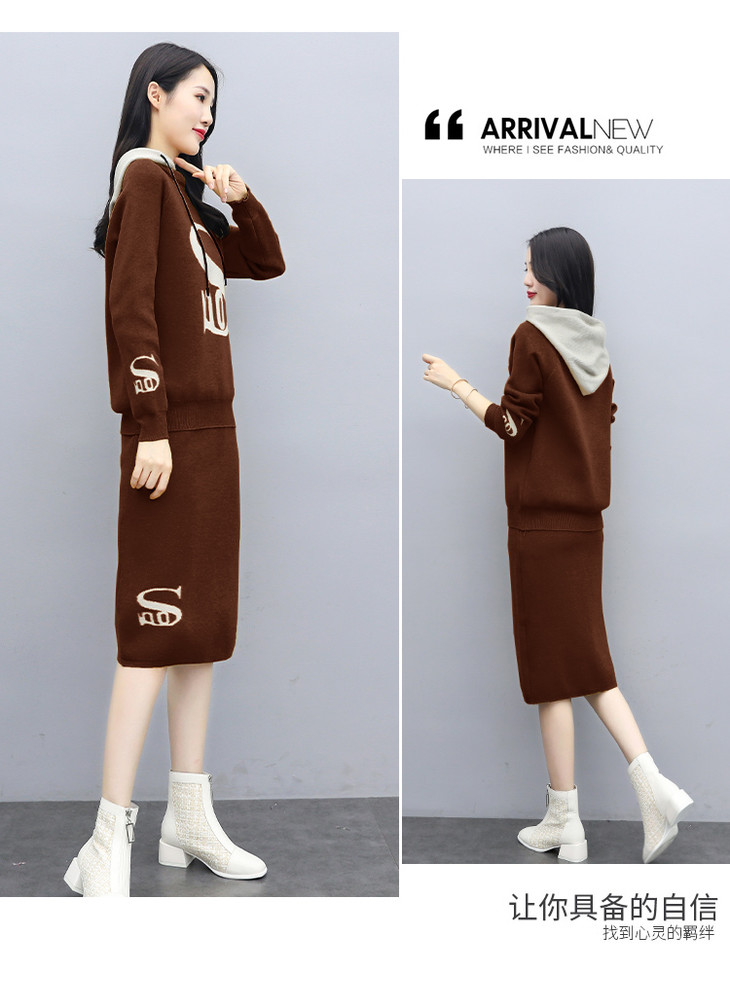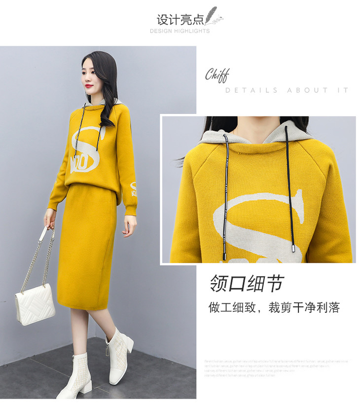 WZNH-XX2585休闲舒适连帽卫衣+半身裙针织两件套