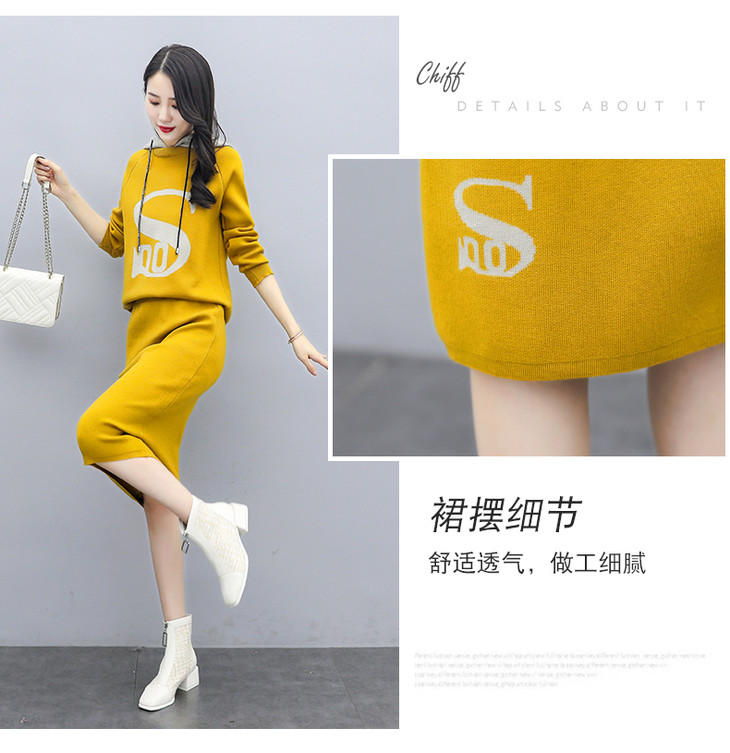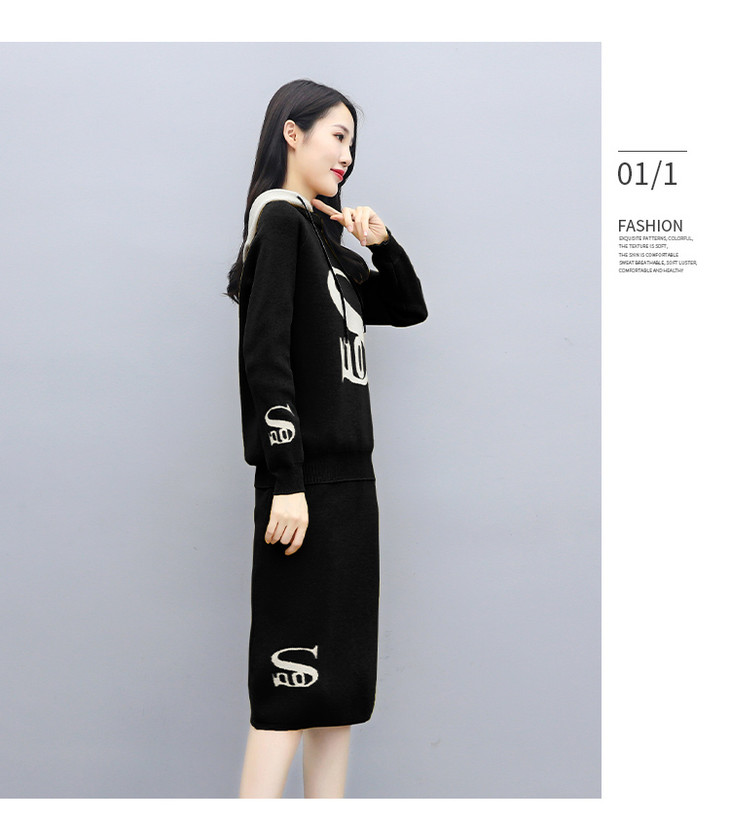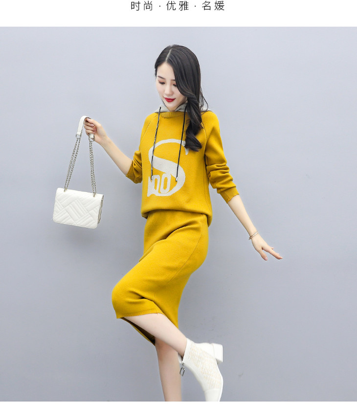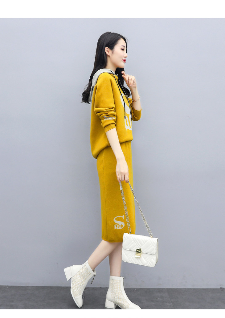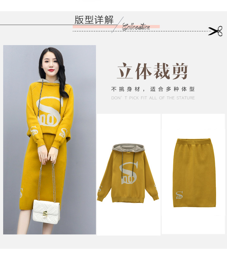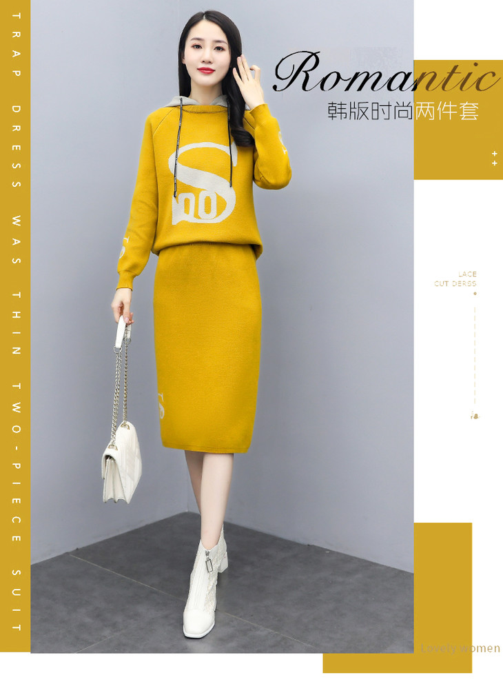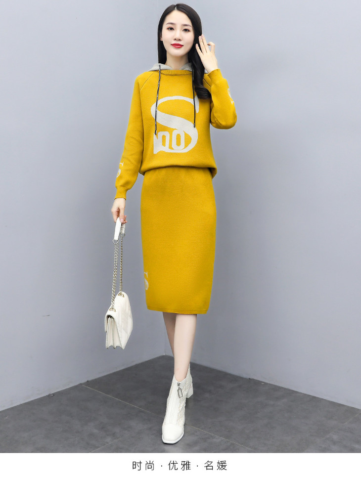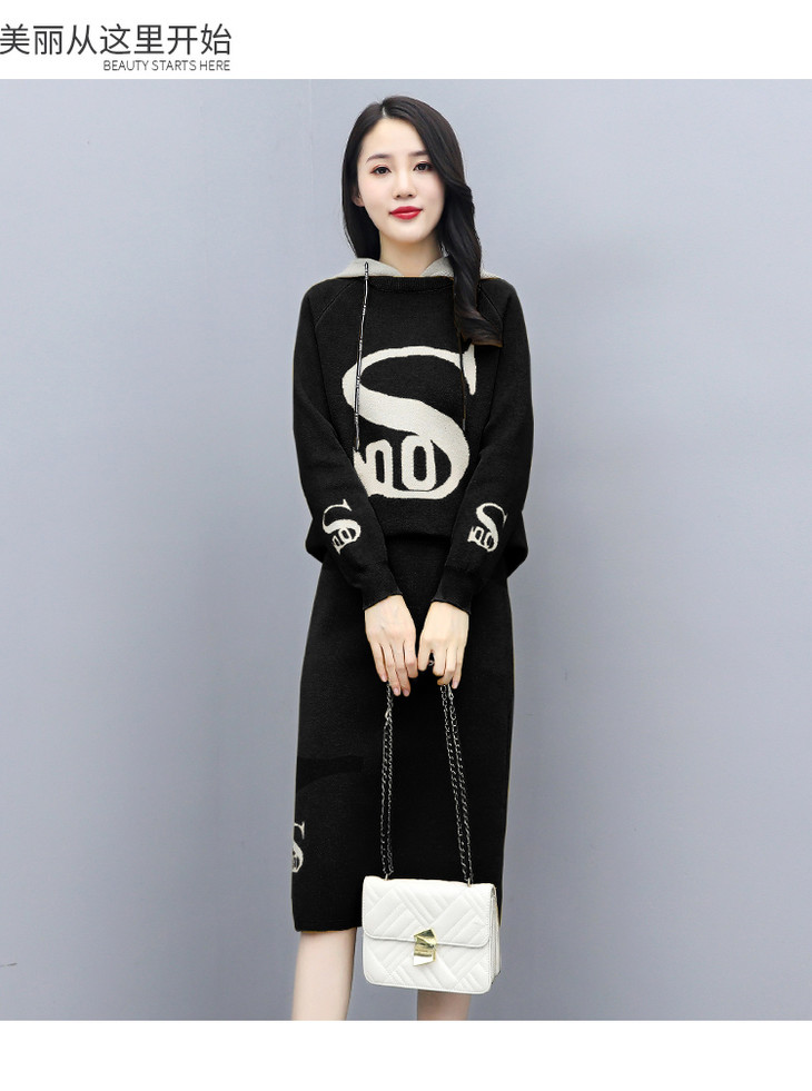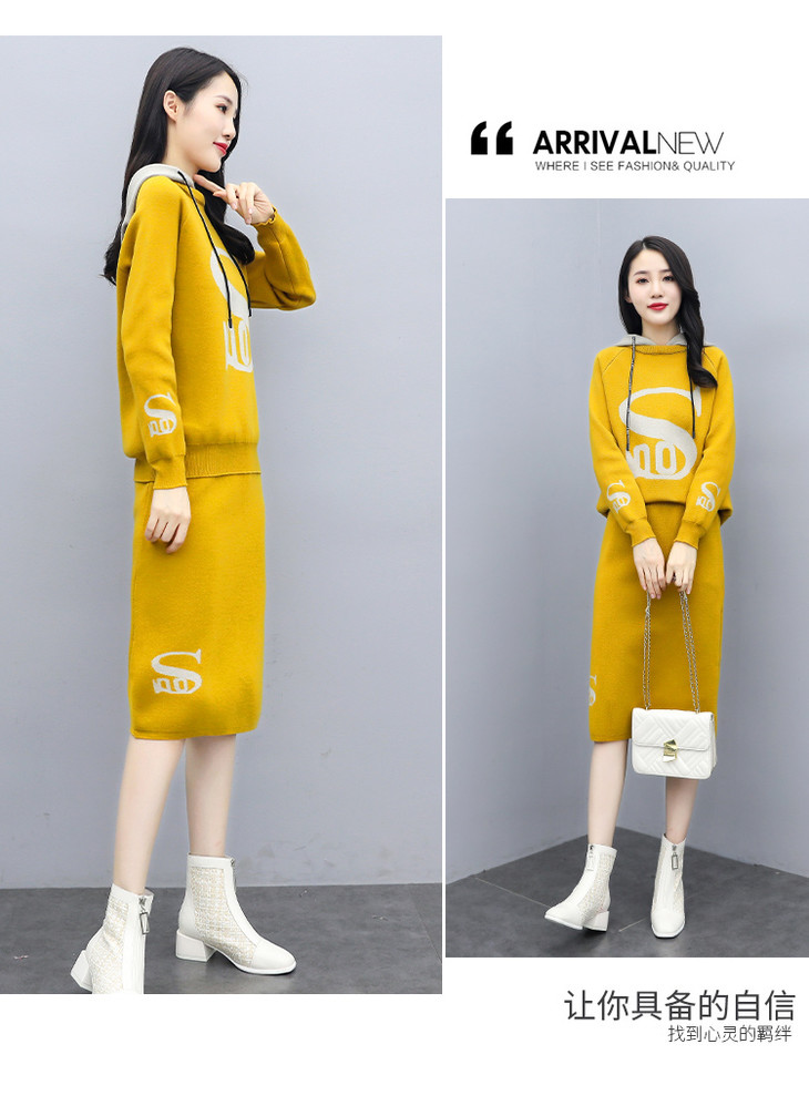 WZNH-XX2585休闲舒适连帽卫衣+半身裙针织两件套