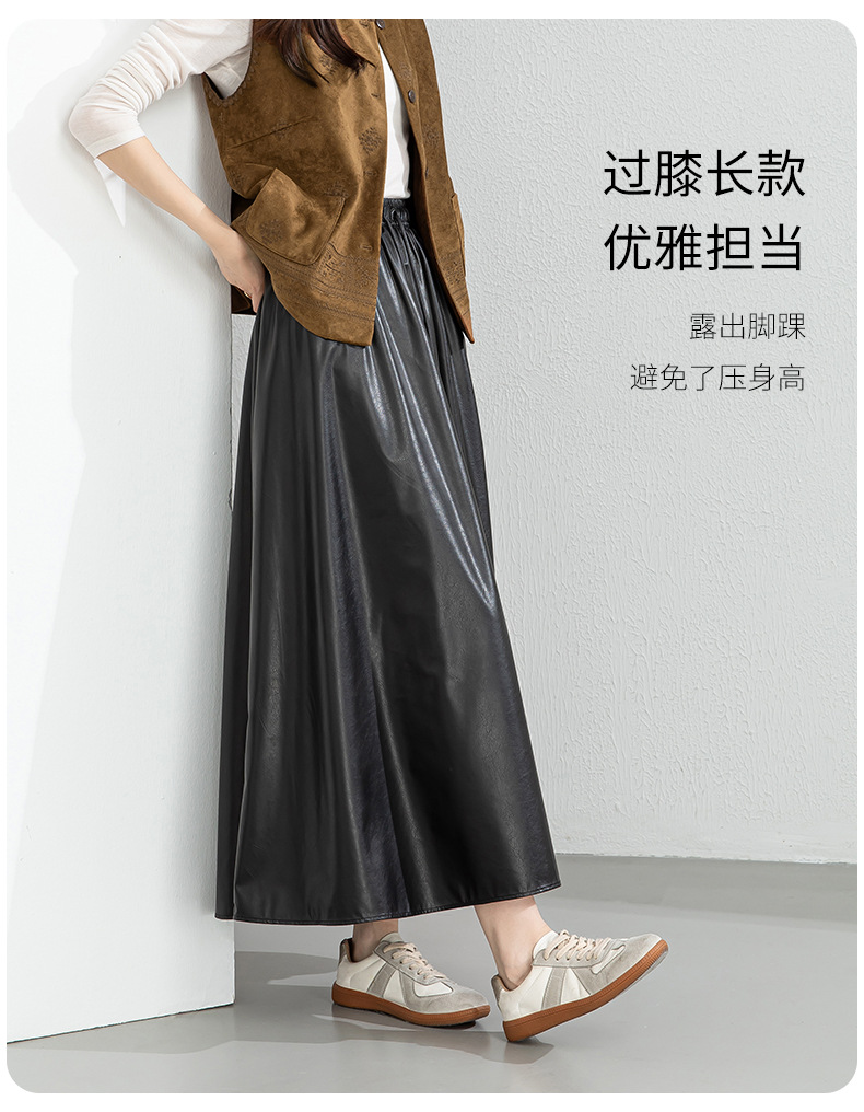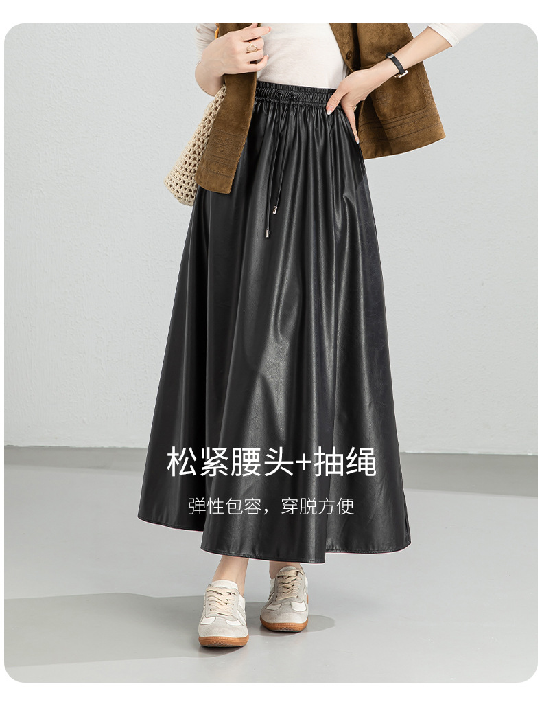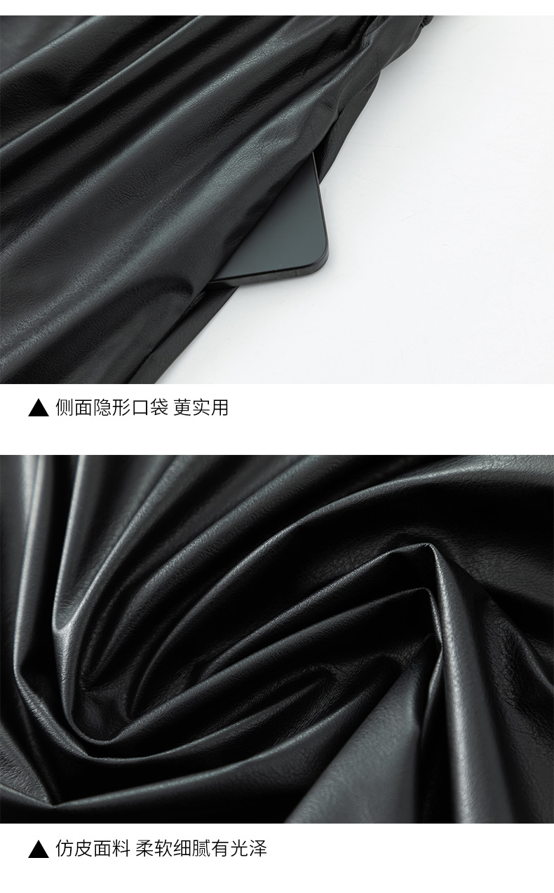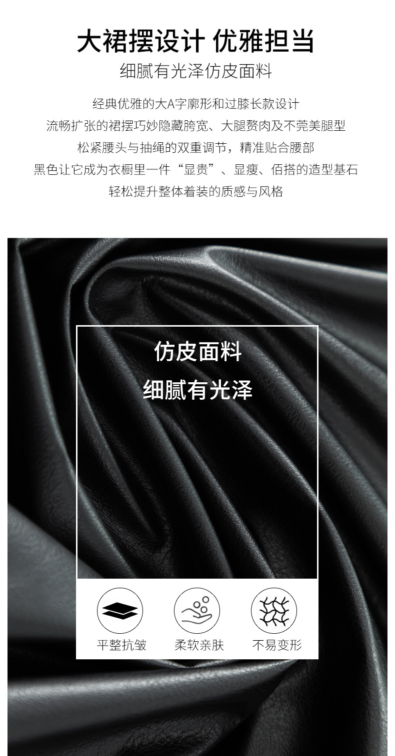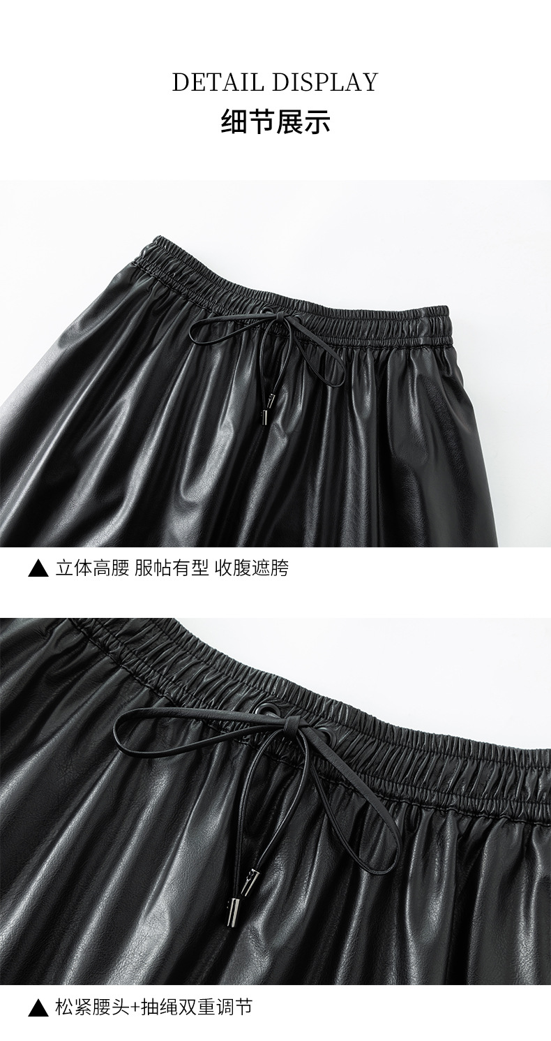 百媚生 pu皮半身裙女春季中长款百褶皮裙BC66077