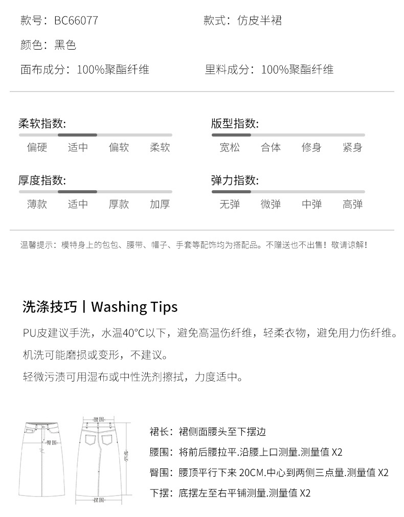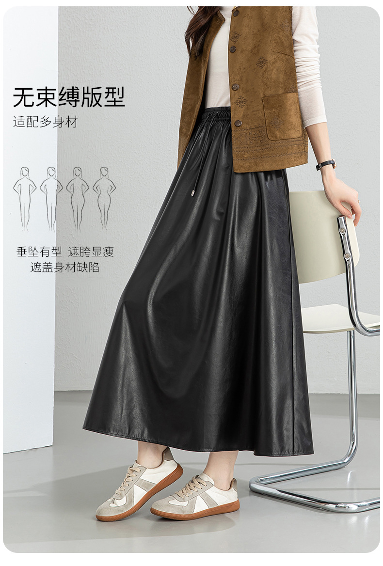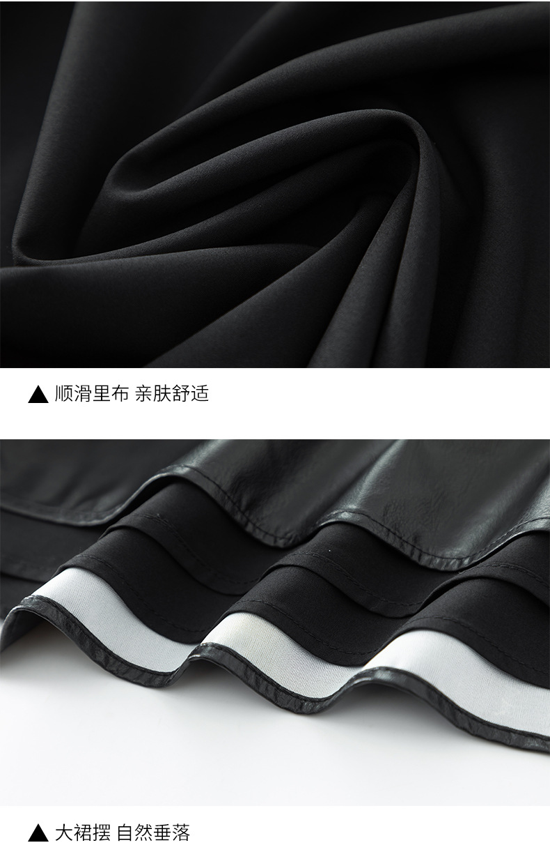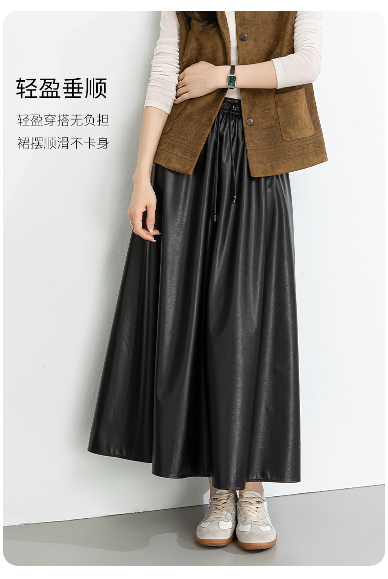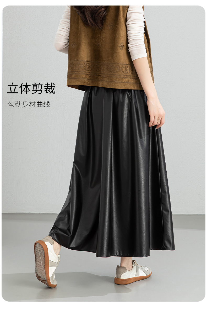 百媚生 pu皮半身裙女春季中长款百褶皮裙BC66077
