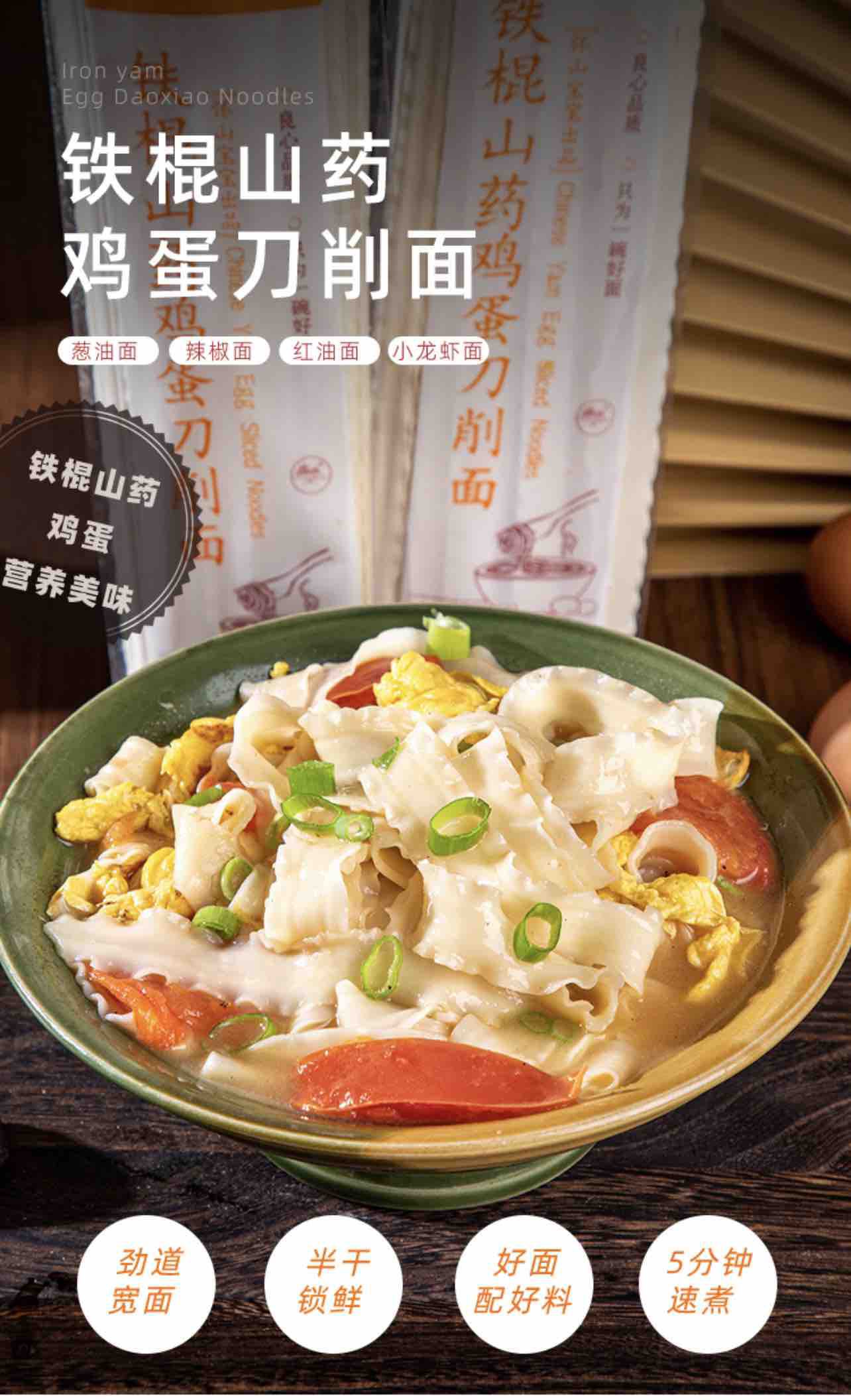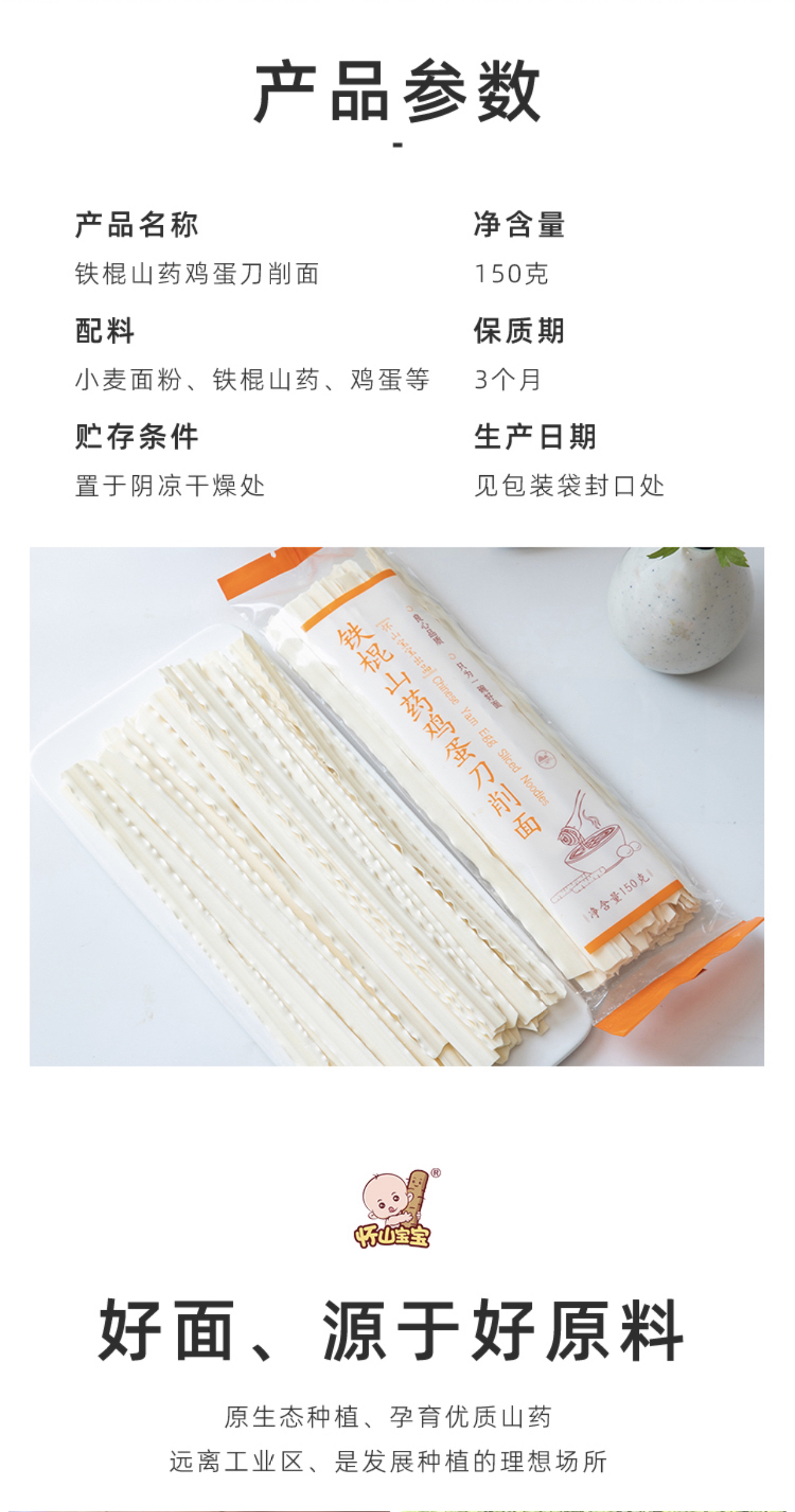 铁棍山药鸡蛋面 易煮无盐 无添加 孕妇儿童挂面条 130g /袋 (记得备注宽面或细面或各一半)