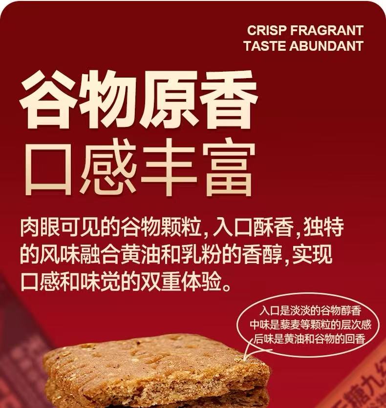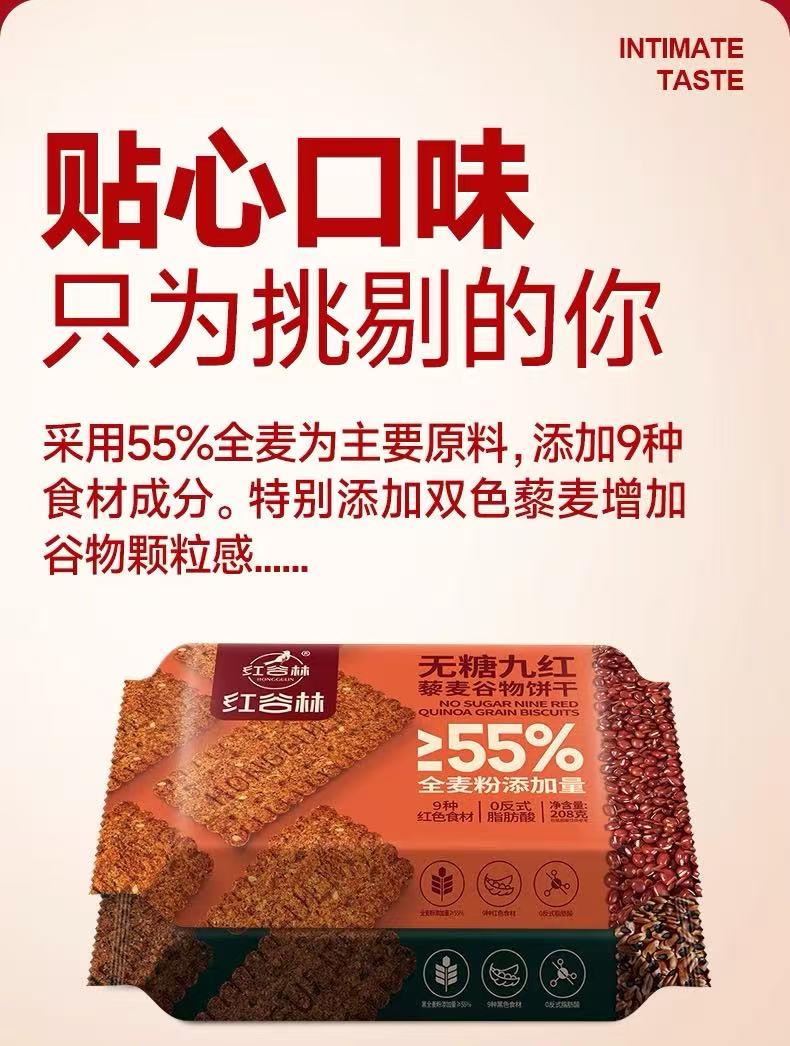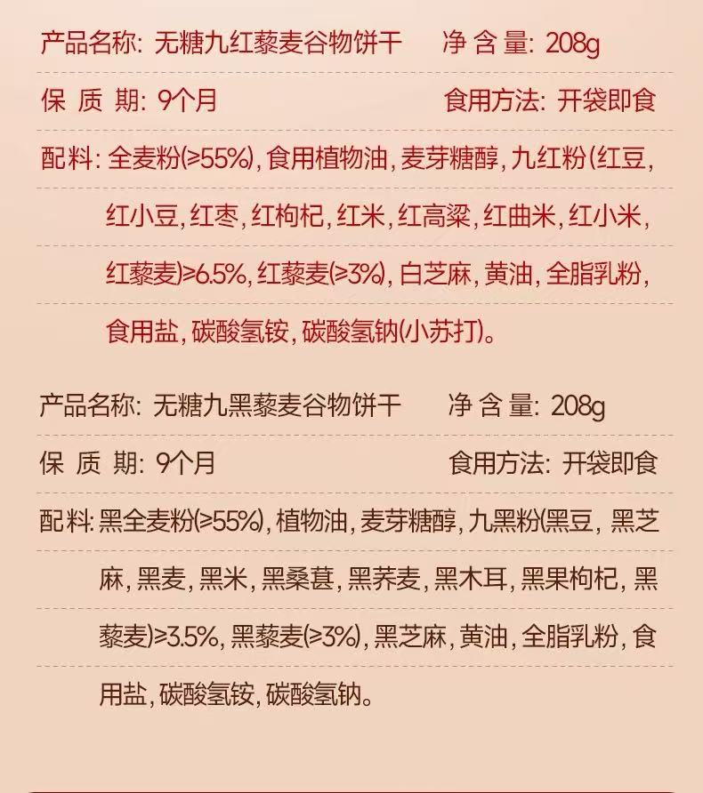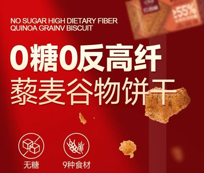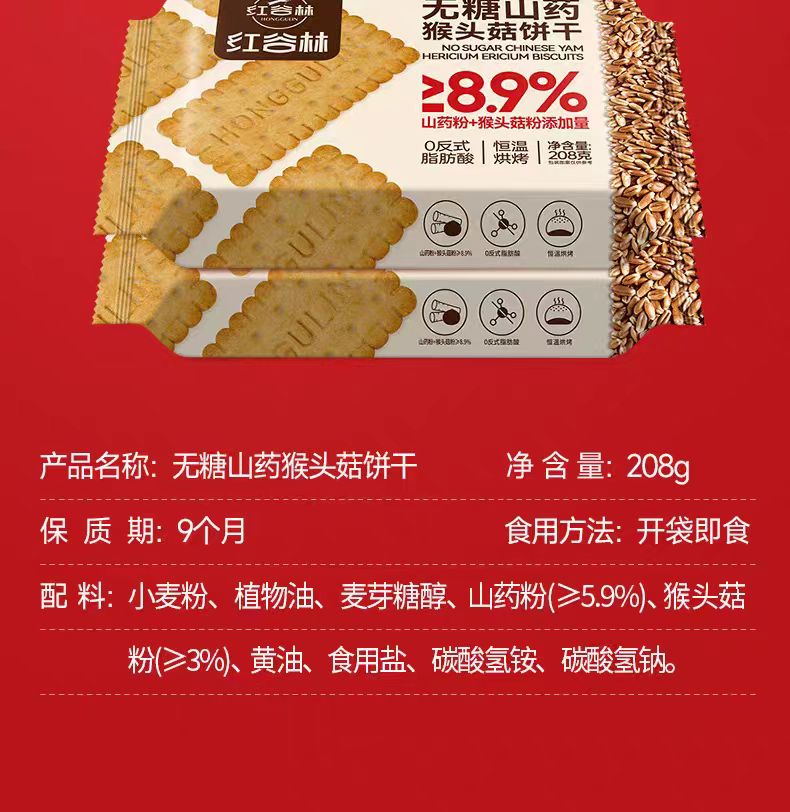 【甄选】红谷林无糖山药猴头菇饼干/9黑藜麦/9红藜麦谷物饼干208g/袋