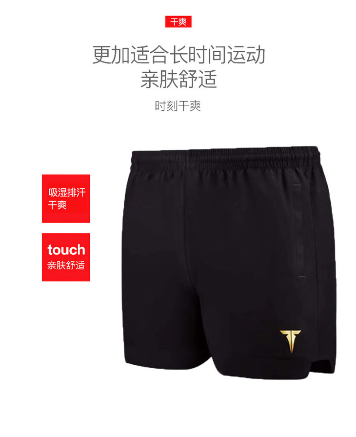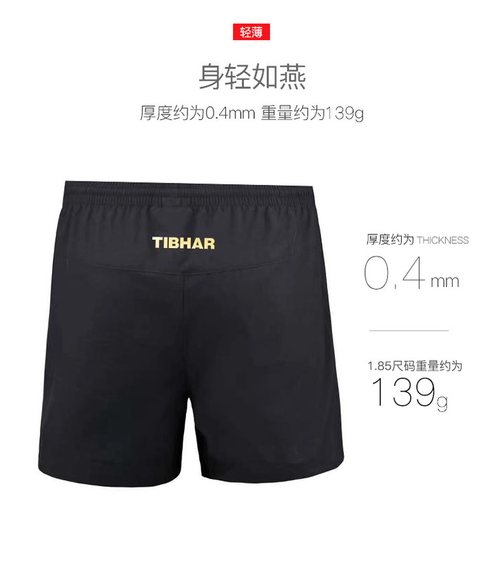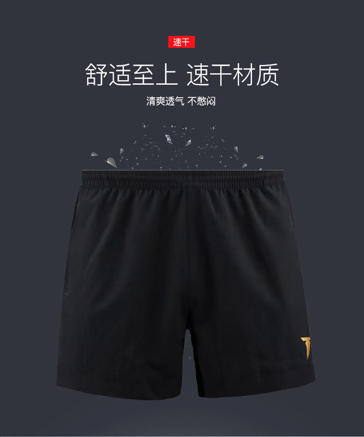 挺拔Tibhar 炫动短裤TB-3 运动短裤 黑金色 舒适至上 速干材质