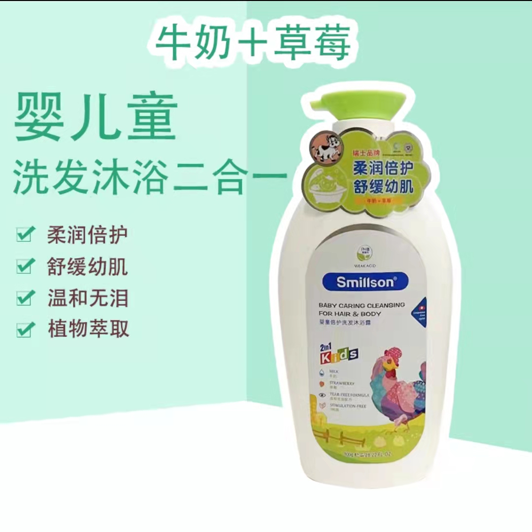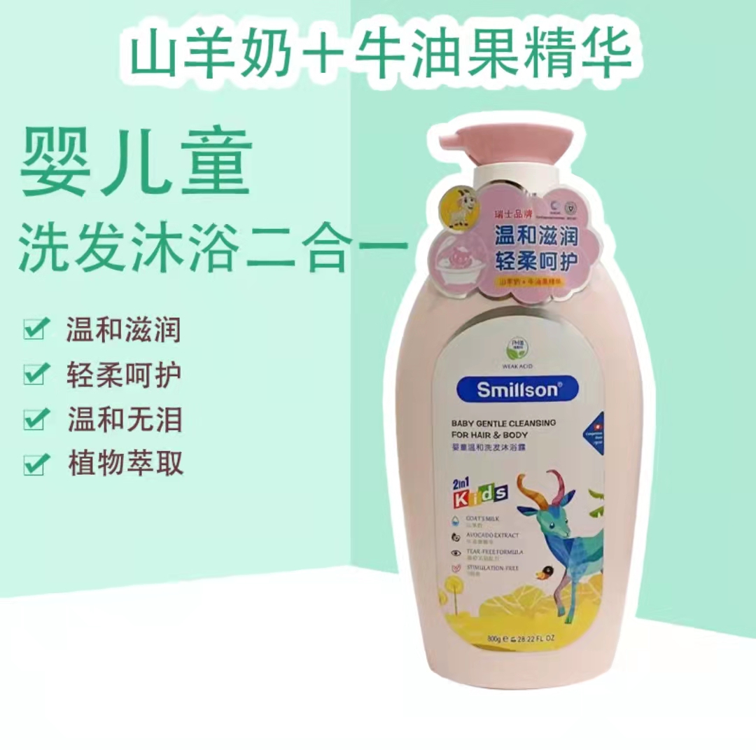 【门店直发 支持同城配送】瑞士史丝密生婴幼儿洗发沐浴露儿童洗沐二合一牛奶山羊奶宝宝专用800ml