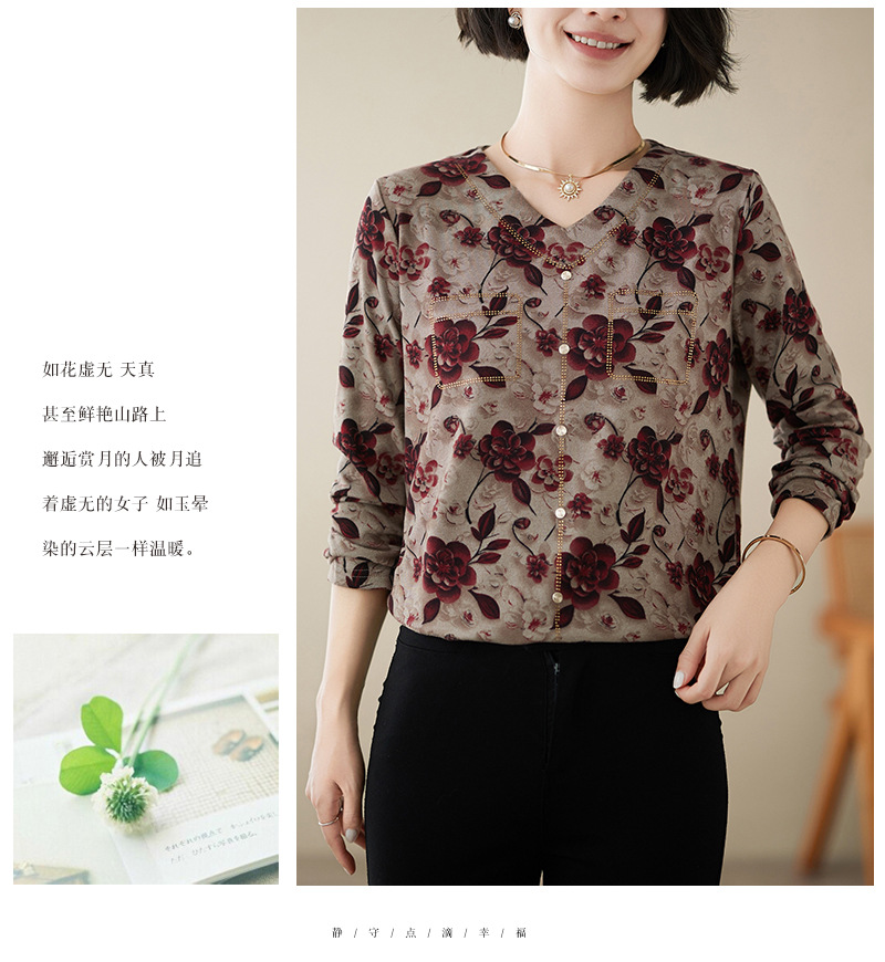 GYH 2801鸡心V领长袖弹力上衣宽松显瘦打底衫