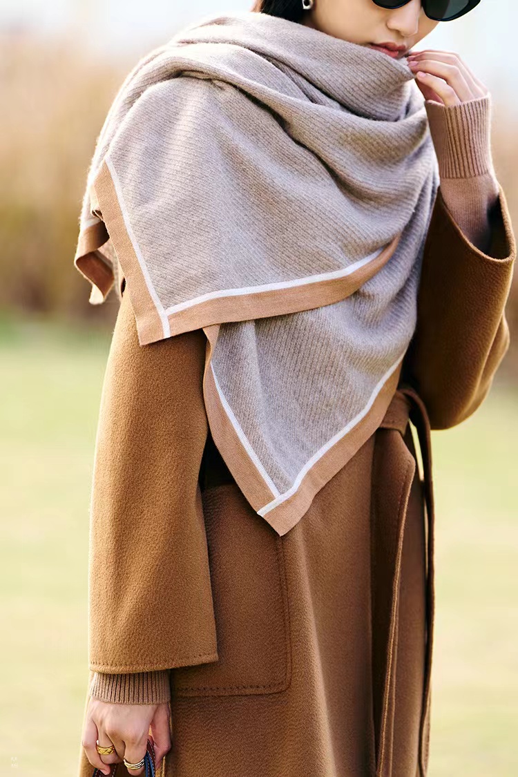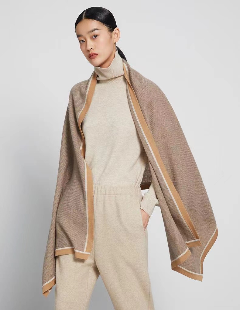 加长加宽的尺寸可以当围巾也可以作大披肩,自带秋冬氛围感。甄选阿拉善山羊绒,比普通纯羊绒更轻量奢软滑糯,被暖空气包裹的感觉。
