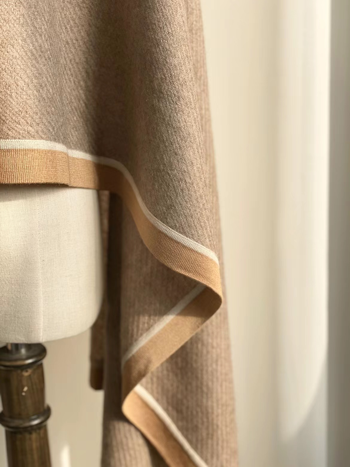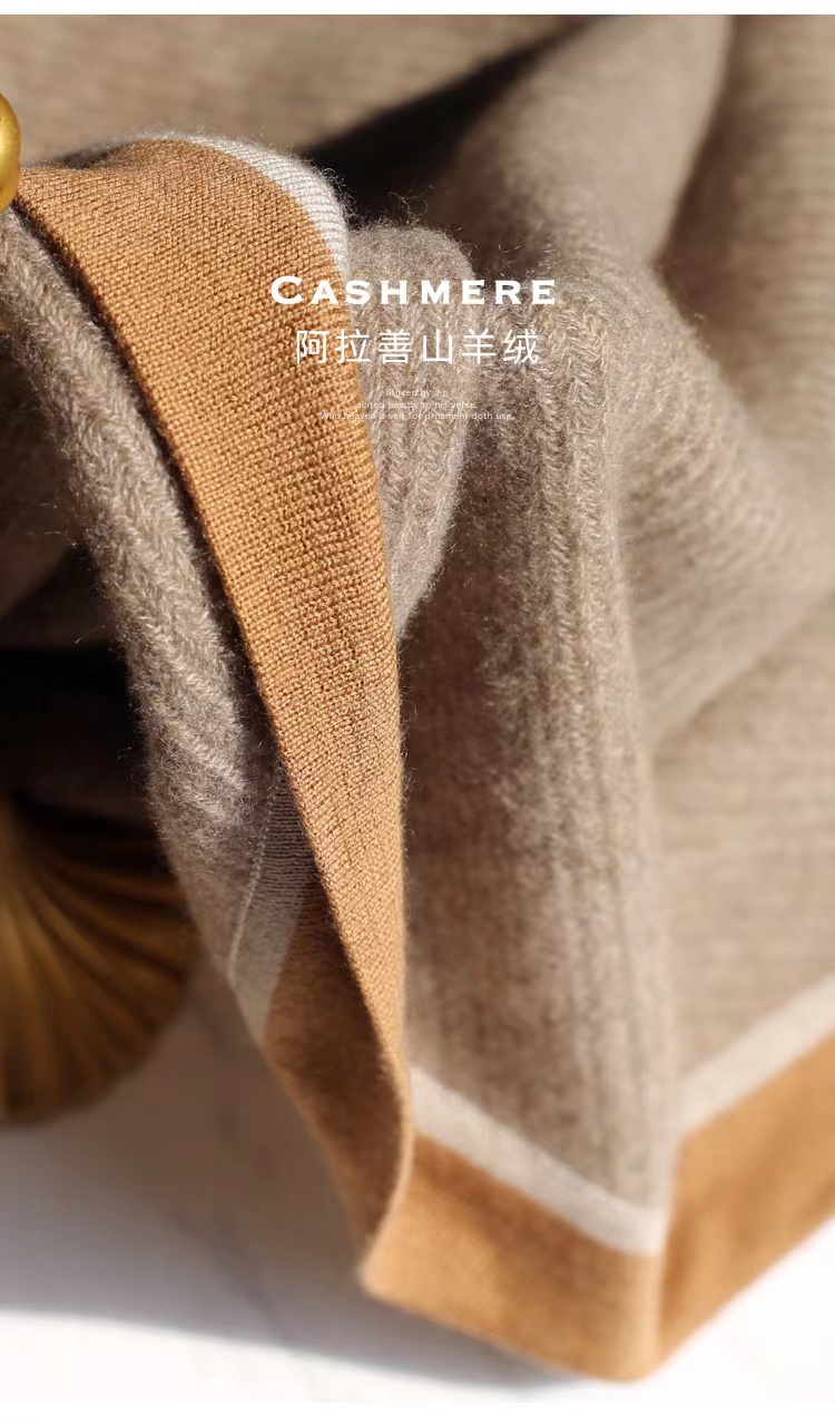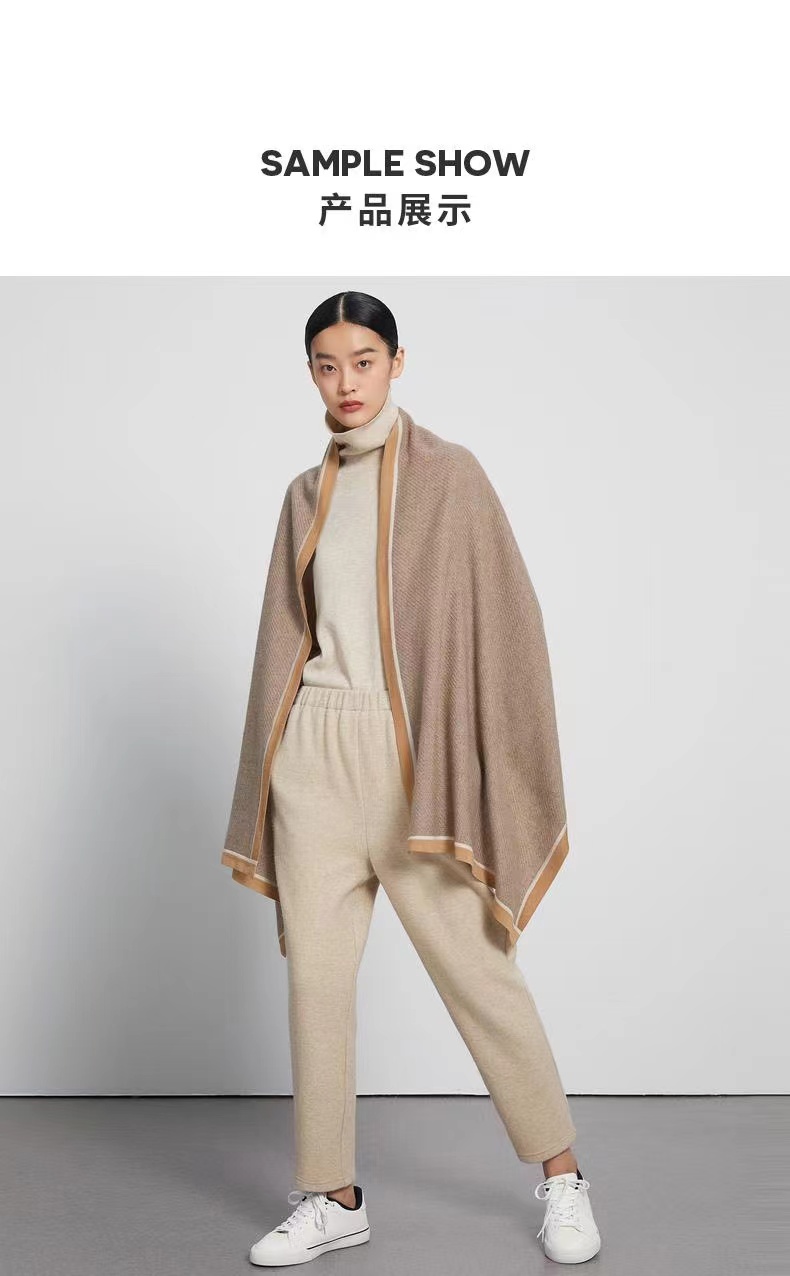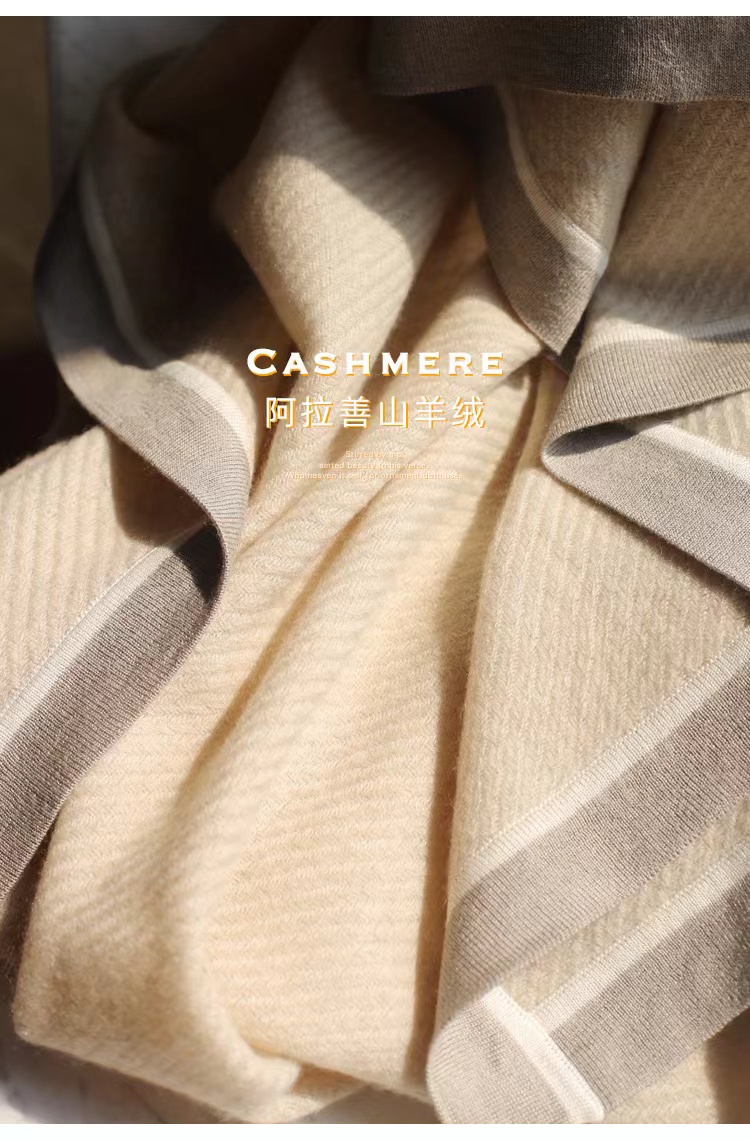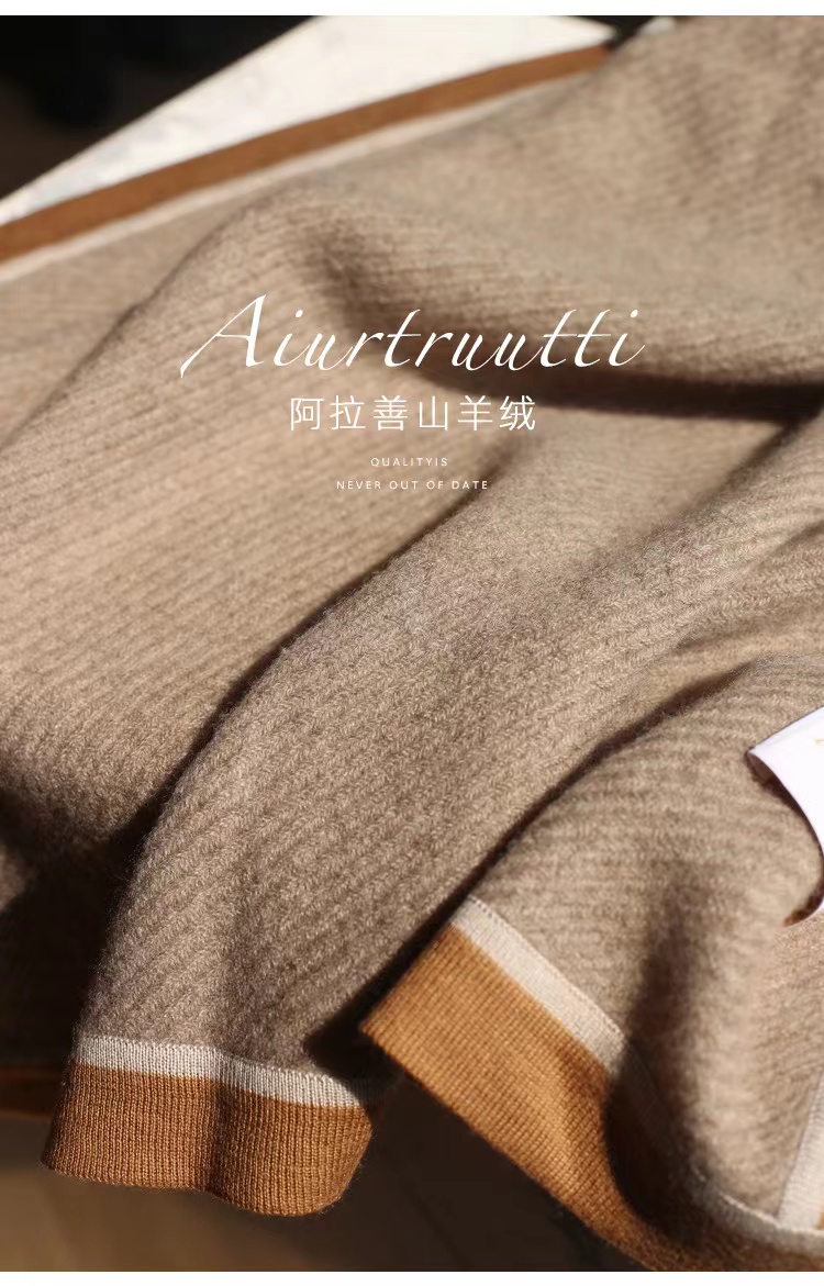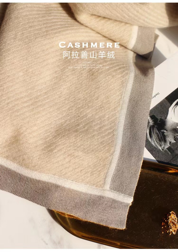 材质:面料:100%阿拉善山羊绒,边缘:85%绢丝,15%山羊绒