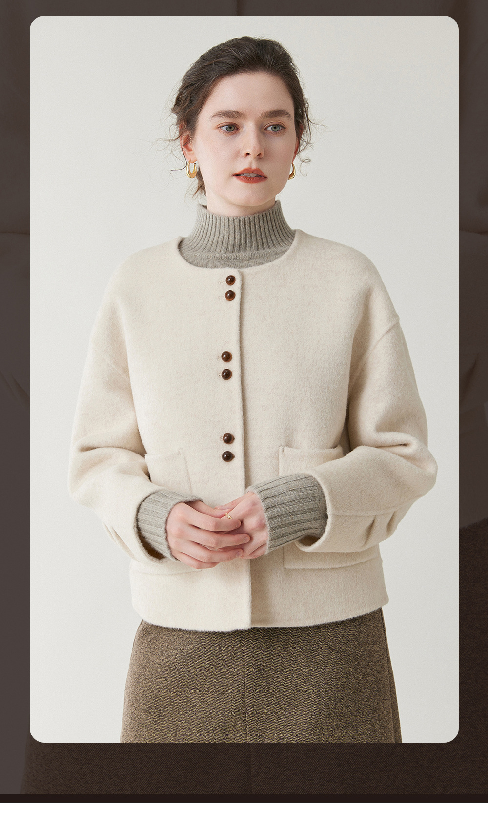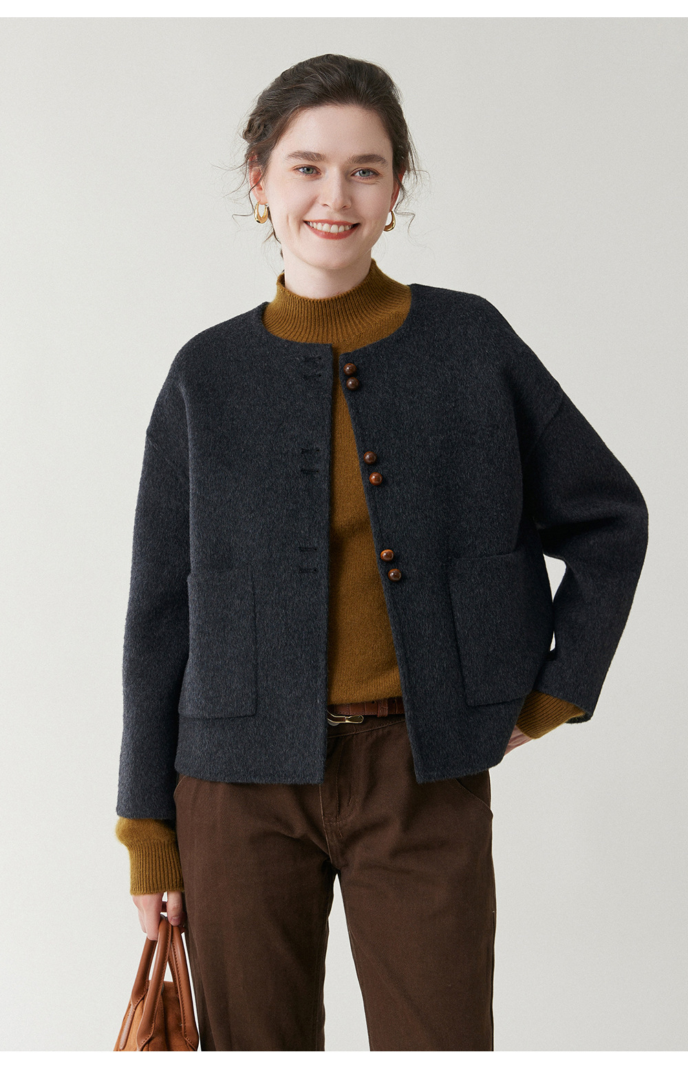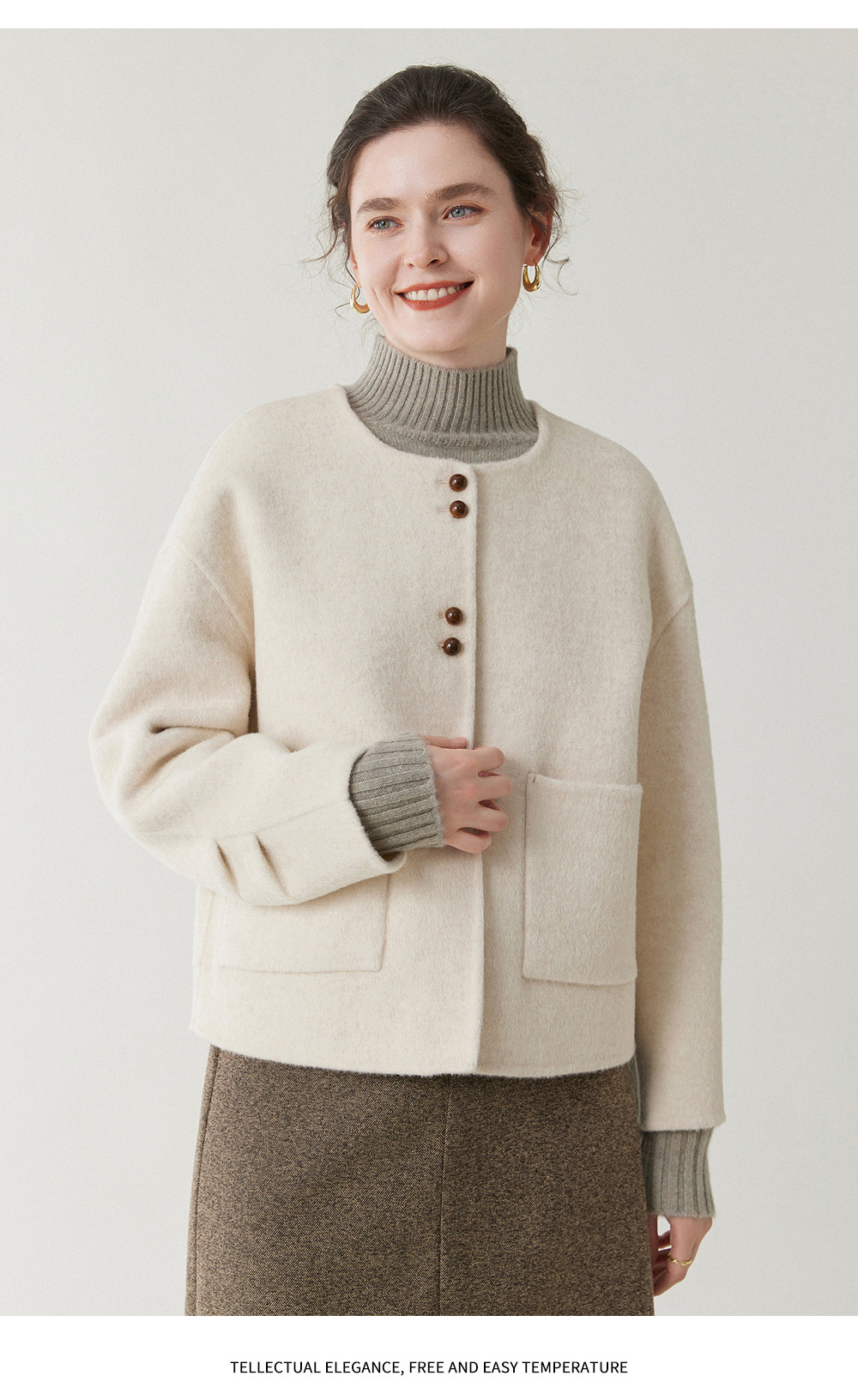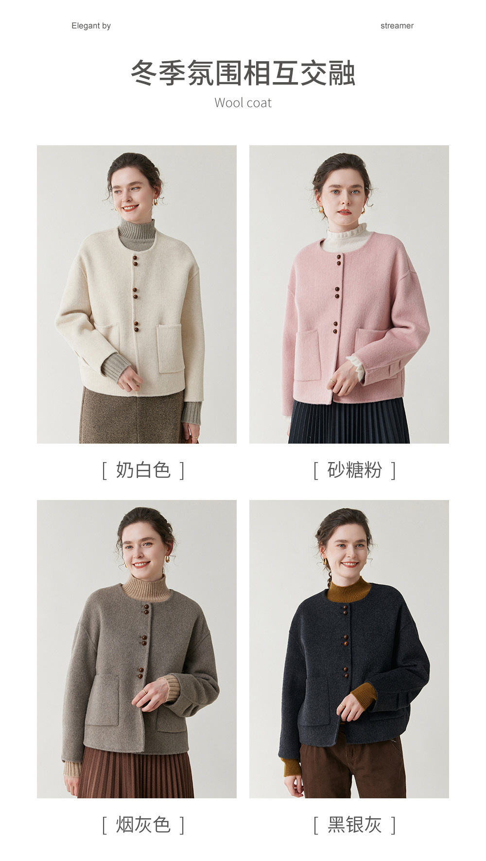 「自」全新升级【铂金会员569/天猫769/差价200】(11808)洛诗琳小香风纯色双面呢外套2025秋冬短款小个子韩系短外套