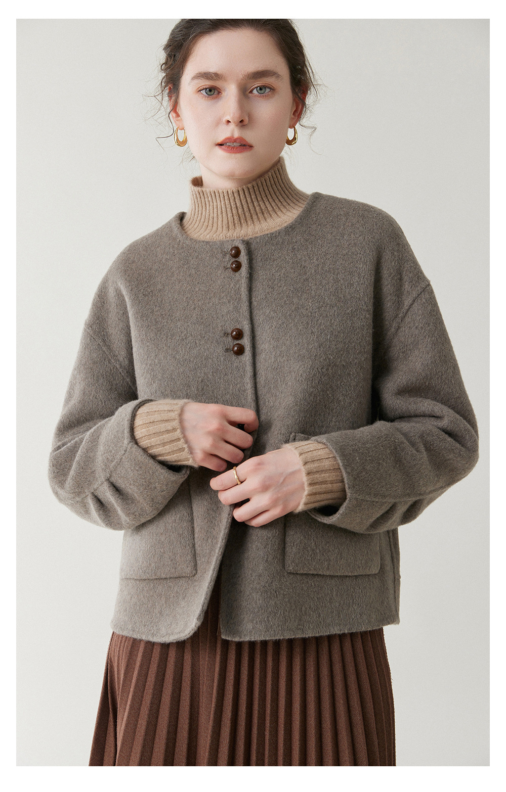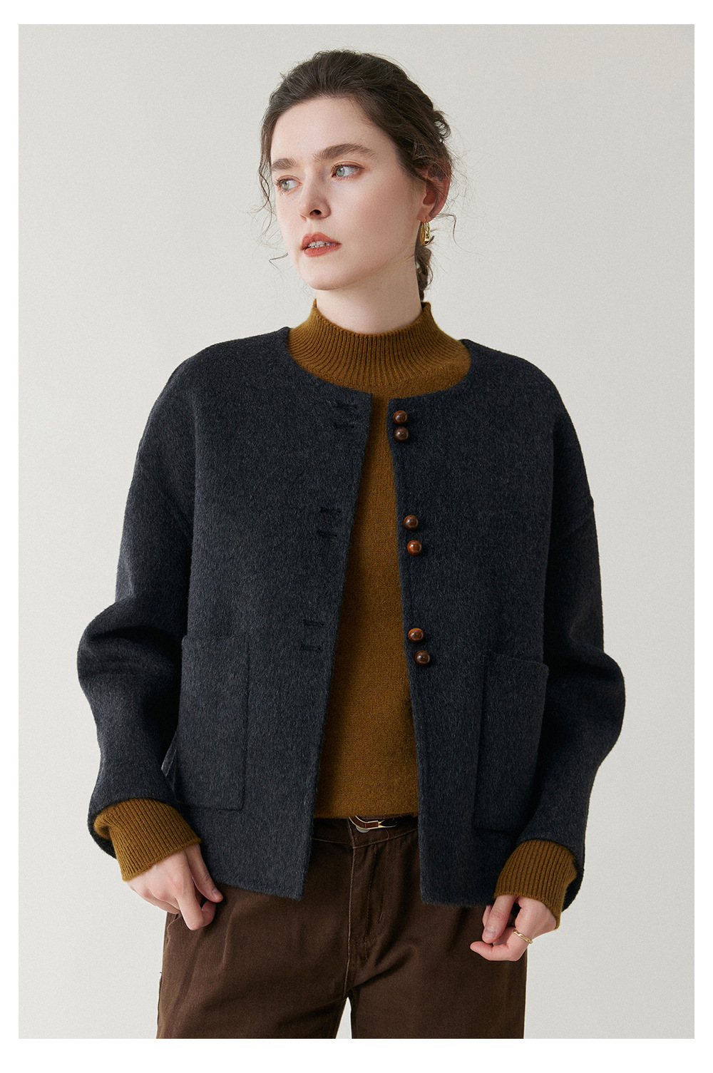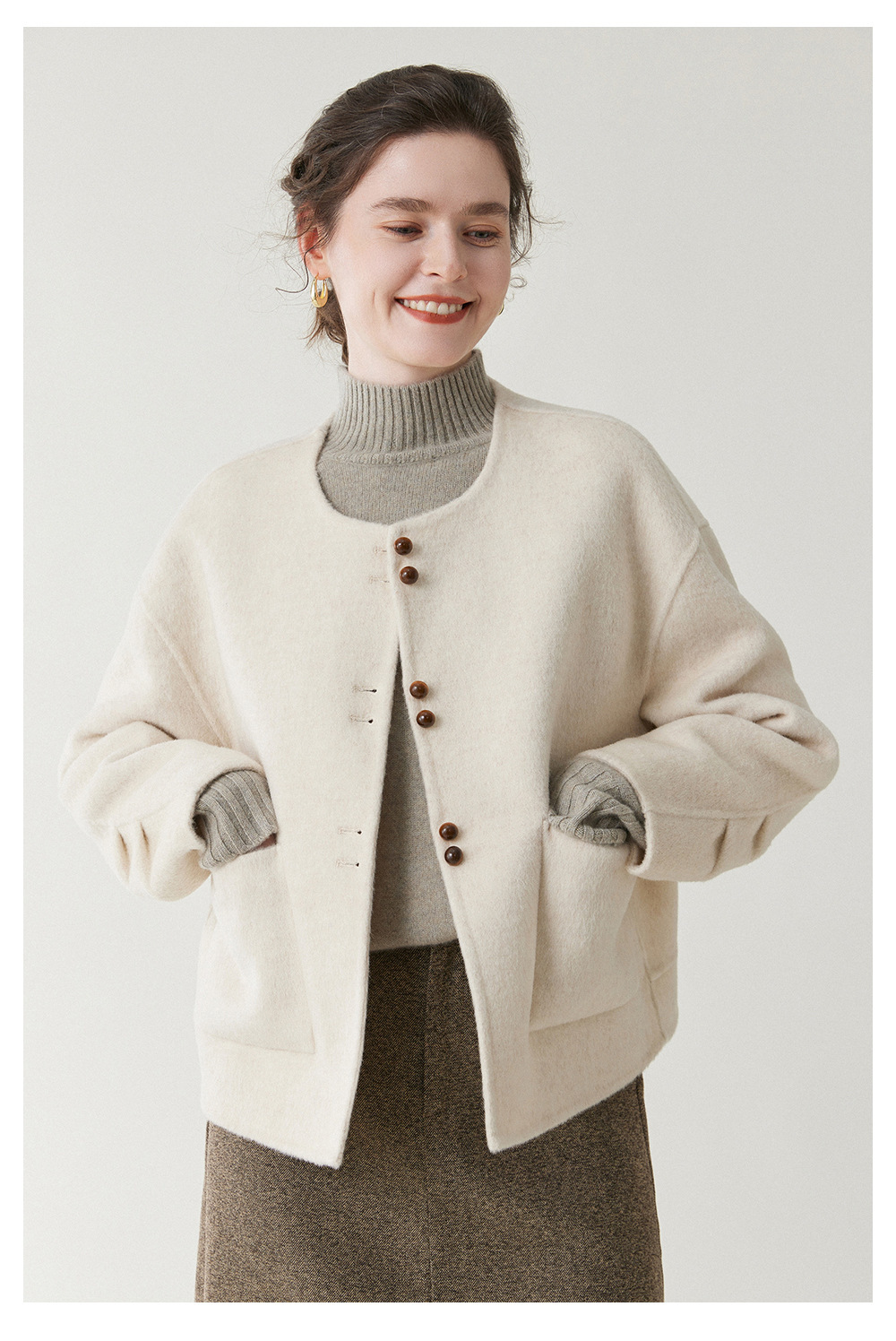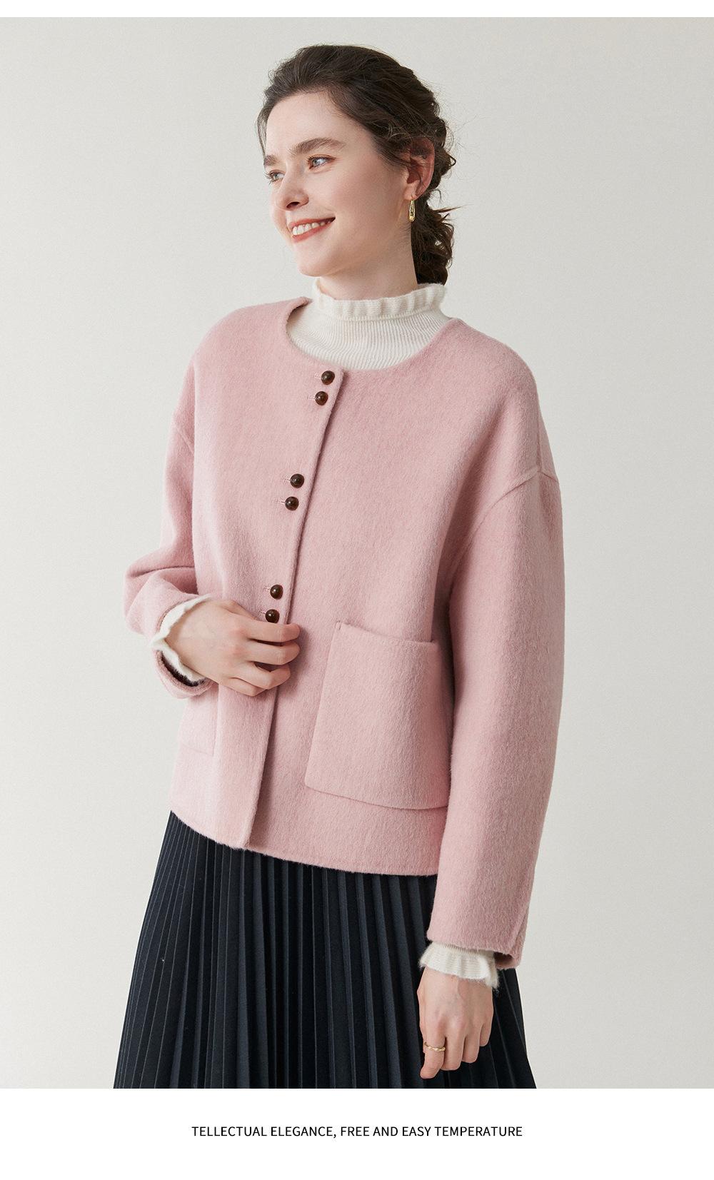 「自」全新升级【铂金会员569/天猫769/差价200】(11808)洛诗琳小香风纯色双面呢外套2025秋冬短款小个子韩系短外套