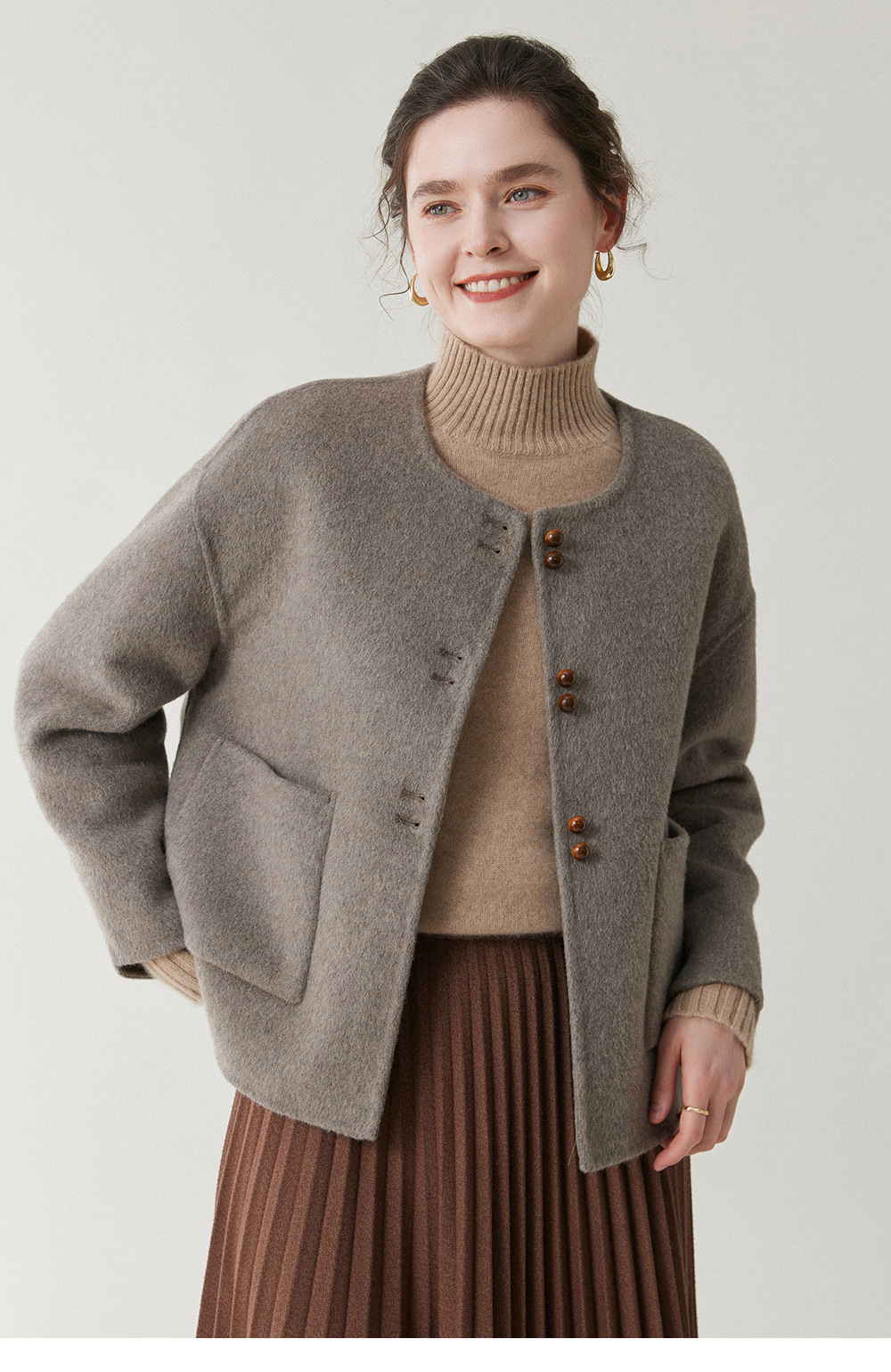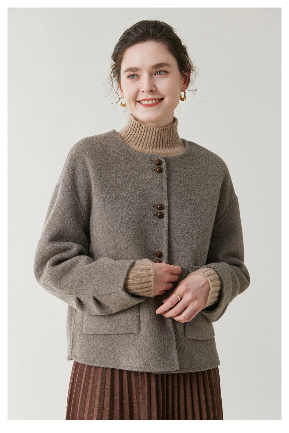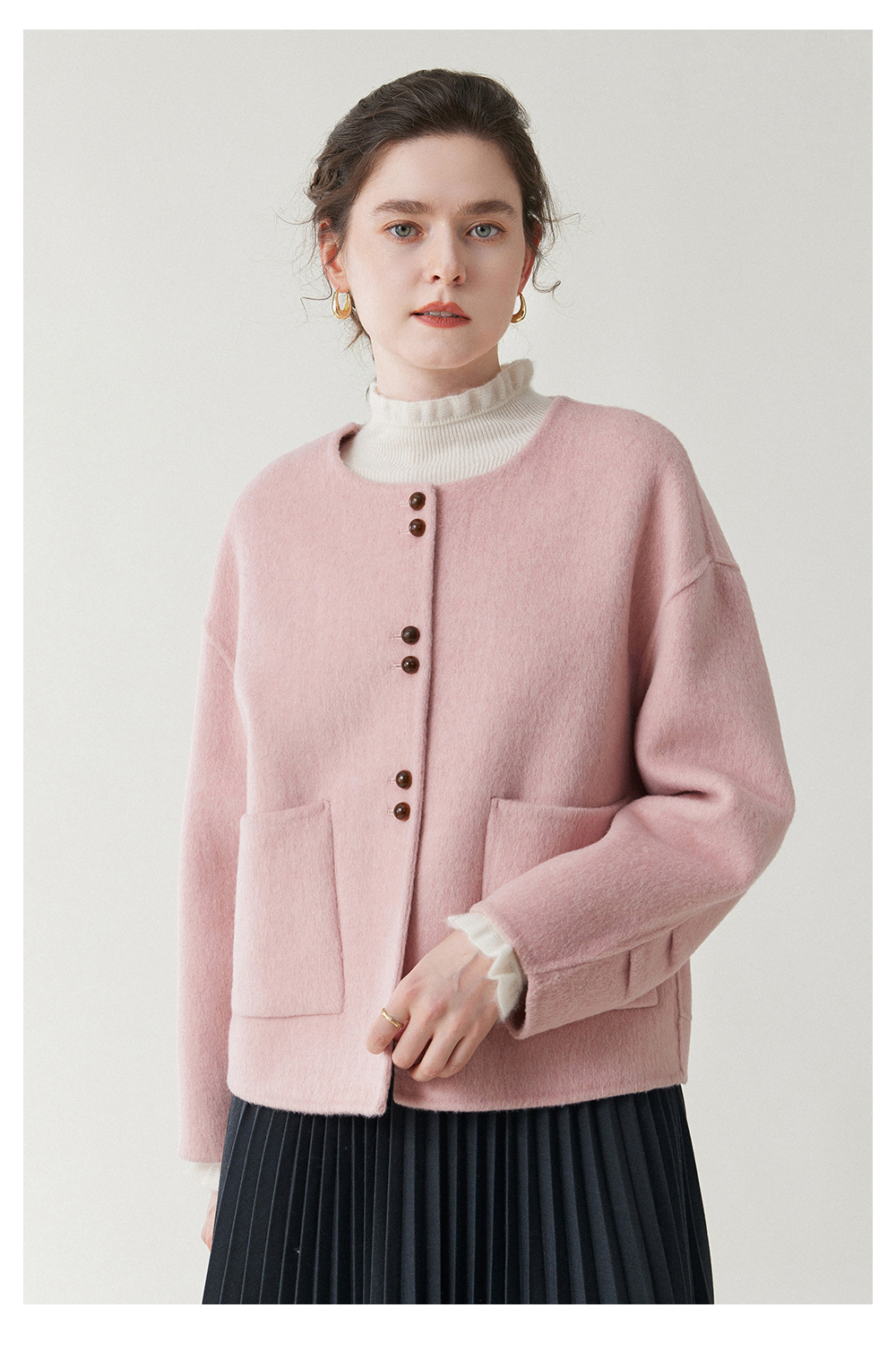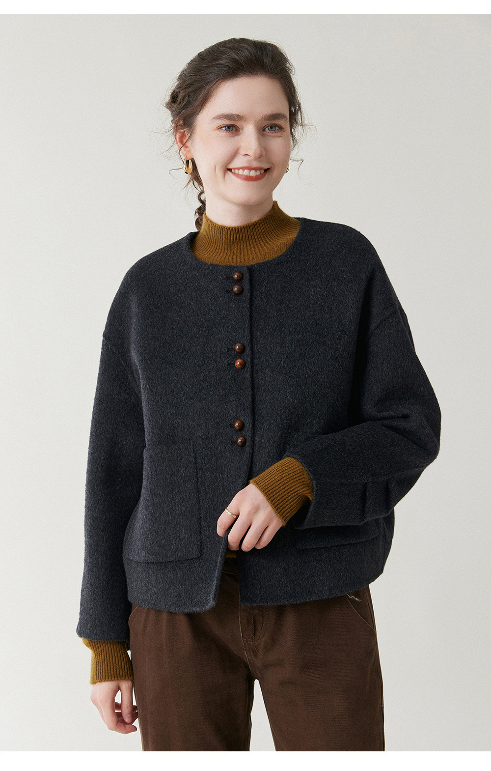 「自」全新升级【铂金会员569/天猫769/差价200】(11808)洛诗琳小香风纯色双面呢外套2025秋冬短款小个子韩系短外套