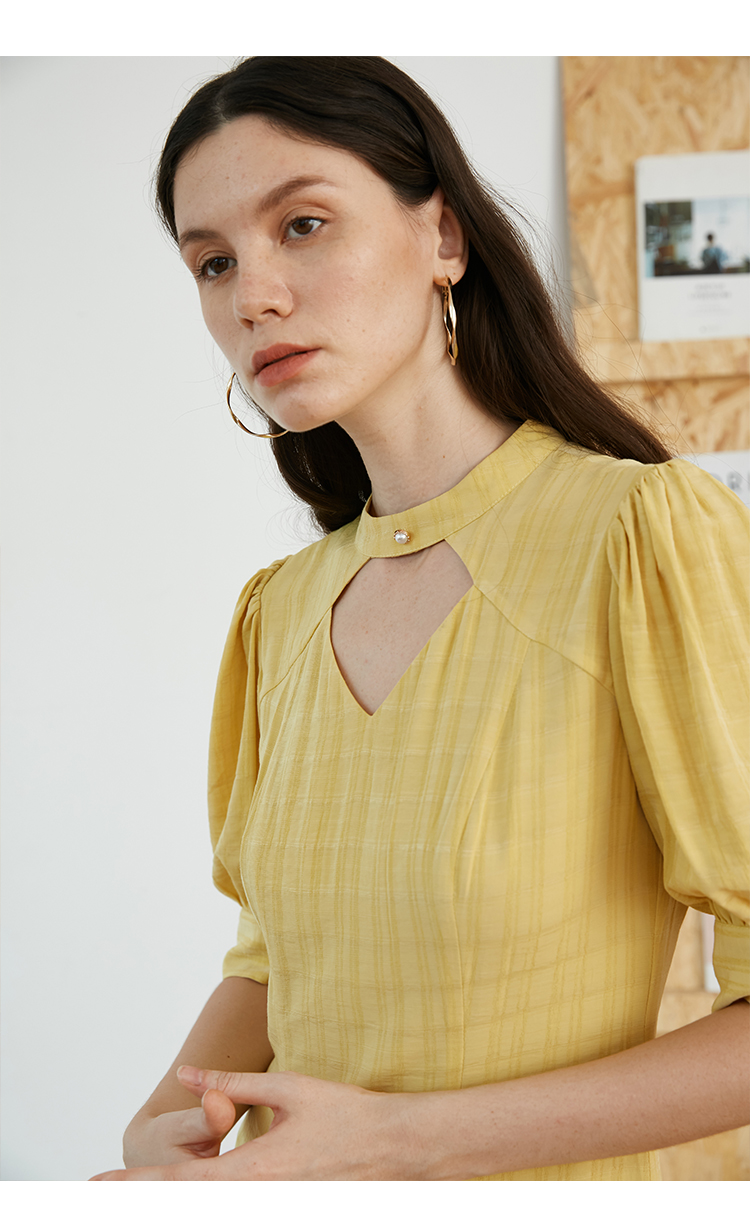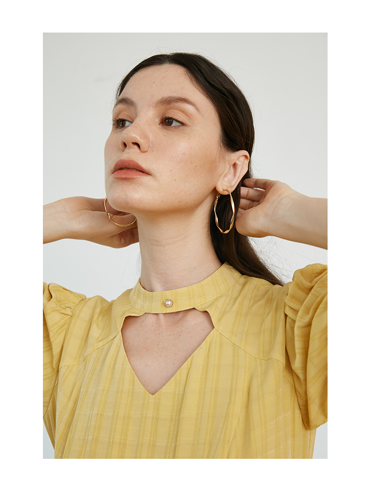 袖口的珍珠扣与领口呼应。灯笼袖的设计, 不夸张的复古感刚刚好。 |