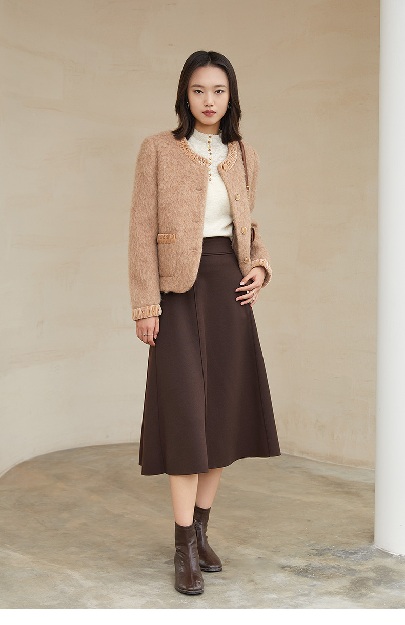 深棕纯色高腰 A 字半身裙 腰部双排扣装饰过膝大裙摆遮胯显瘦秋冬通勤气质优雅中长裙