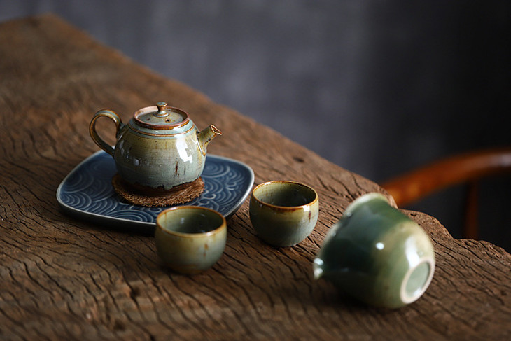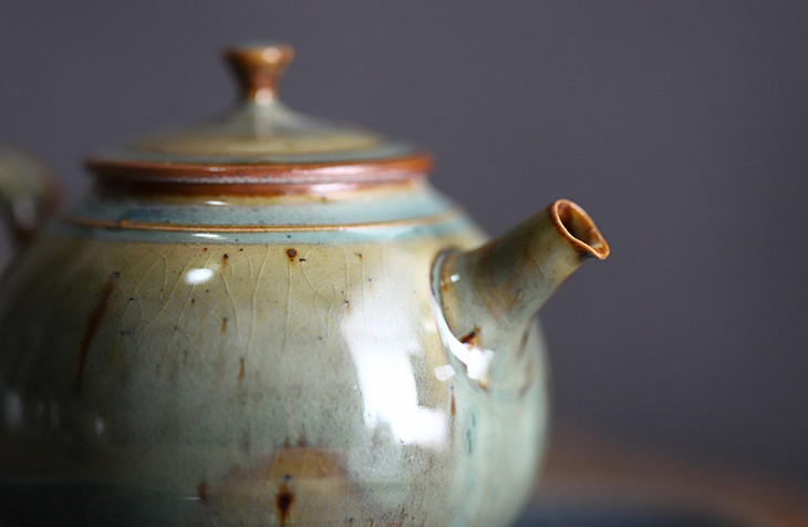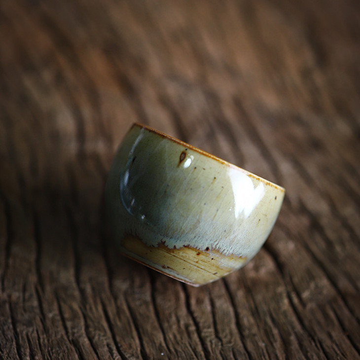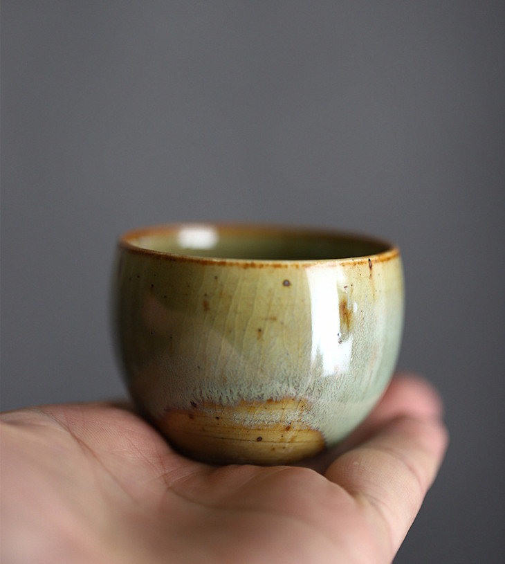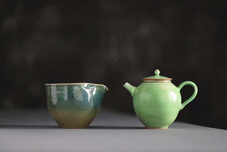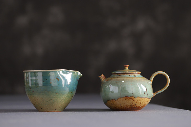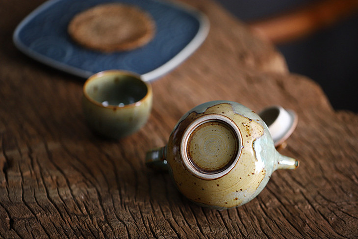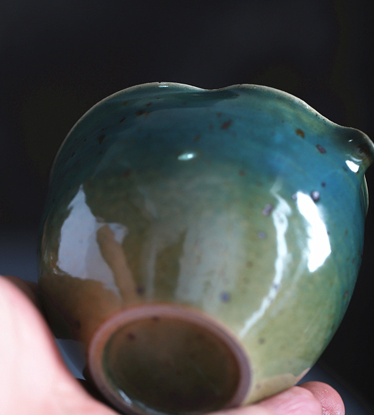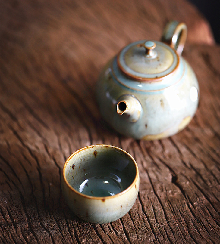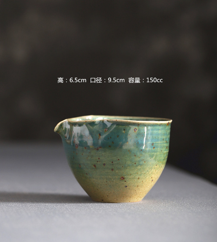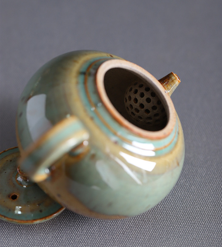 「景德镇全手工球孔蕉叶绿粗陶茶壶茶杯」 窑变釉主人壶 个人把玩陶瓷壶 品茗杯