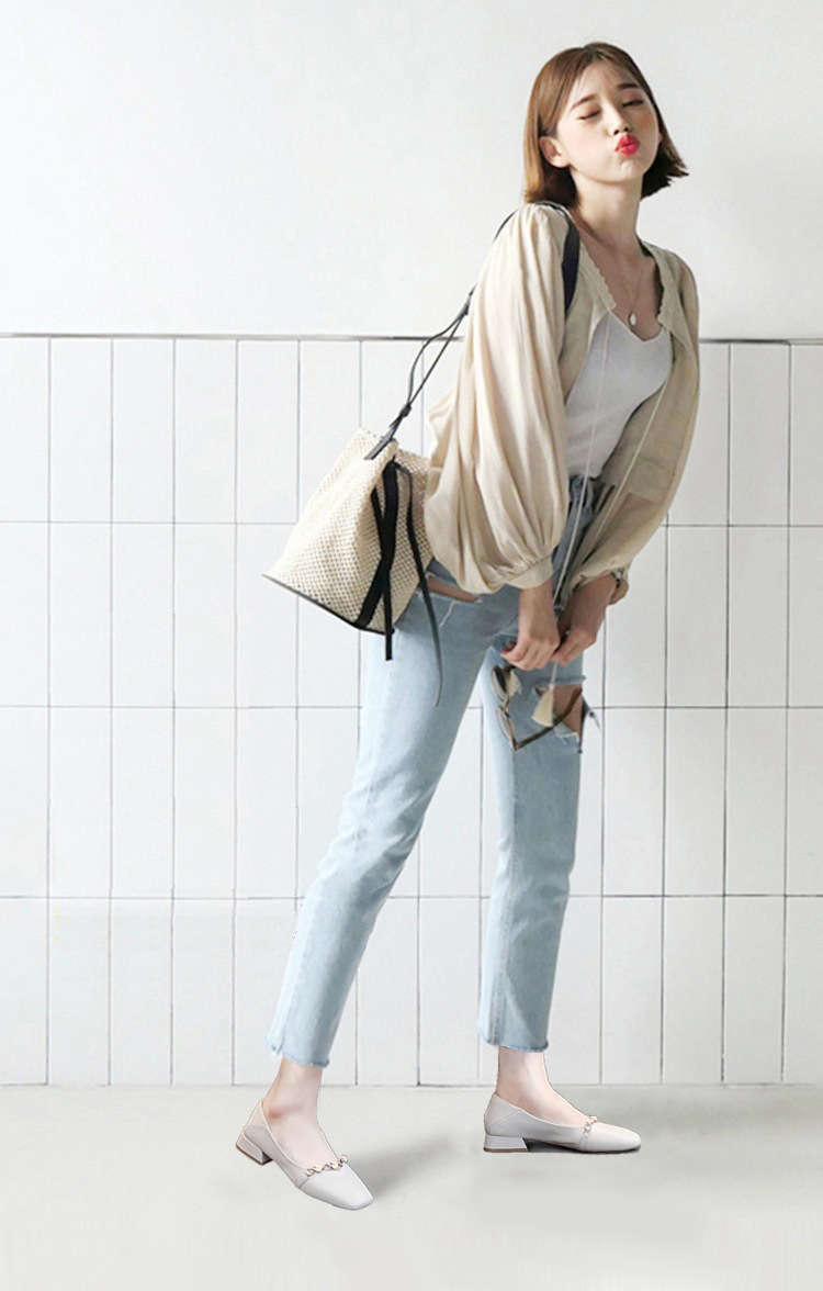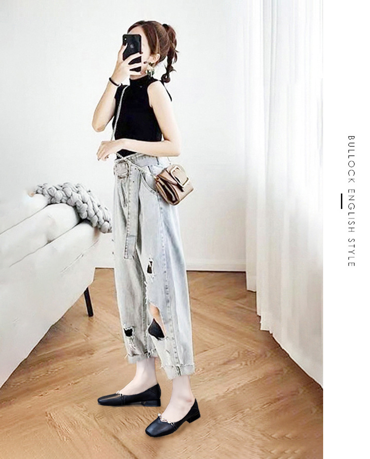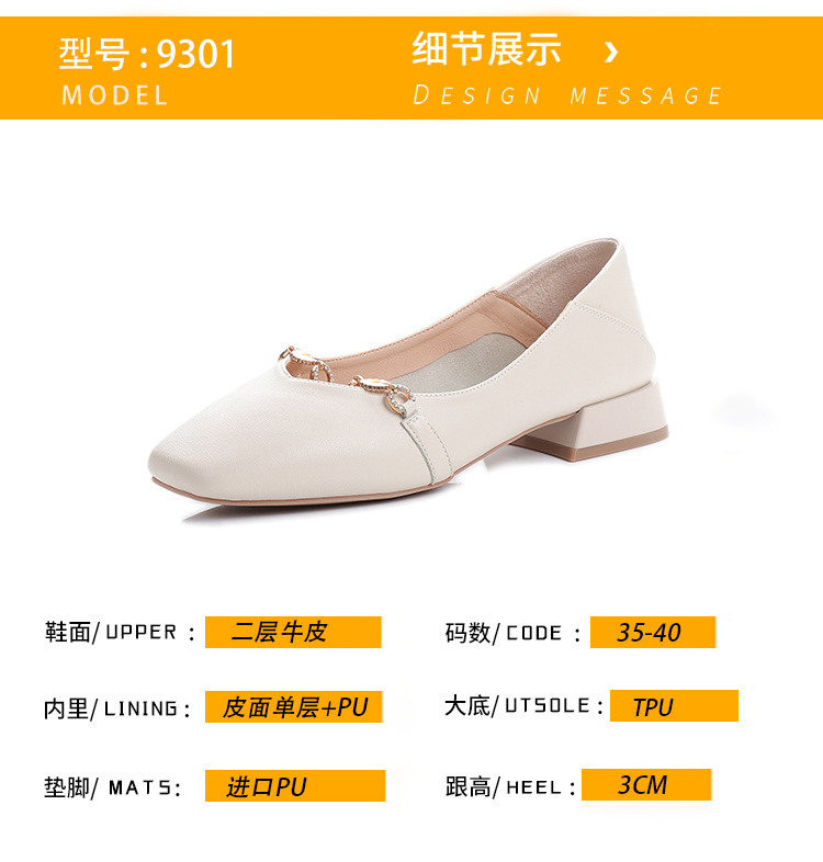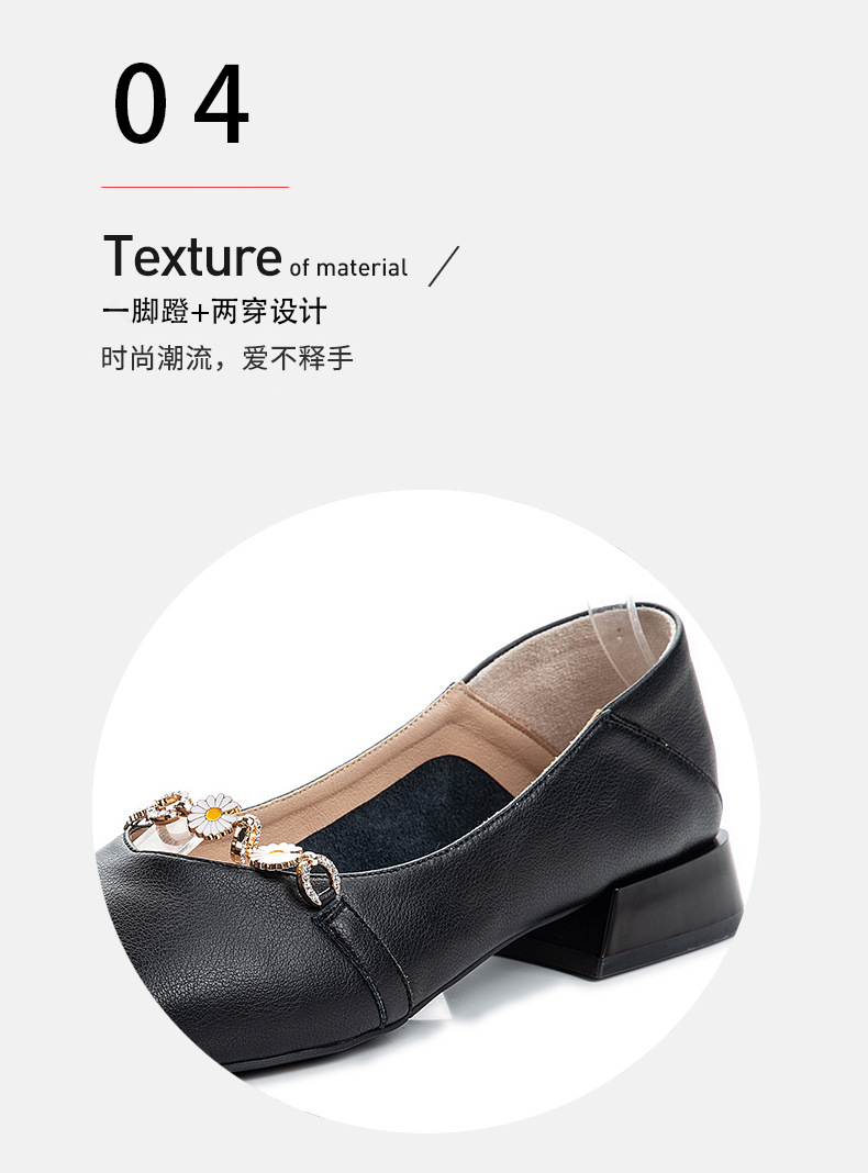 ML-9301小雏菊真皮2020新款粗跟一脚蹬四季百搭鞋