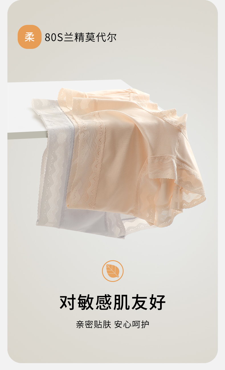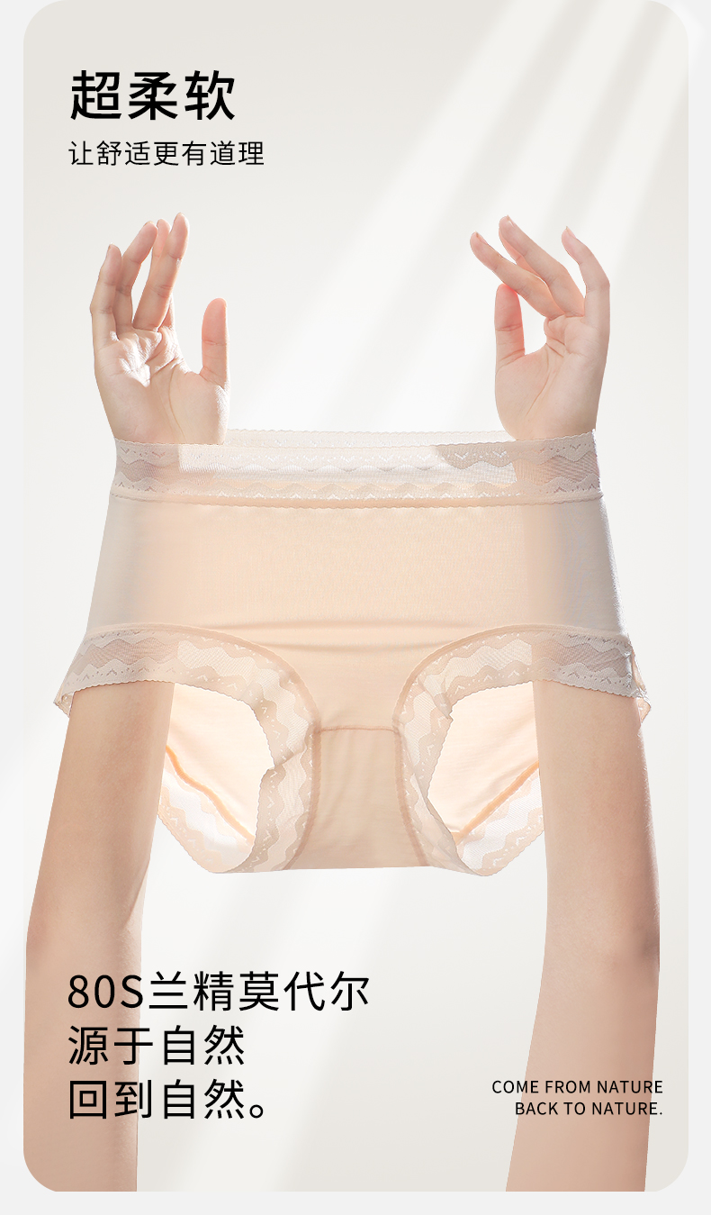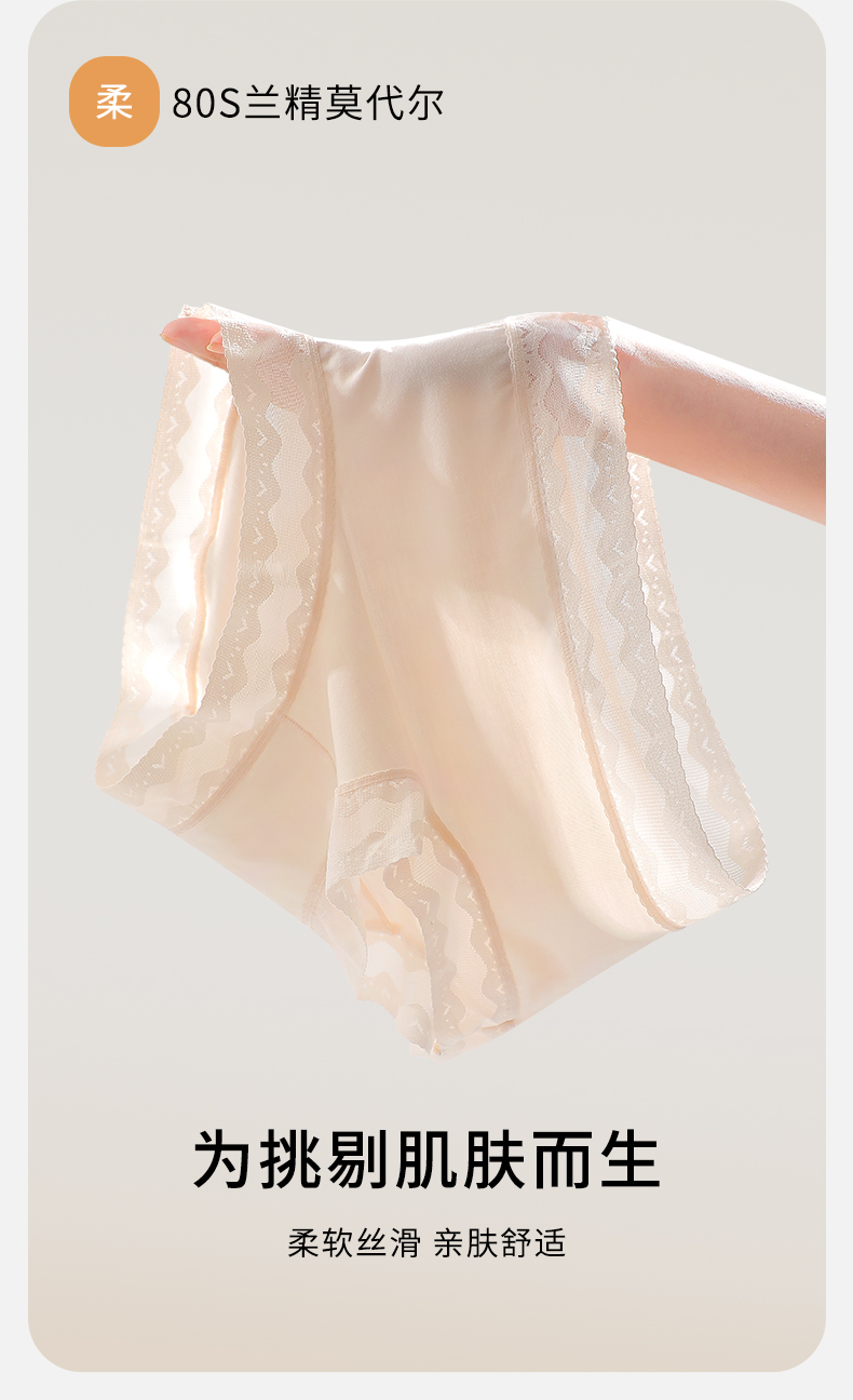 【高弹超柔,80支兰精莫代尔】【钜惠四条装】80S兰精莫代尔7A级聚乳酸裆女士内裤纯色舒适不夹臀无痕女中腰三角裤