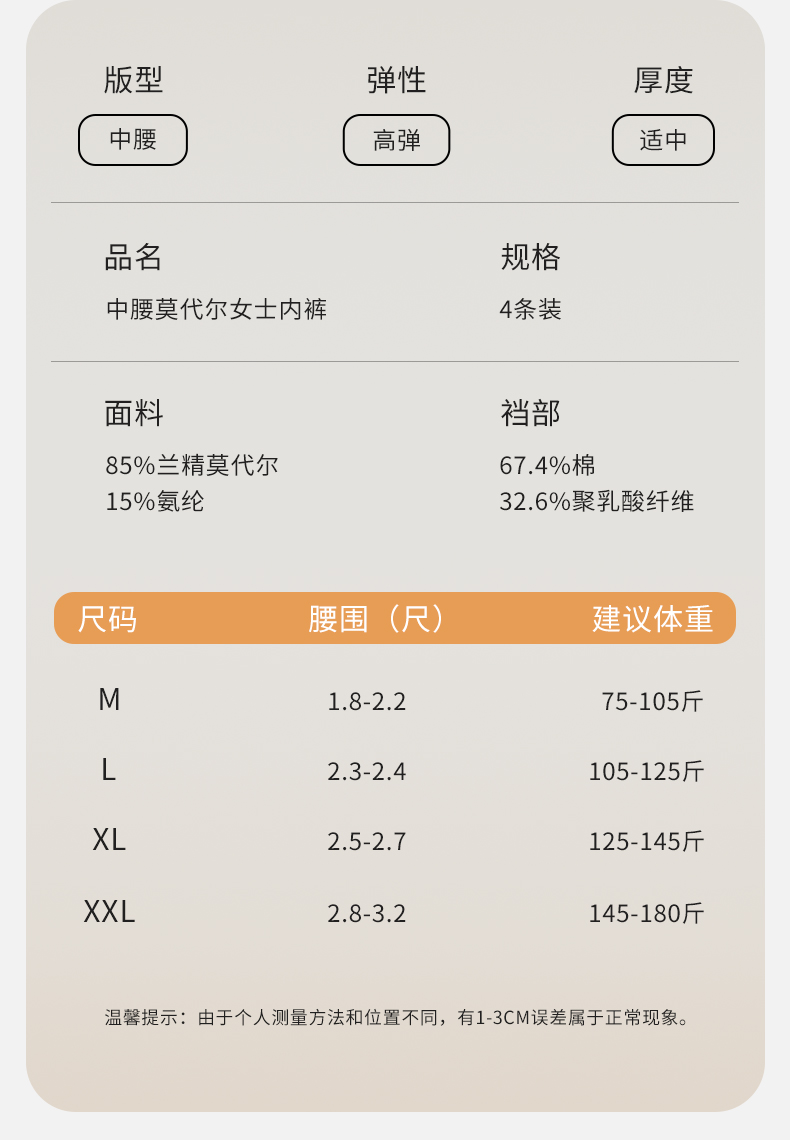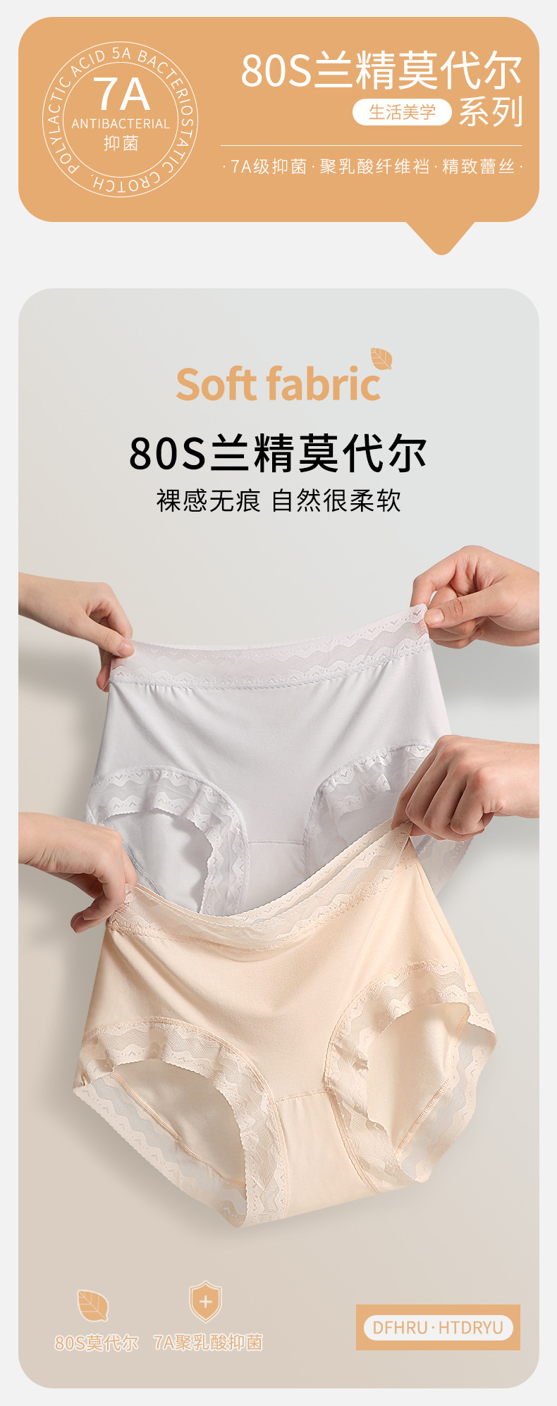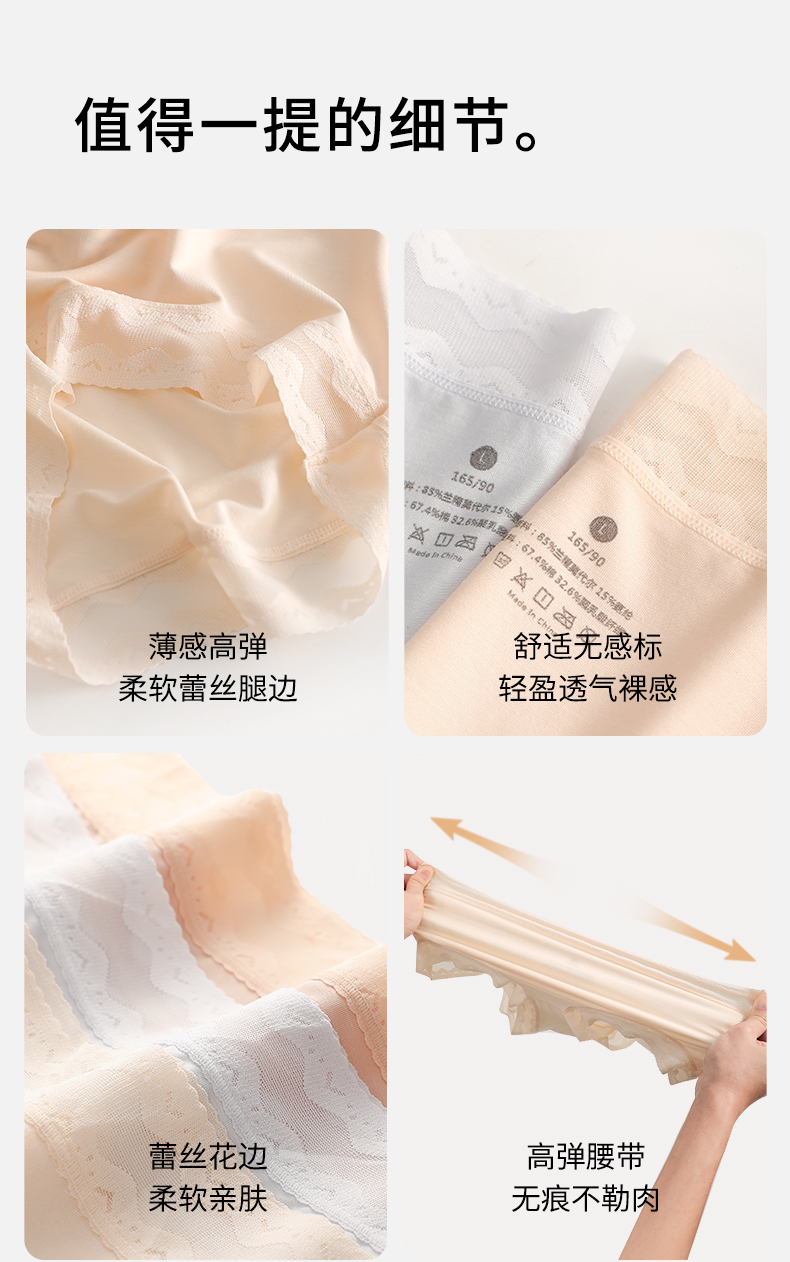 【高弹超柔,80支兰精莫代尔】【钜惠四条装】80S兰精莫代尔7A级聚乳酸裆女士内裤纯色舒适不夹臀无痕女中腰三角裤