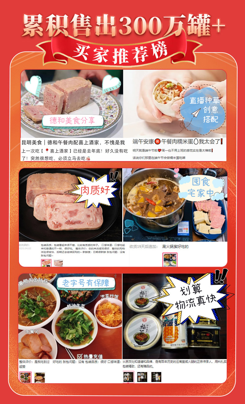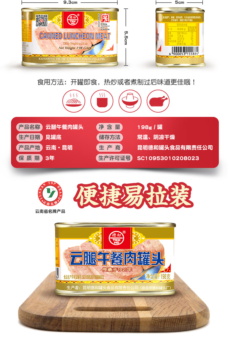 【一整箱“肉”礼包,90%以上含肉量】德和黑猪云腿午餐肉 198g/罐 中华老字号火锅三明治早餐方便面#午餐肉