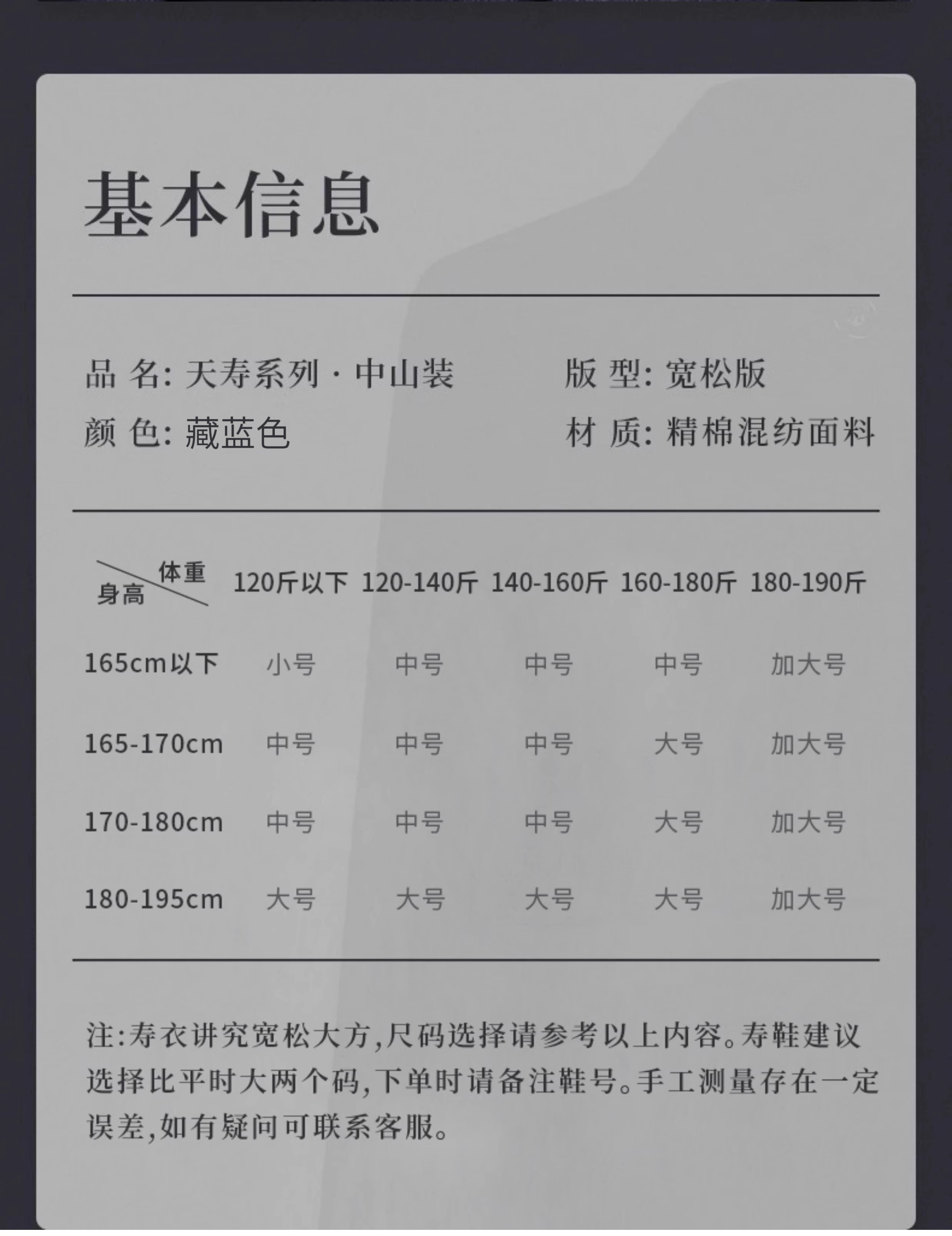 天寿系列-男中山(藏蓝)