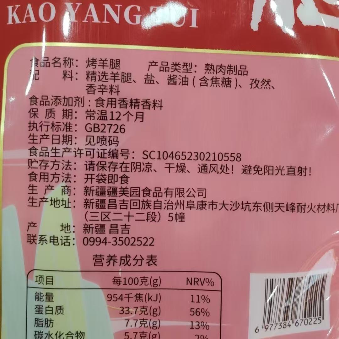 新疆烤羊腿550g/1100g真空包装加热即食新疆发货
