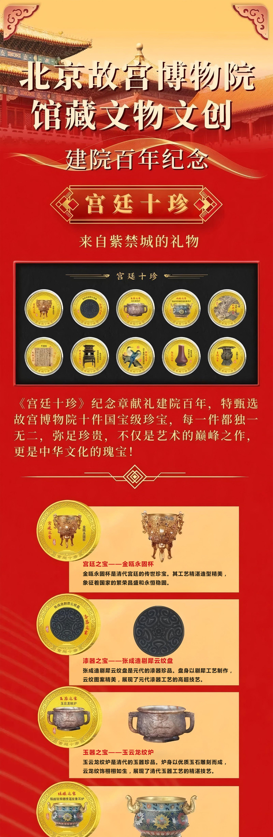 【故宫博物馆建馆100周年华诞】宫廷十珍纪念章(精美封装)