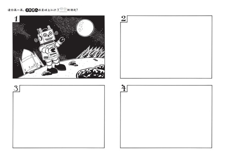 “创意涂鸦”系列的图画设计并不局限于“把图画完”,更重要的是如何发展和延续图片的思路。在这套书中,想象力是第一位的——书中每个场景都附有一句启发性的话,能引导、激励孩子们发挥想象力去编织自己的故事,同时发挥创造力接着构造出完整的故事画面。