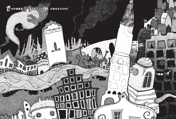 依样画葫芦式的绘画比较容易,但要发挥想象力、有创意地构图绘画就比较难了。我小时候就很喜欢绘画书,对此深有体会,可这也是“很刺激”的一件事。在与学生们讨论时,我们就反复设想:自己若身为一个孩子,面对这样的创意涂鸦书,会有怎样的反应呢?孩子们会发现,这些图画设计并不局限于“把图画完”,更重要的是如何发展和延续图片的思路。这样引导孩子们接着画几笔看似简单,但我们不可低估它的能量。那些看似最简单的几笔补画,却有可能展现出令人惊讶的创意,能唤起观赏者极大的共鸣。