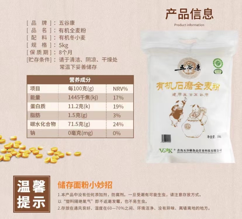 基地直发-有机石磨全麦粉5kg装 有机面粉