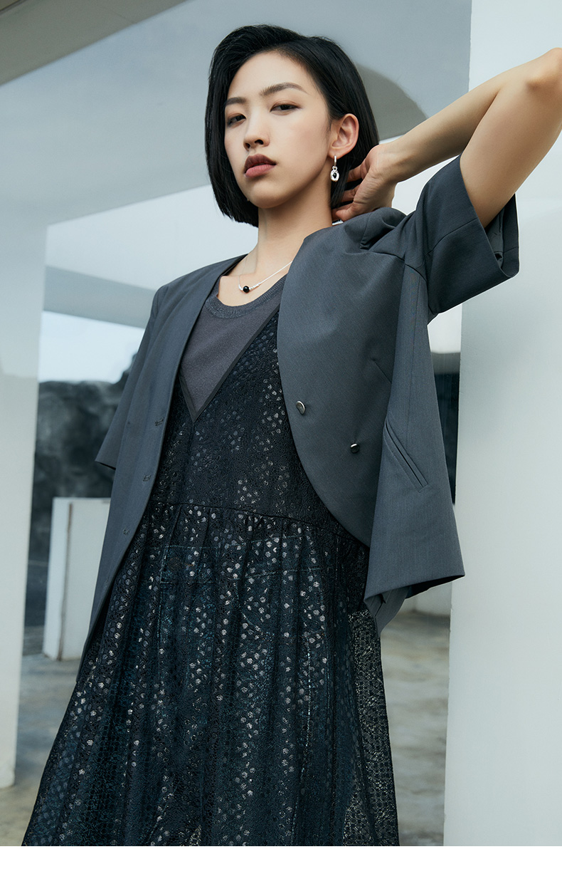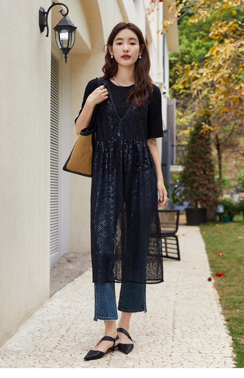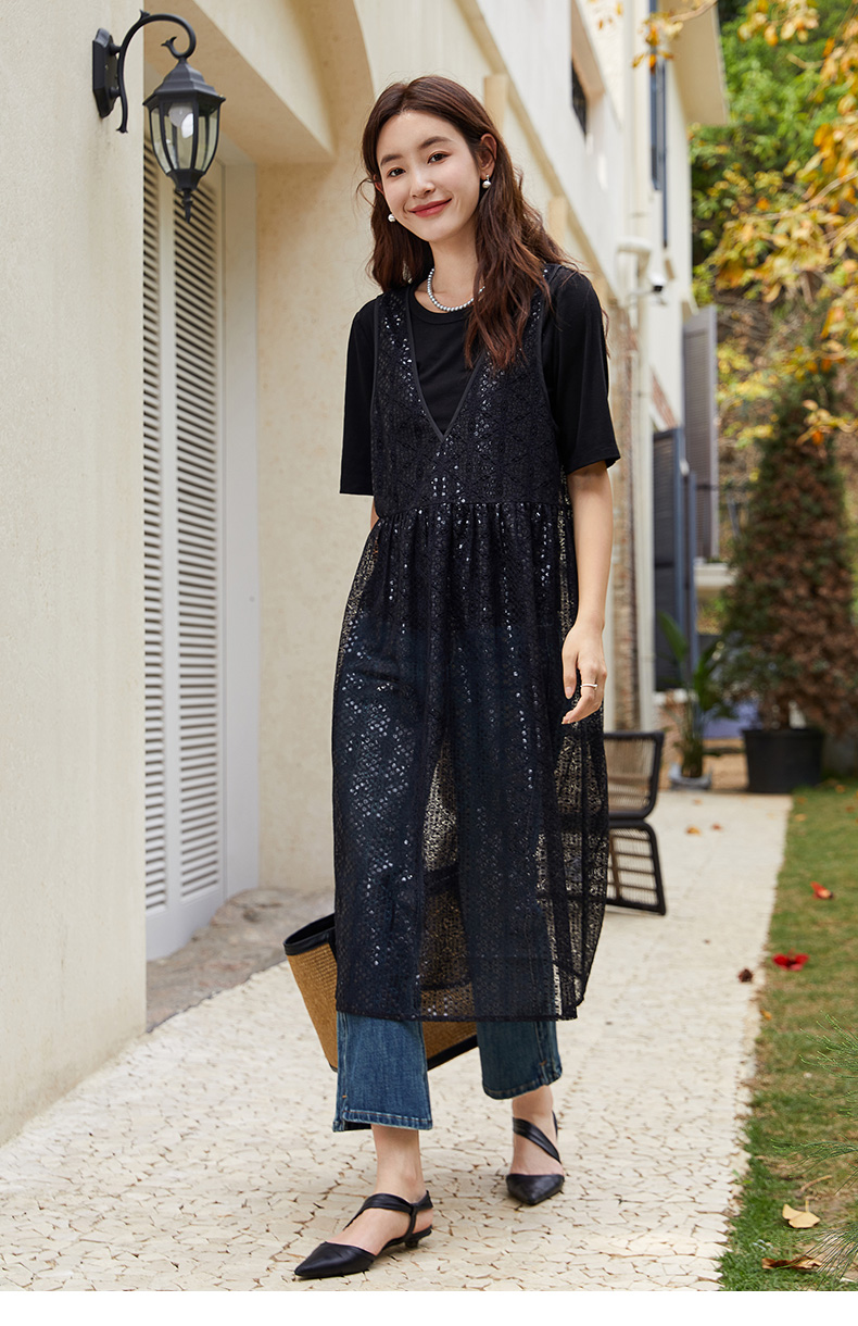 性感 V 领无袖亮片网纱连衣裙 宽松显瘦气质女款中裙