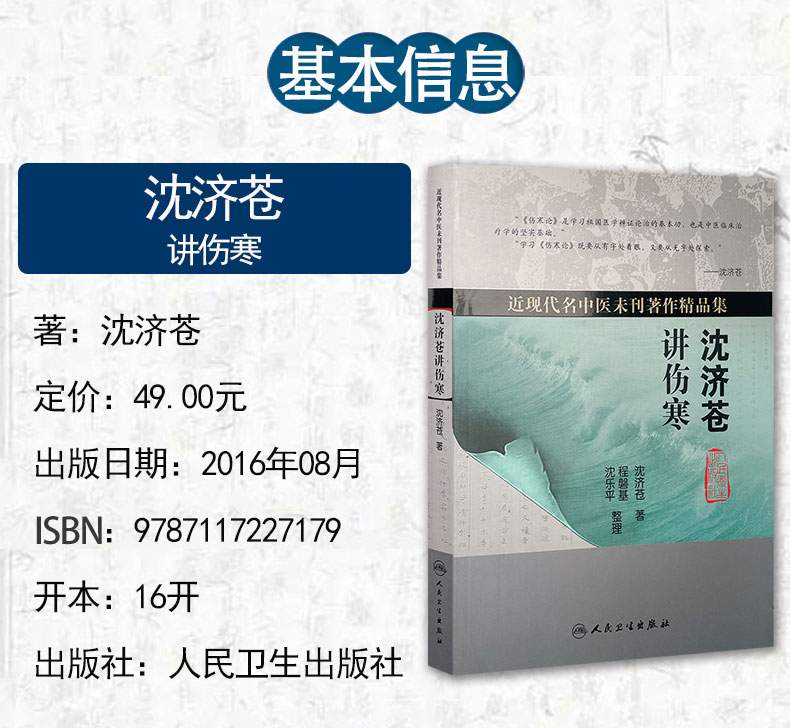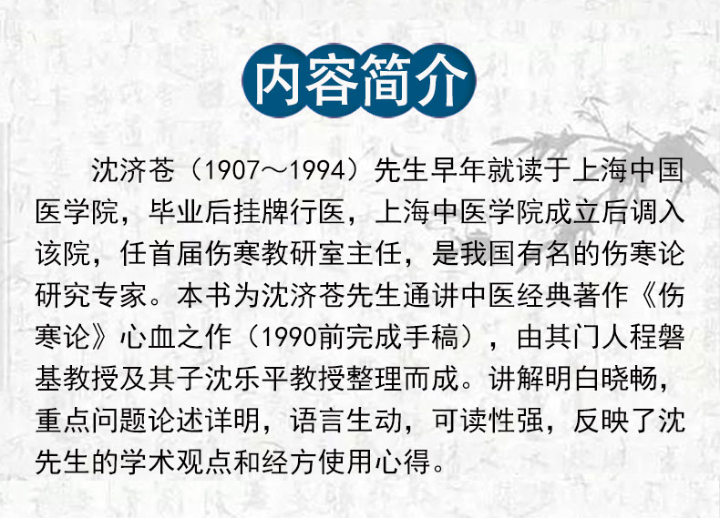 沈济苍讲伤寒 [中医药优秀图书][中医 双创 推荐图书] 沈济苍 著 9787117227179 2016年9月参考书 人民卫生出版社