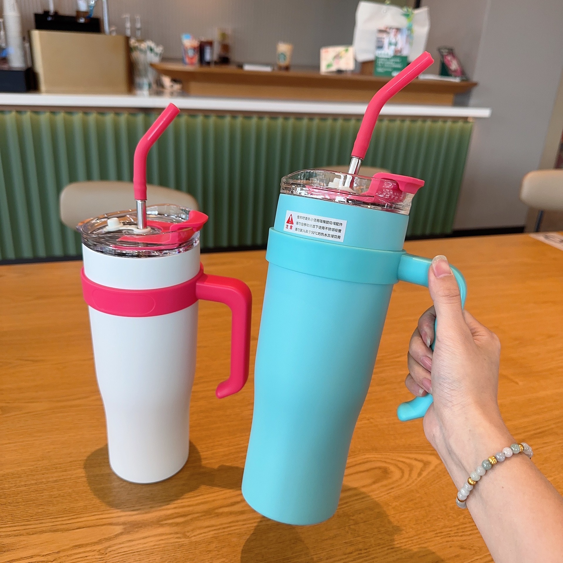 【超值89.9任选2款!送贴纸!】巨无霸1200ml咖啡杯保温杯 女生高颜值 304不锈钢材质 带吸管冰霸杯 大容量水杯网红2024新款杯子-QQ