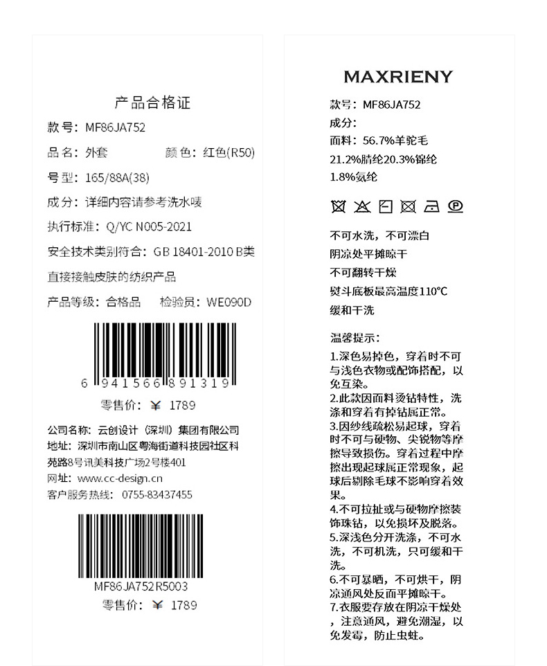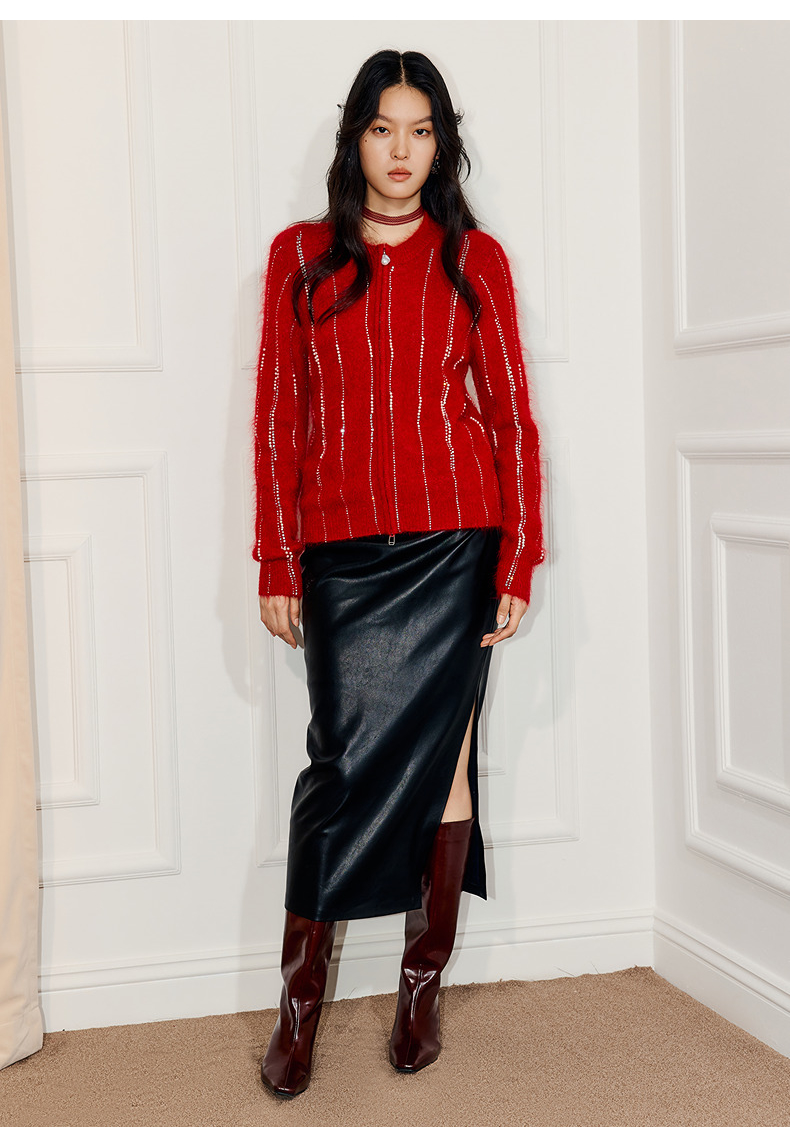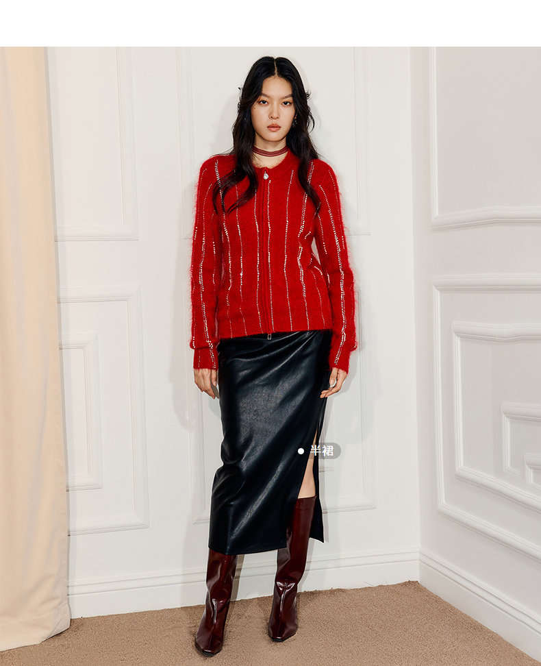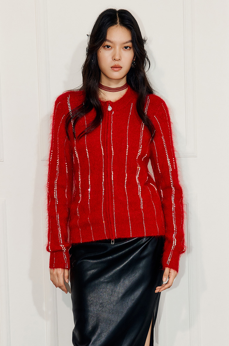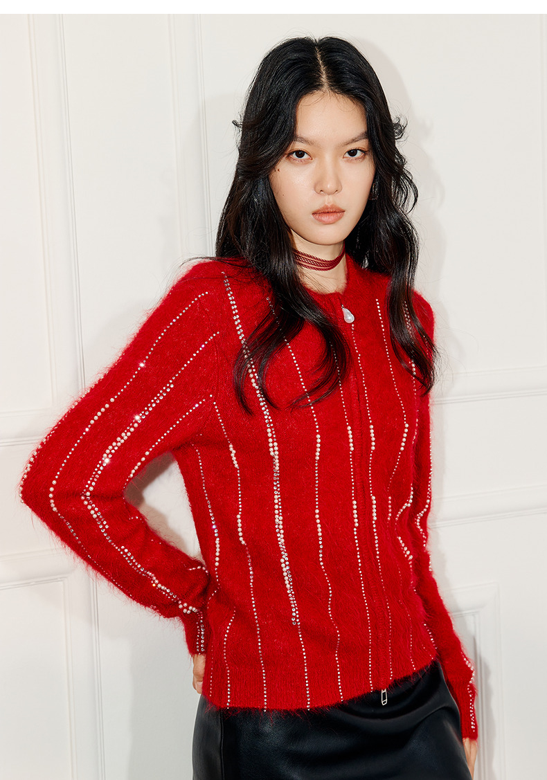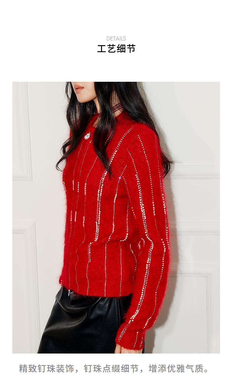 MAXRIENY精致浪漫感烫钻钉珠点缀外套温柔风女高级气质感秋冬款(货号:MF86JA752)