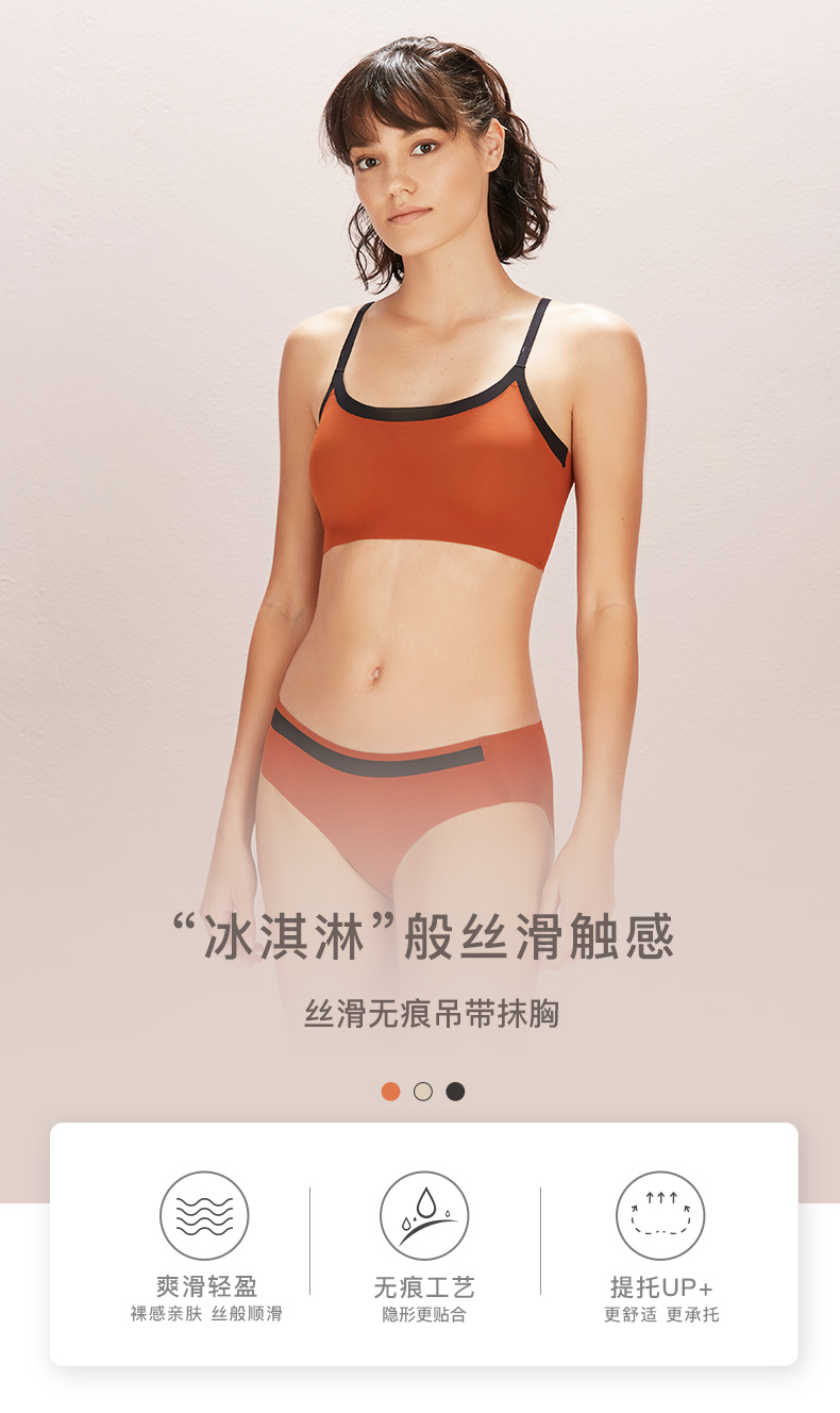 Ubras丝滑无痕吊带抹胸内衣女小胸无钢圈舒适透气美背文胸胸罩