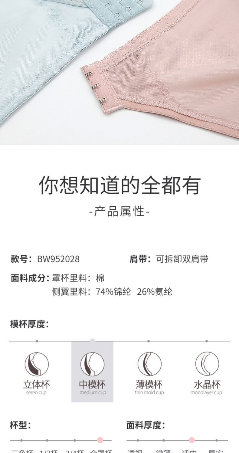 贝佳人薄杯文胸3/4杯舒适无钢圈上托聚拢稳固内衣女BW952008