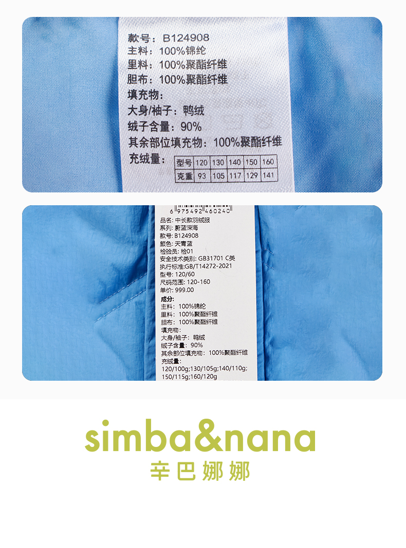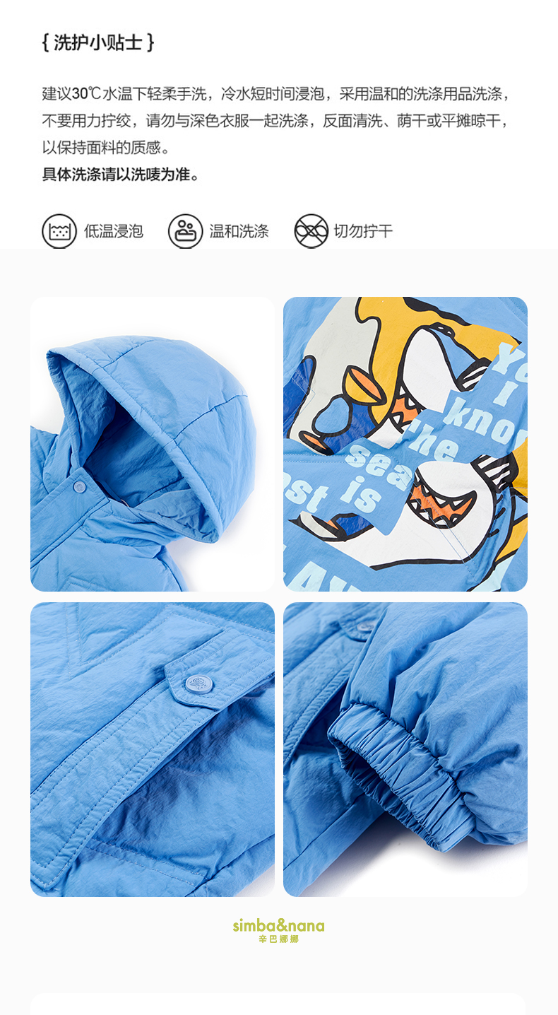 【辛巴娜娜】simbanana【大童】新品儿童男中大童连帽鸭绒保暖宝宝冬装外套加厚