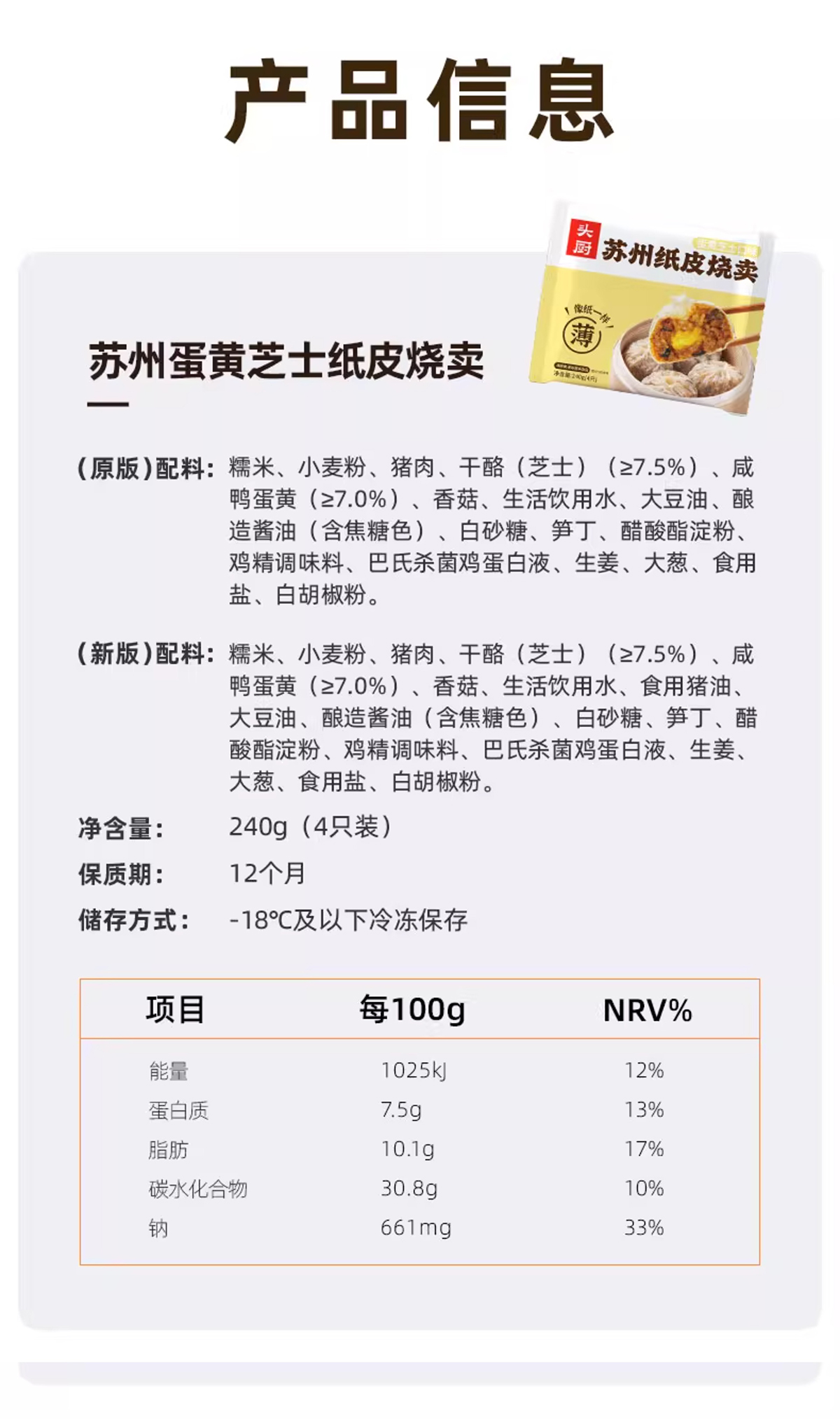 【纸皮烧卖 冷链发货】头厨|苏州纸皮烧卖蛋黄芝士烧卖薄皮烧卖网红美食