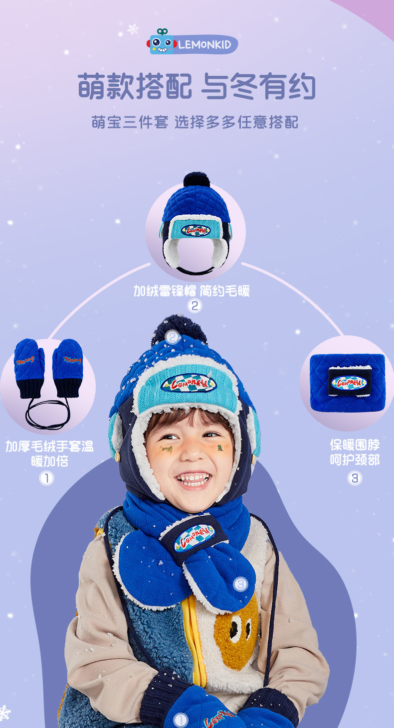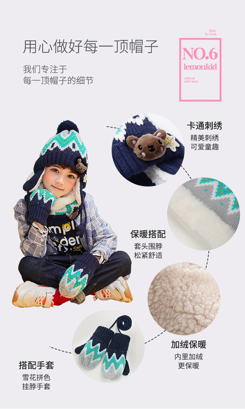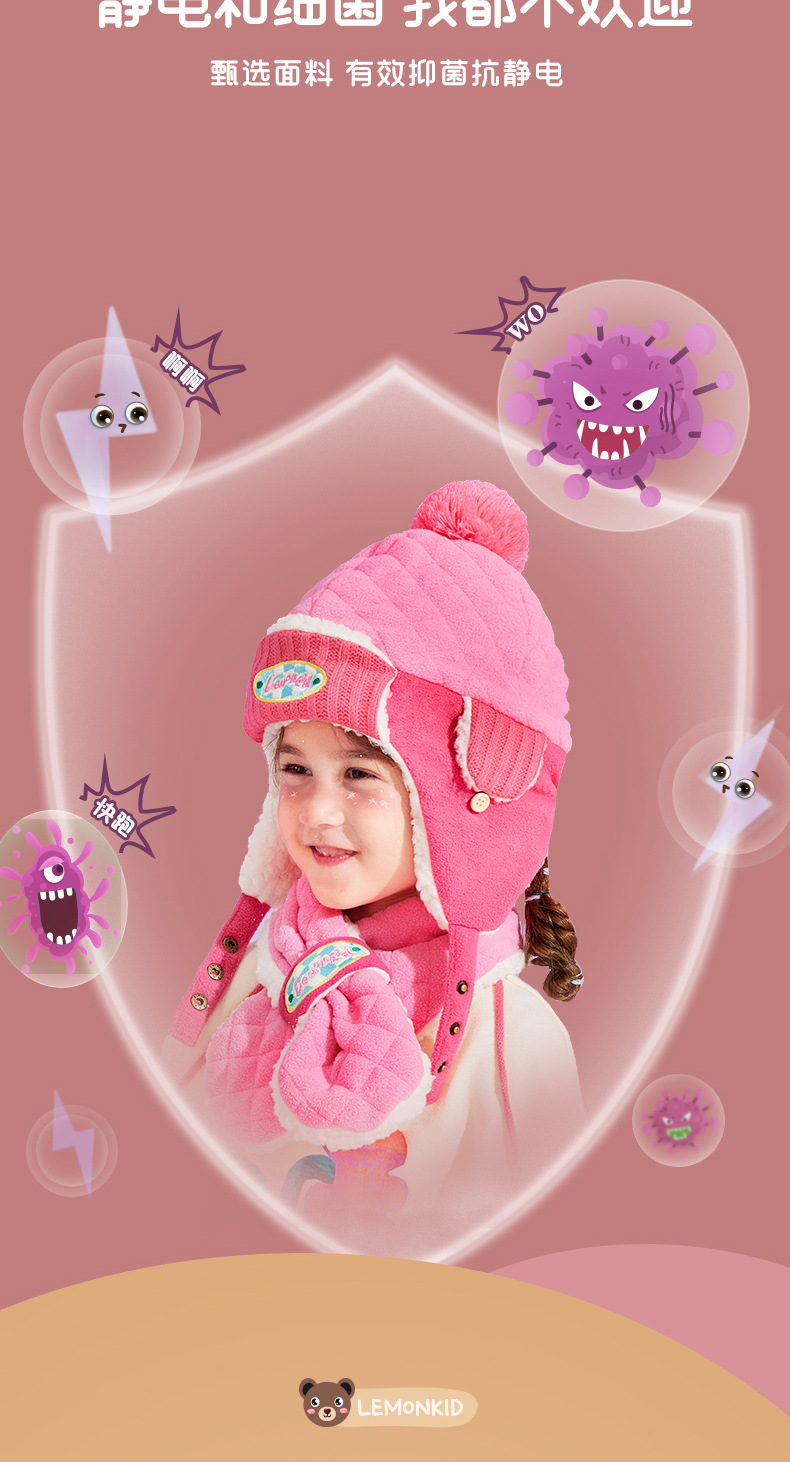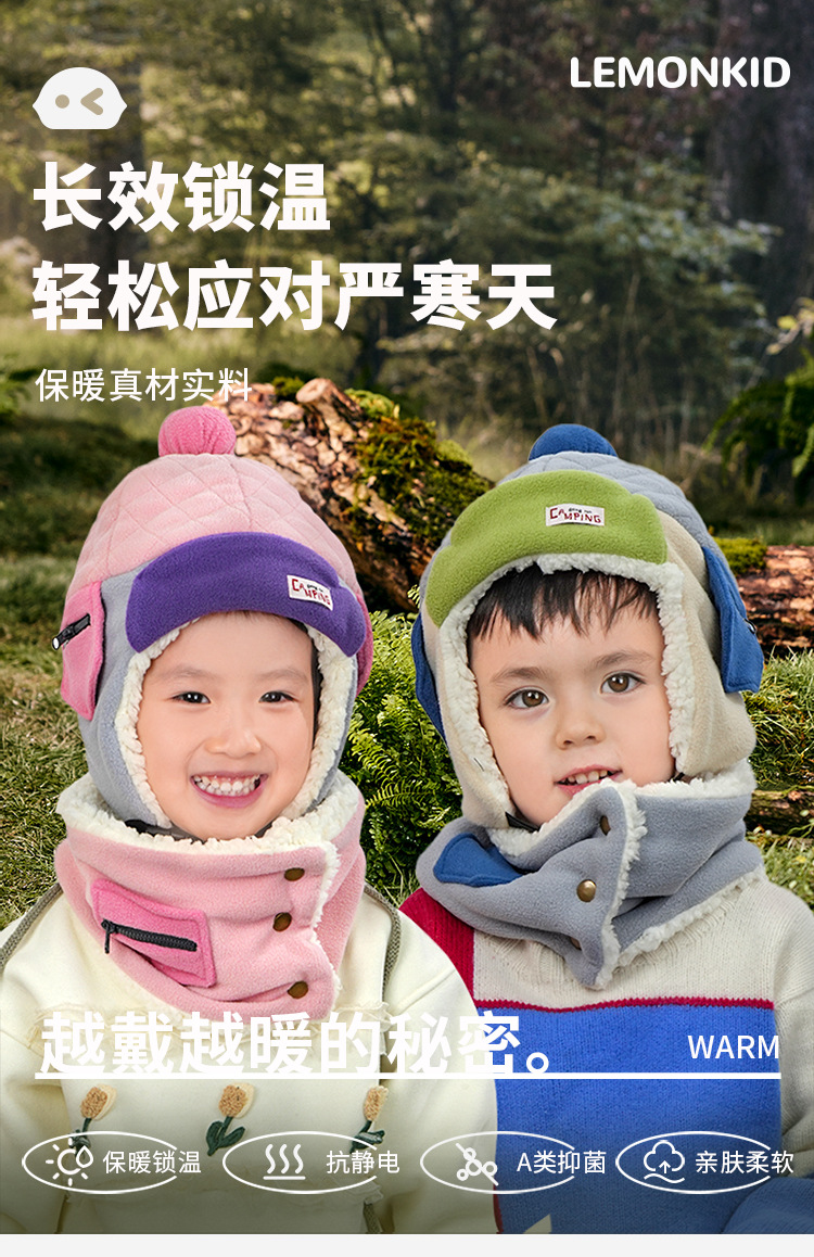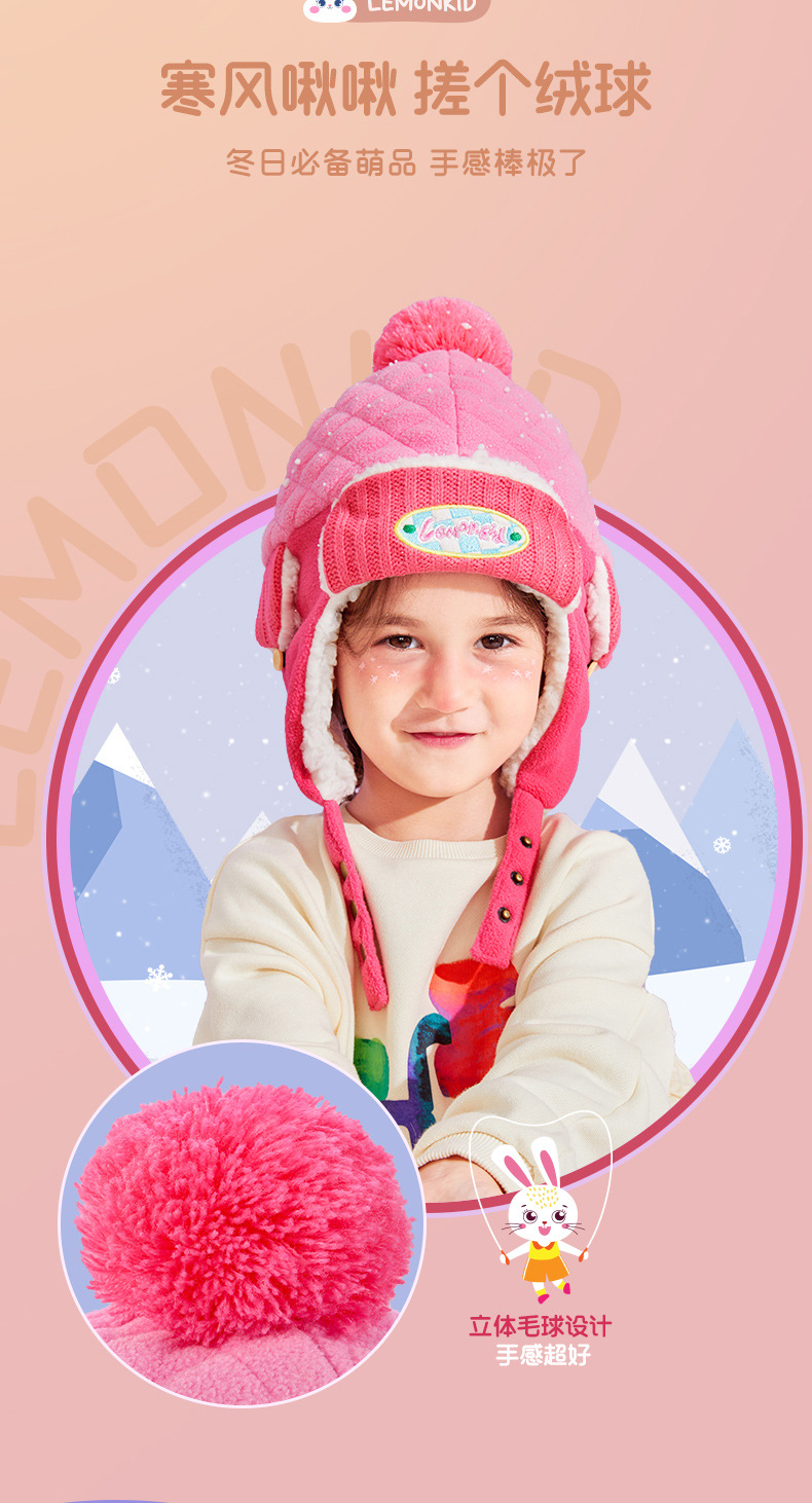 【柠檬宝宝清仓19.9/起】柠檬宝宝儿童冬帽防风护耳雷锋帽男女童加绒加厚护耳帽聚
