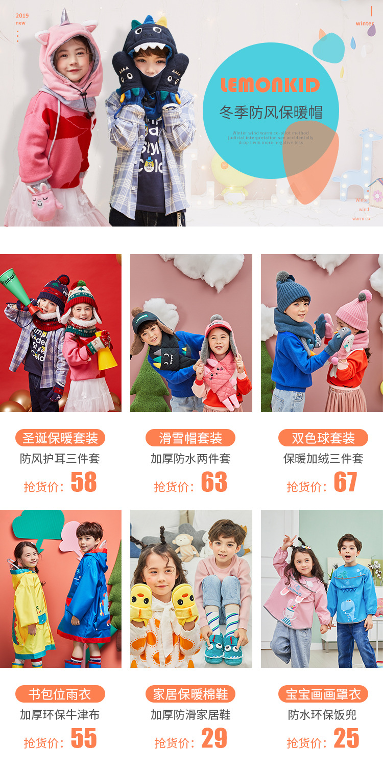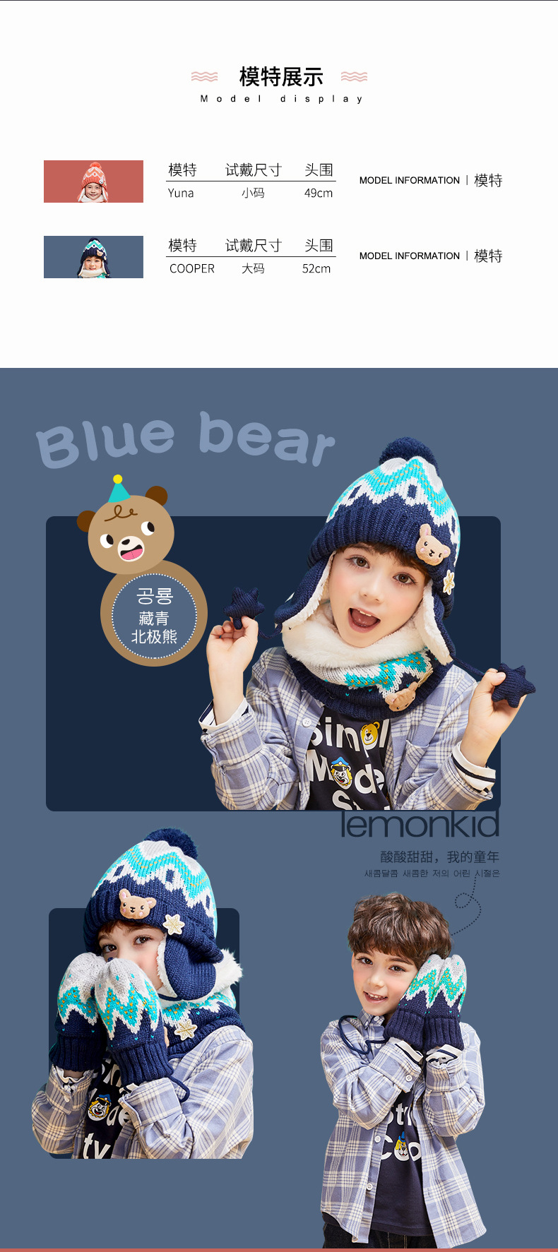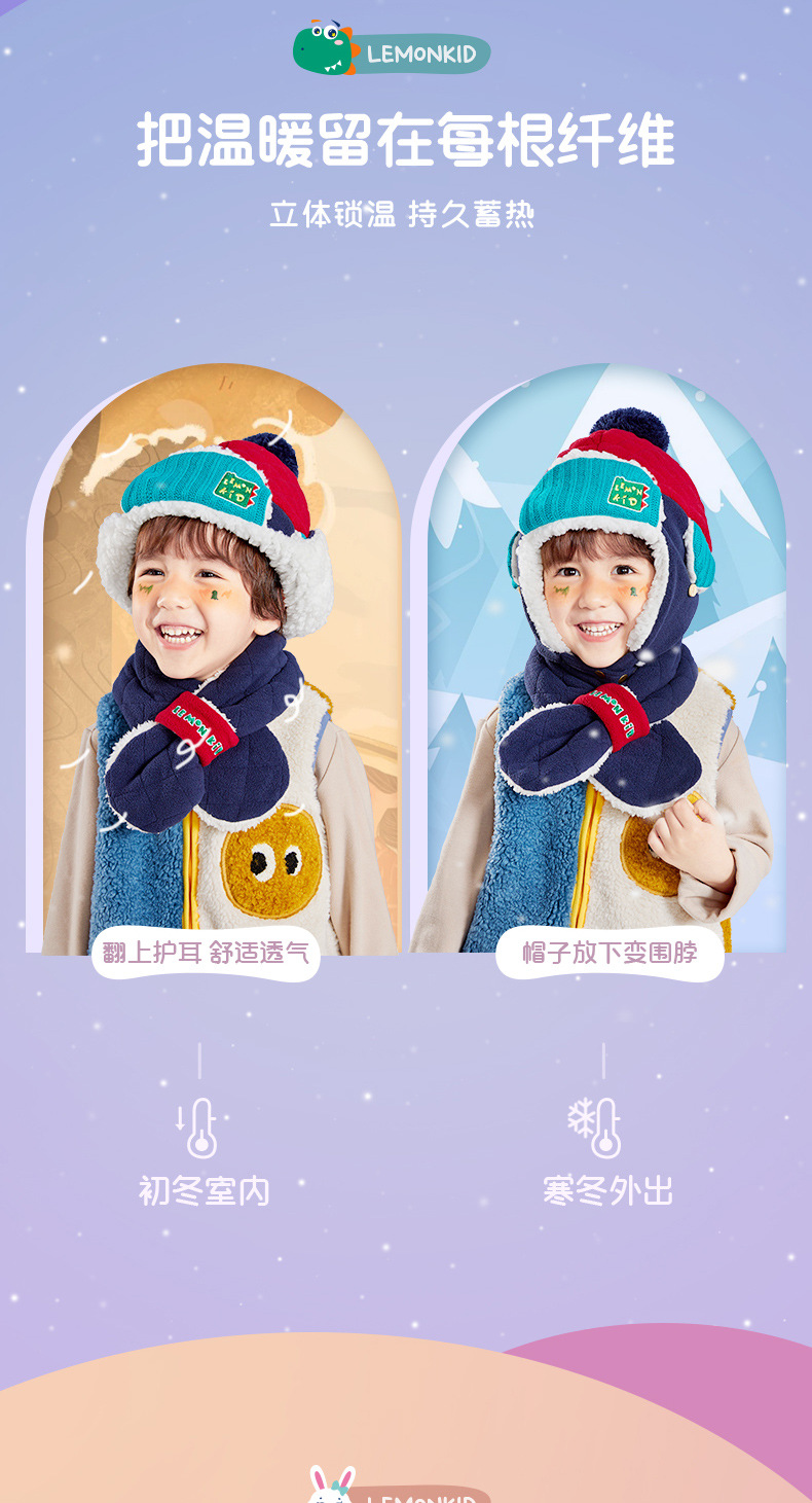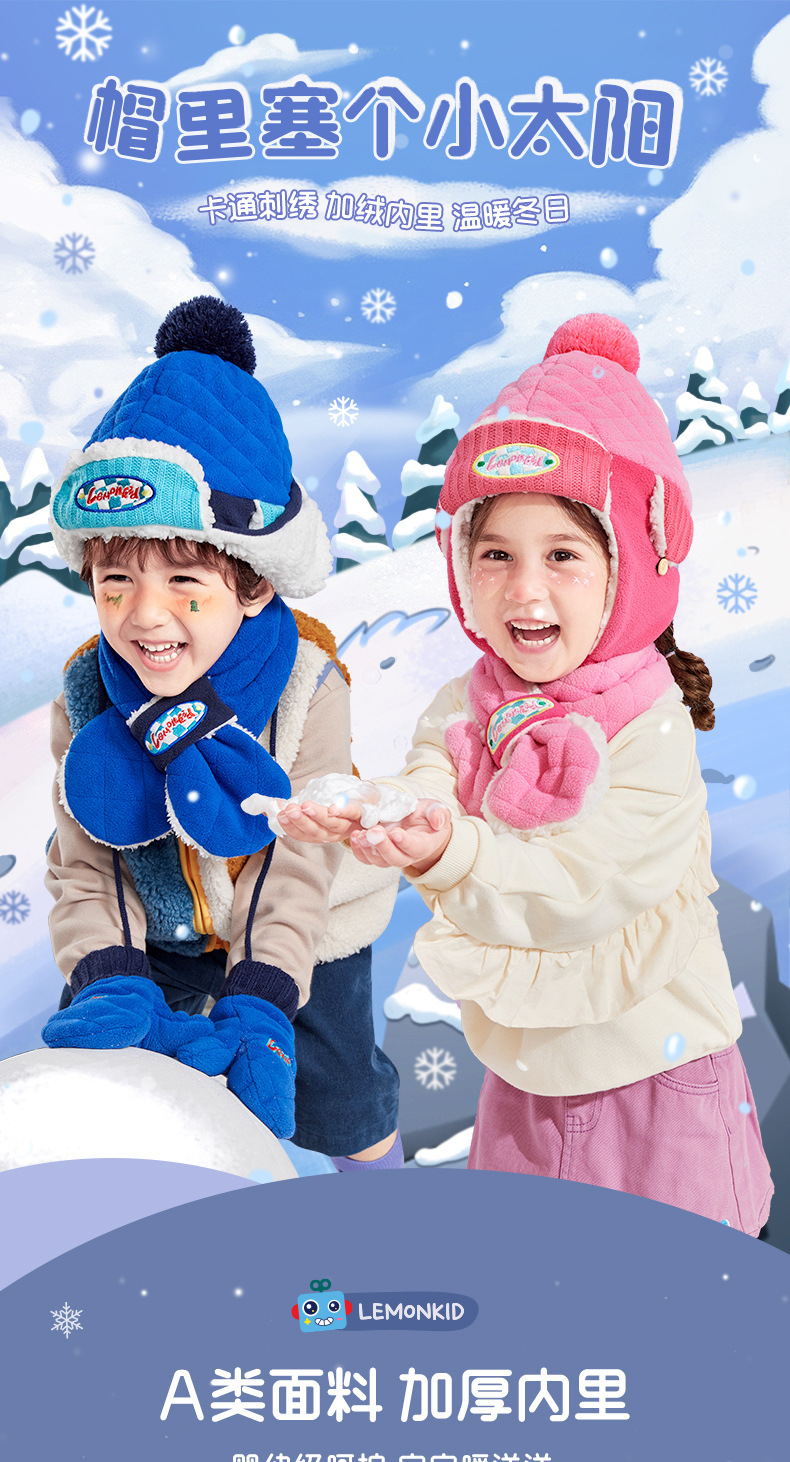 【柠檬宝宝清仓19.9/起】柠檬宝宝儿童冬帽防风护耳雷锋帽男女童加绒加厚护耳帽聚