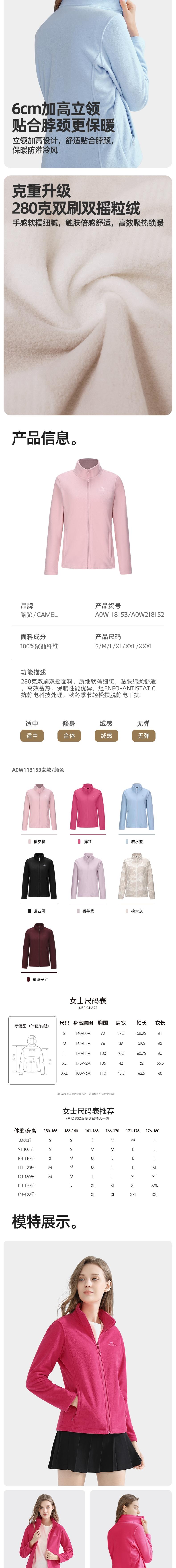 CAMEL骆驼 女保暖抓绒衣 A0W118153-1